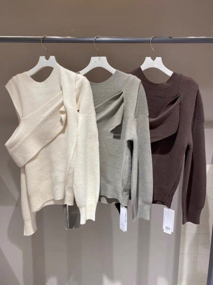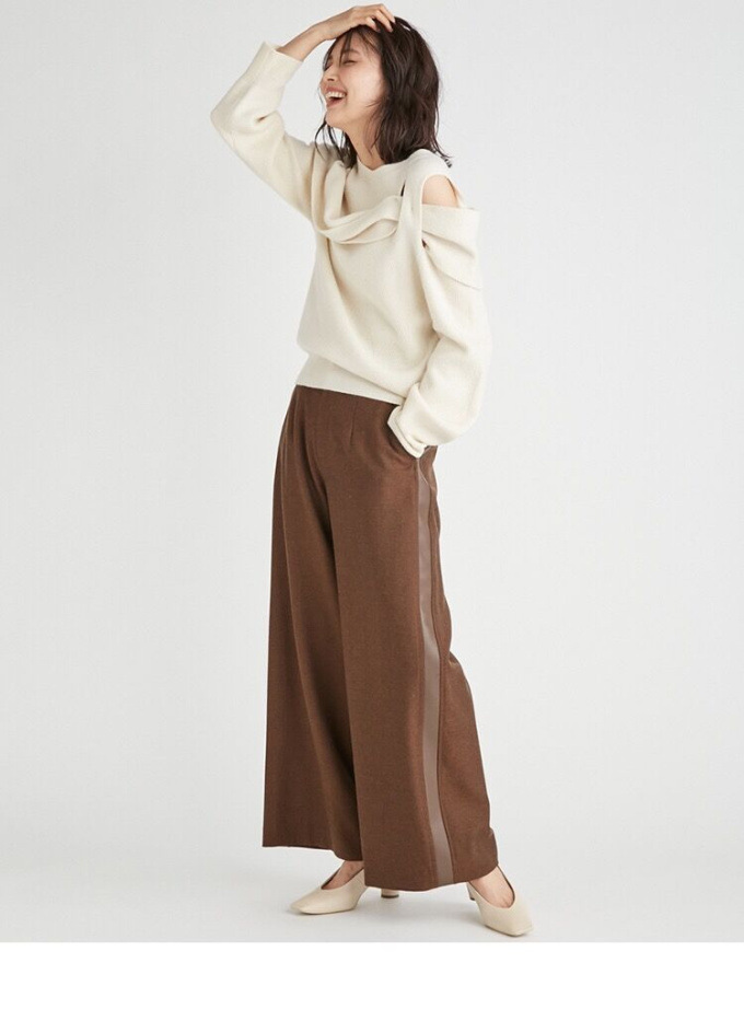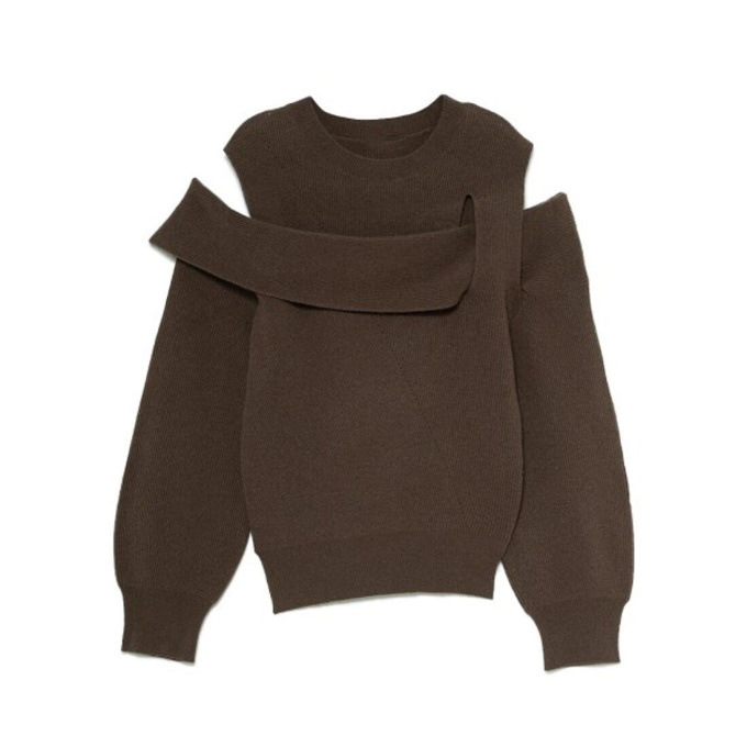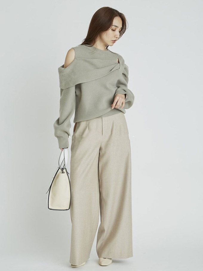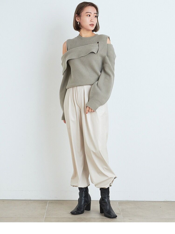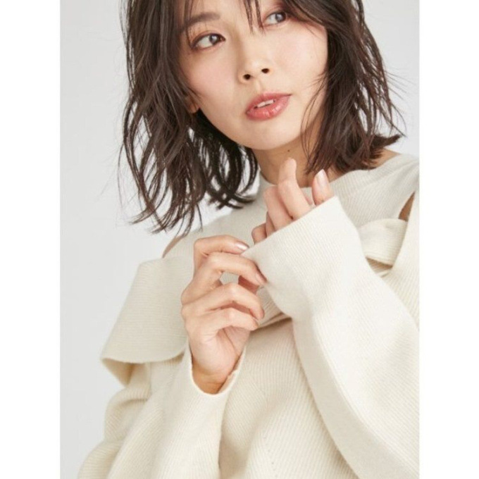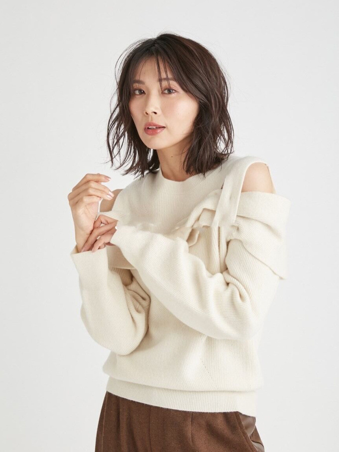 【レイヤード風デザインで絶妙な大人の肌見せを叶えるショルダースリットニットプルオーバー】