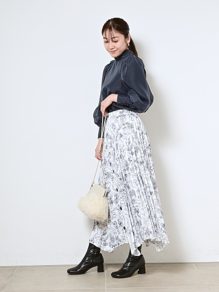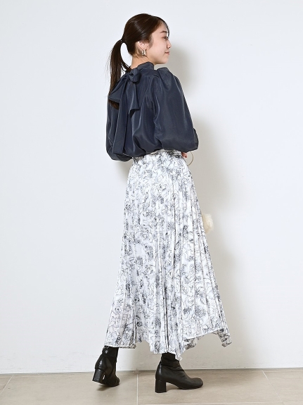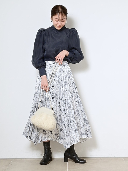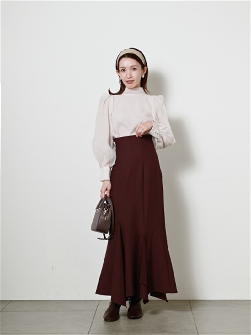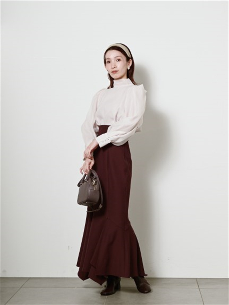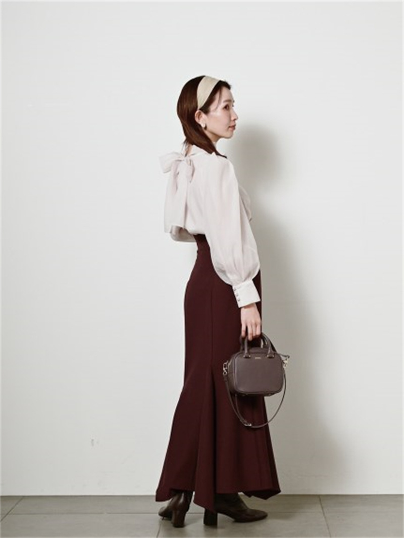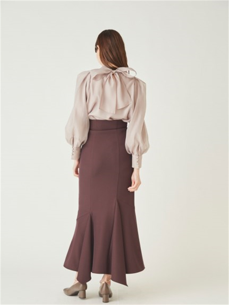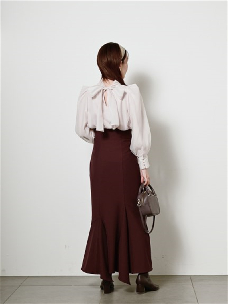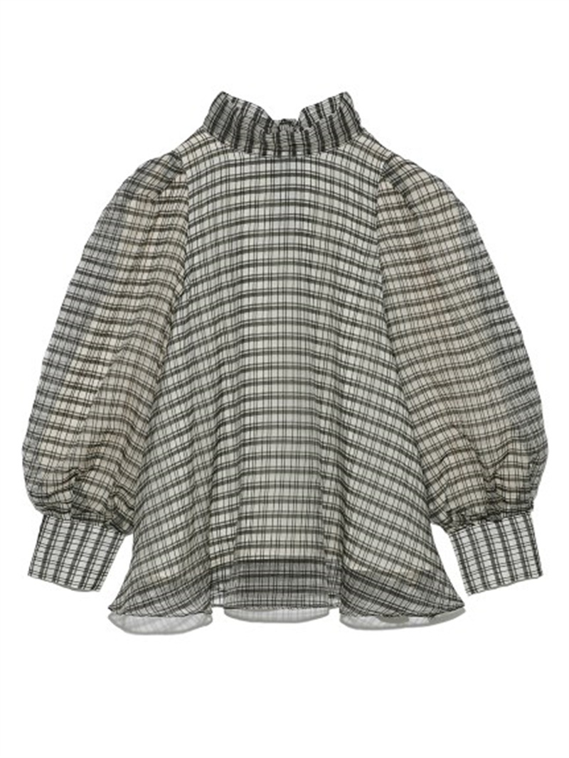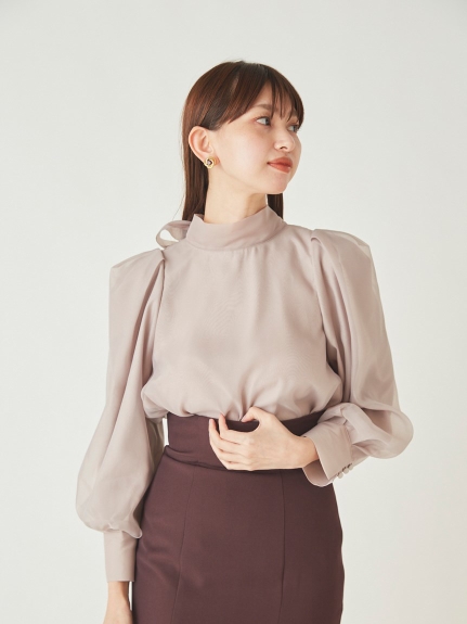 定番人気のオーガンジーシースルーブラウスからこの冬の新作が登場。タックディティールで立体的なパフスリーブを表現し、甘さの中にややモードなエッセンスを加えました。品の良いスタンドカラーと大きなバックリボンのバランスが美しく、前後どこから見てもレディな印象でスタイリングの主役を担う1枚。マーメイドスカートでフェミニンに、パンツスタイルでハンサムにと、纏うだけで旬なスタイリングが完成します。