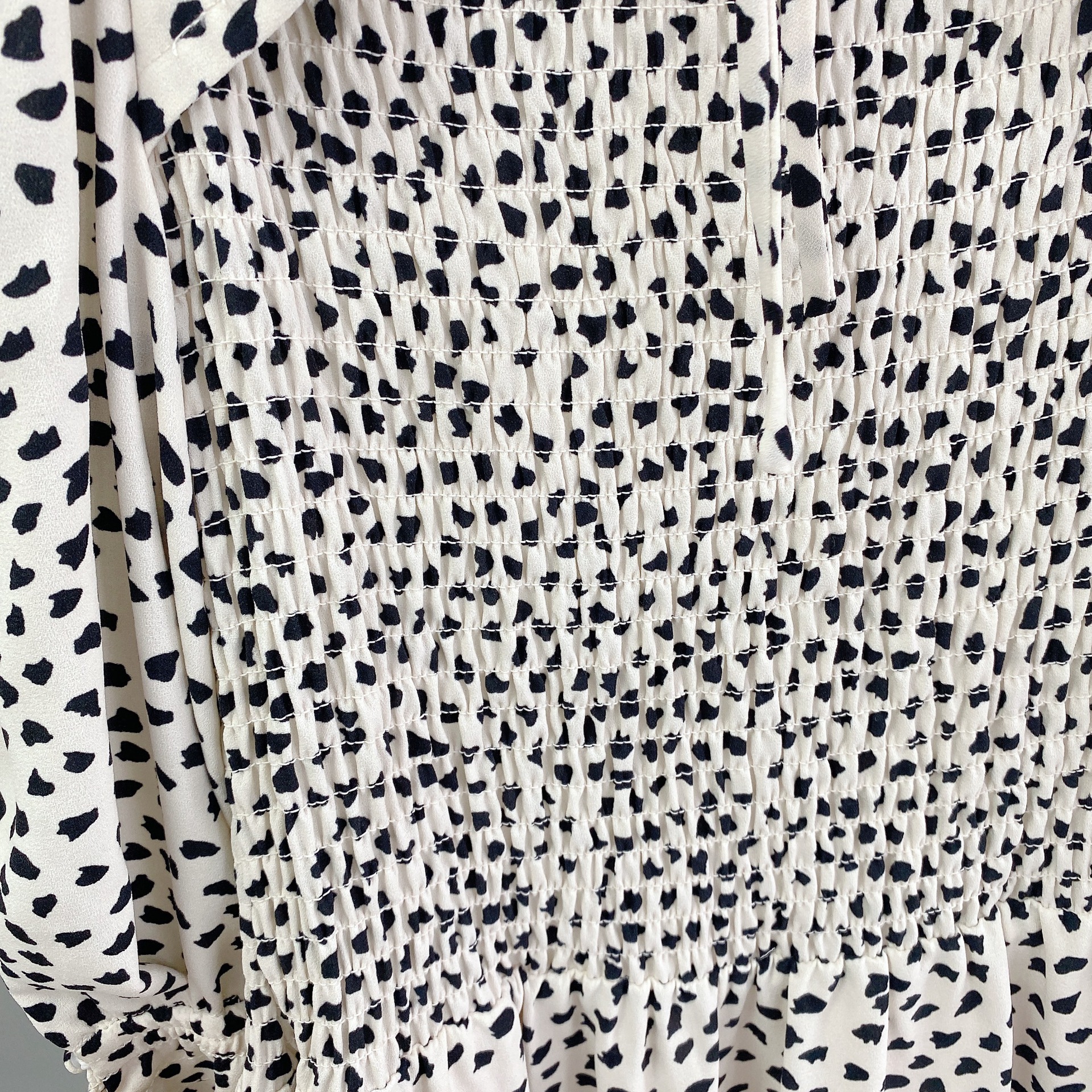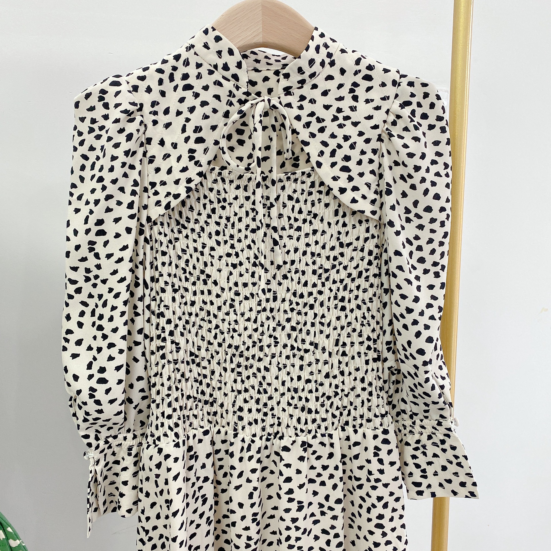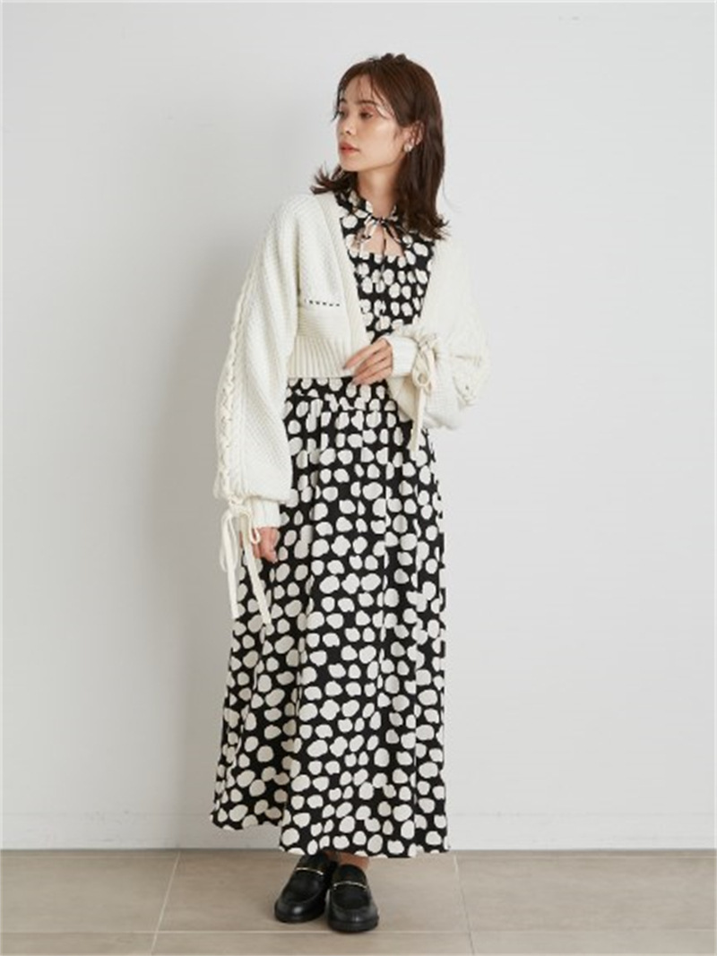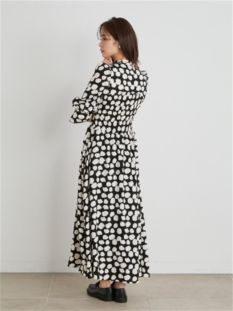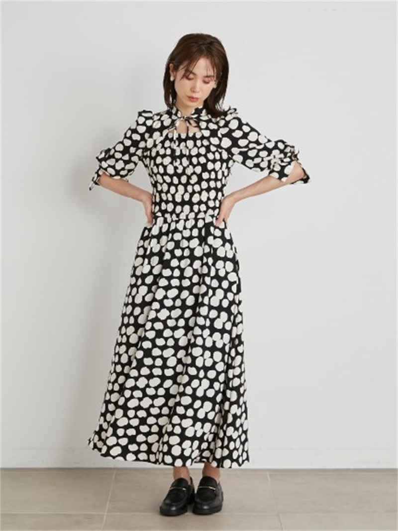 デコルテオープンドットプリントワンピース 単品購入で約5営業日内に発送します。