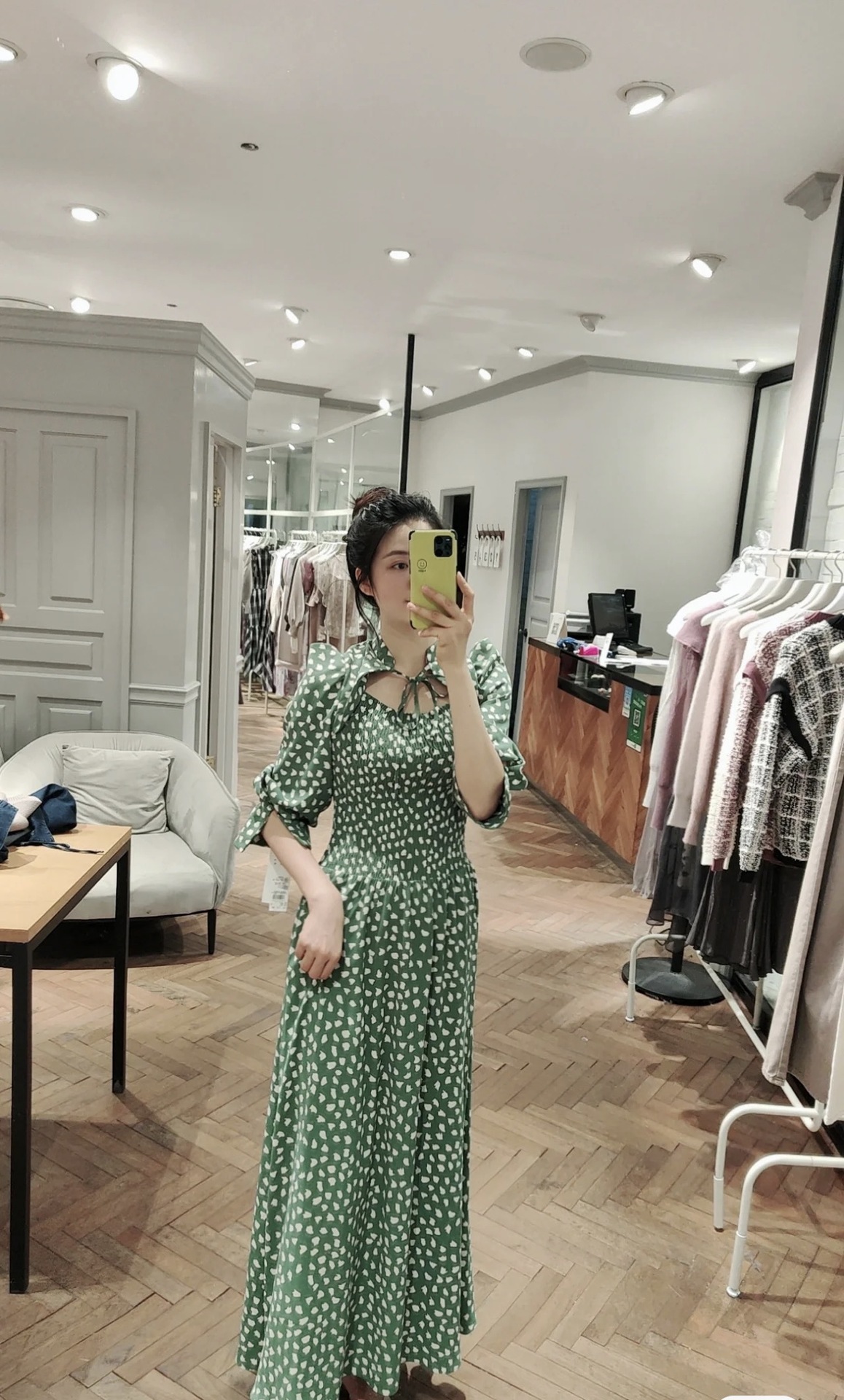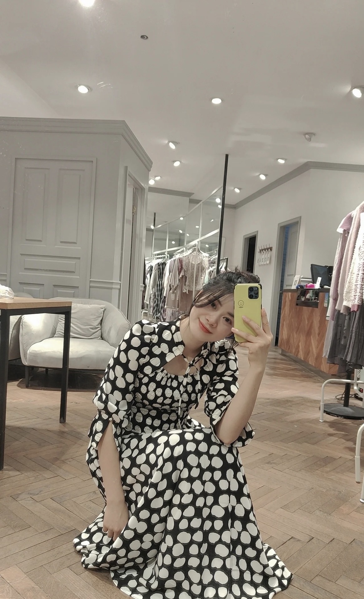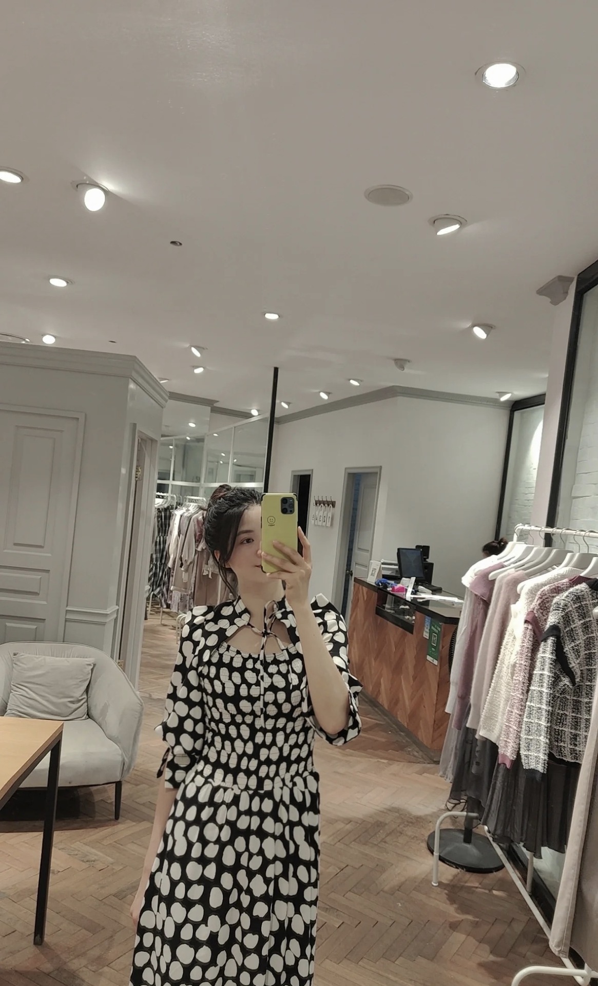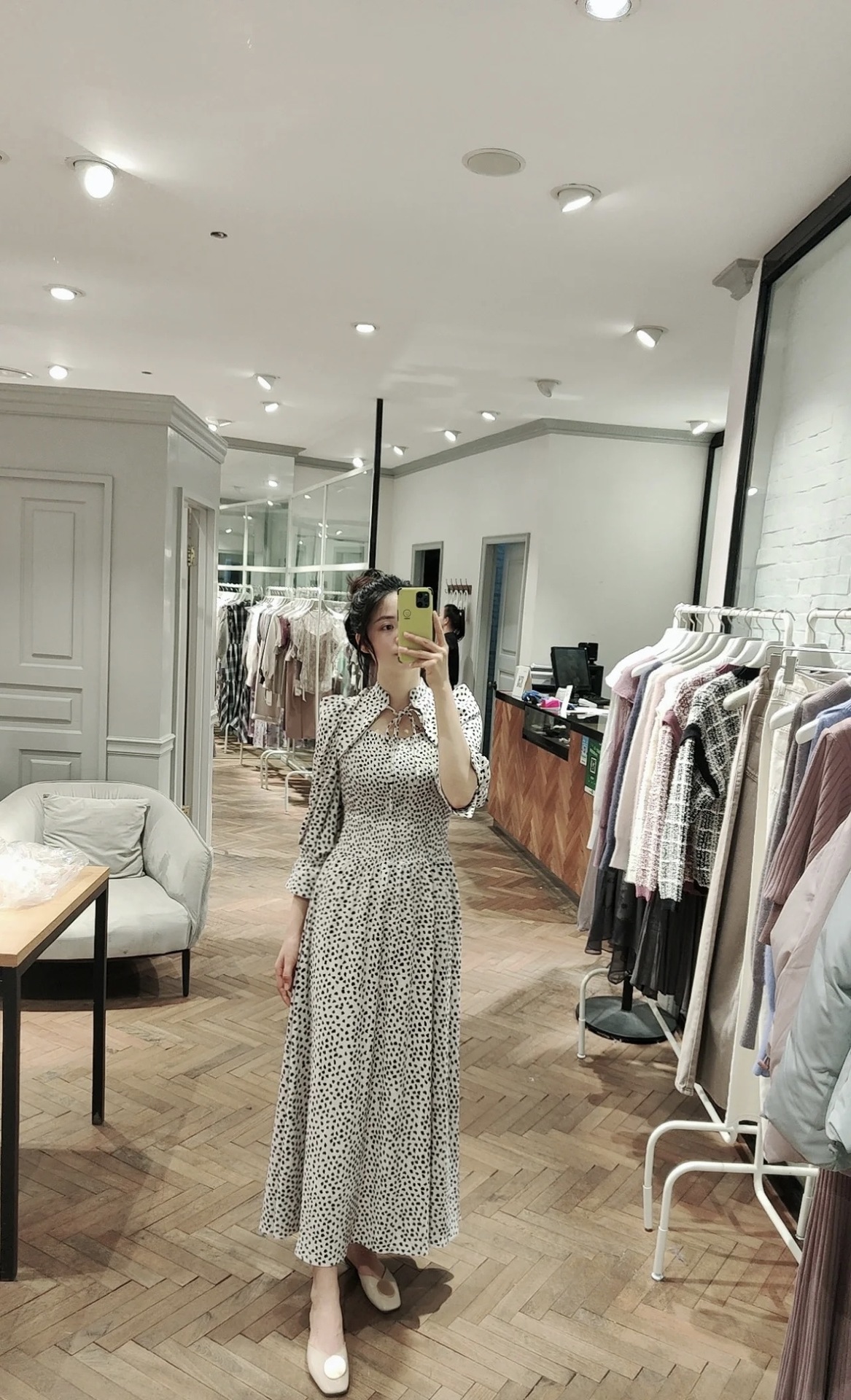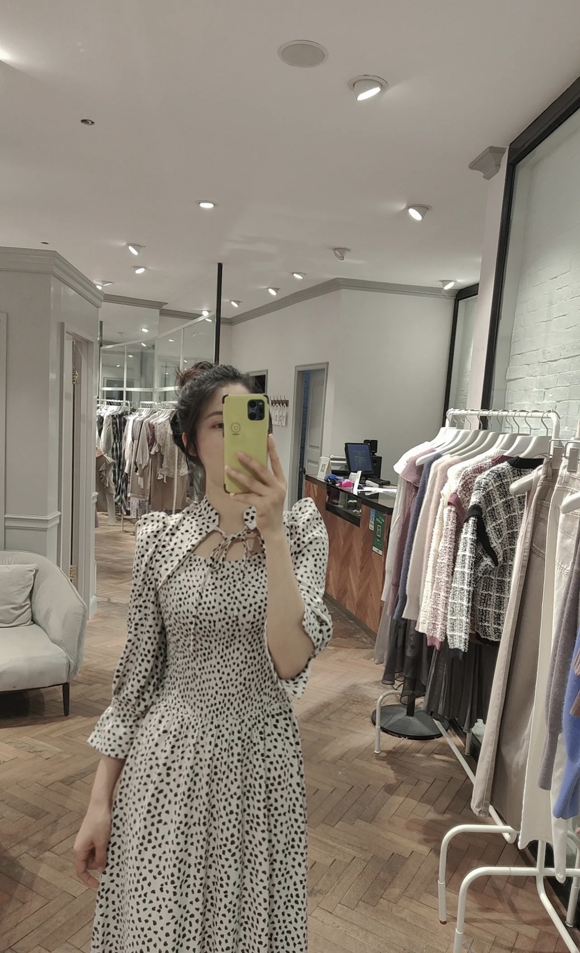 デコルテオープンドットプリントワンピース 単品購入で約5営業日内に発送します。