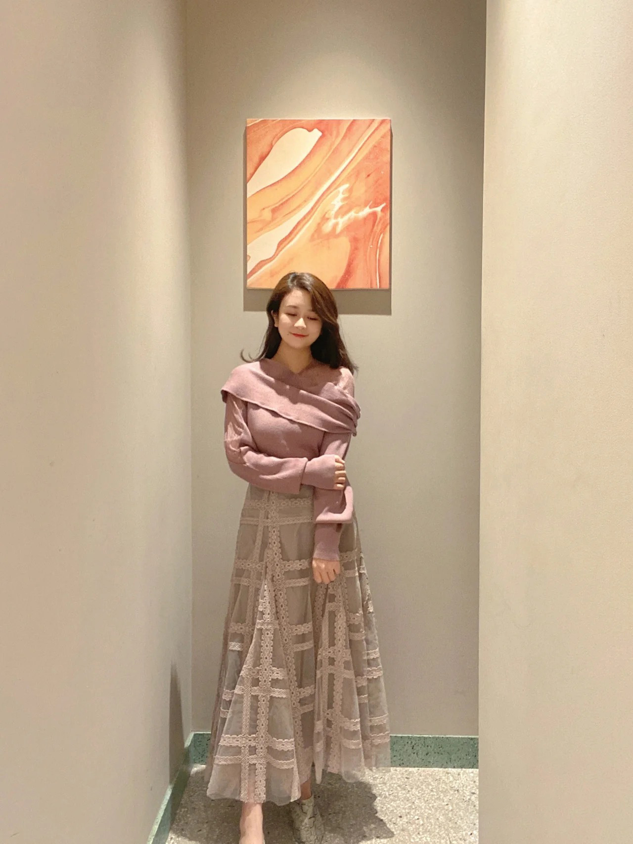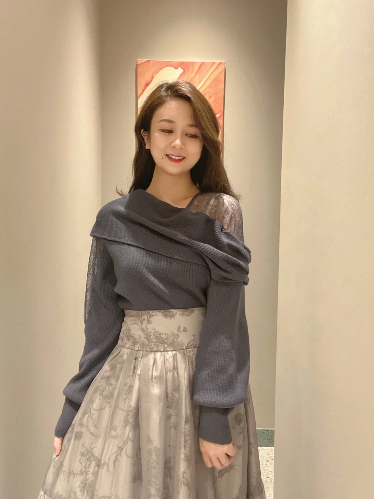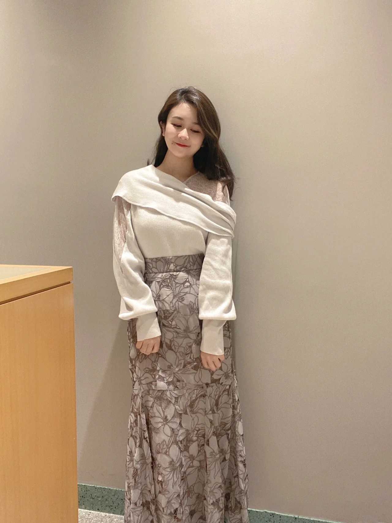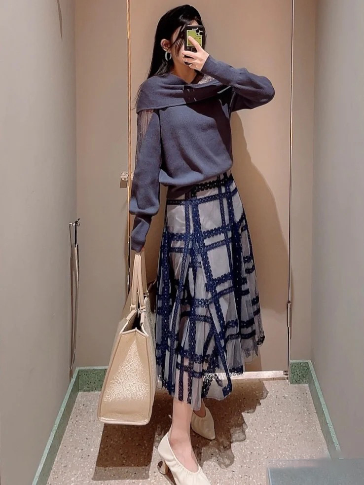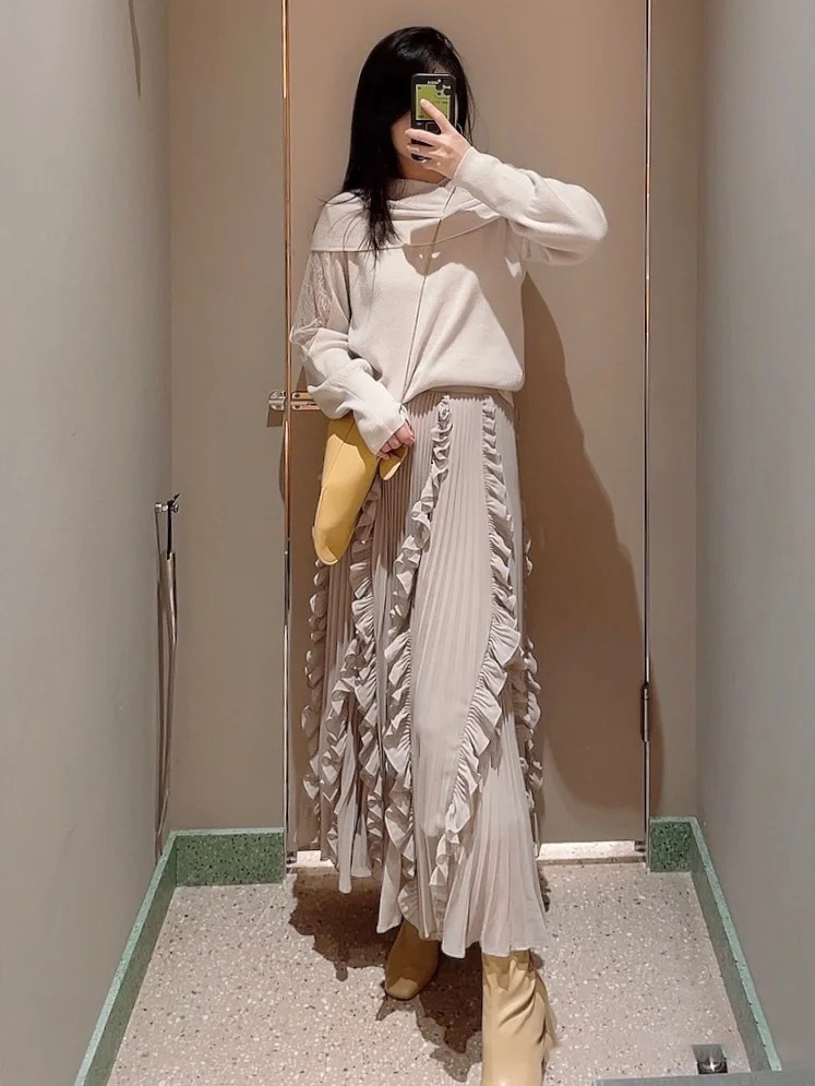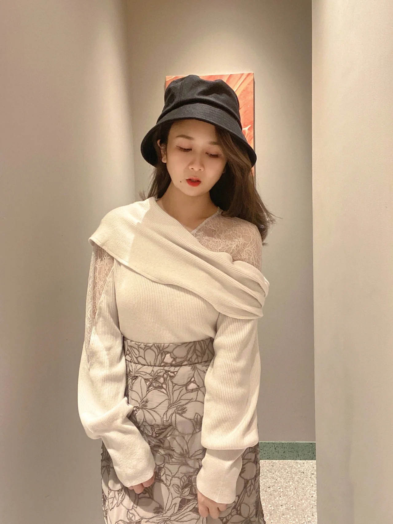 エレガントな装いをベースに、アシンメトリーデザインやマテリアルミックスでモードな印象をプラスしたデザインニット。オープンショルダー部分には繊細なレースを使用し、重さのあるニットとの美しいコントラストを際立たせました。袖は女性らしくややオーバーサイズで仕上げ、丈ボトムスを選ばない合わせやすさを意識。フェミニンな要素満載のニットは、「SNIDEL」ならではの1着です。