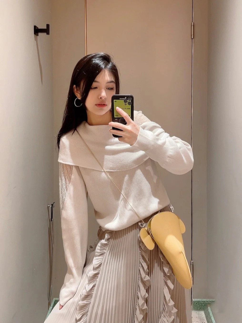 ポリエステルにリサイクルナイロン、リサイクルウールをブレンドしたサステナブルな糸を使用しました。アイボリー、ピンク、ダークグレーと、上品なフェミニンカラーを3色ご用意。
