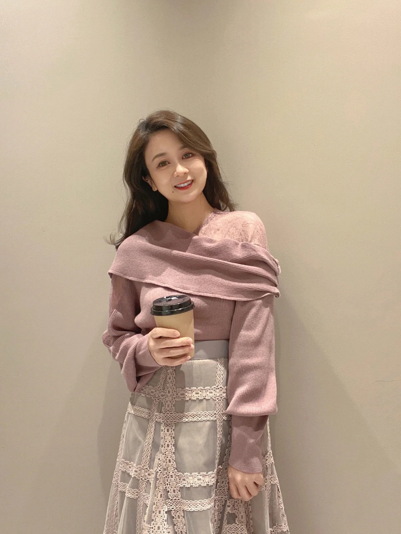 【エレガントなルックスにひとさじのモードをプラスしたレースコンビニット】