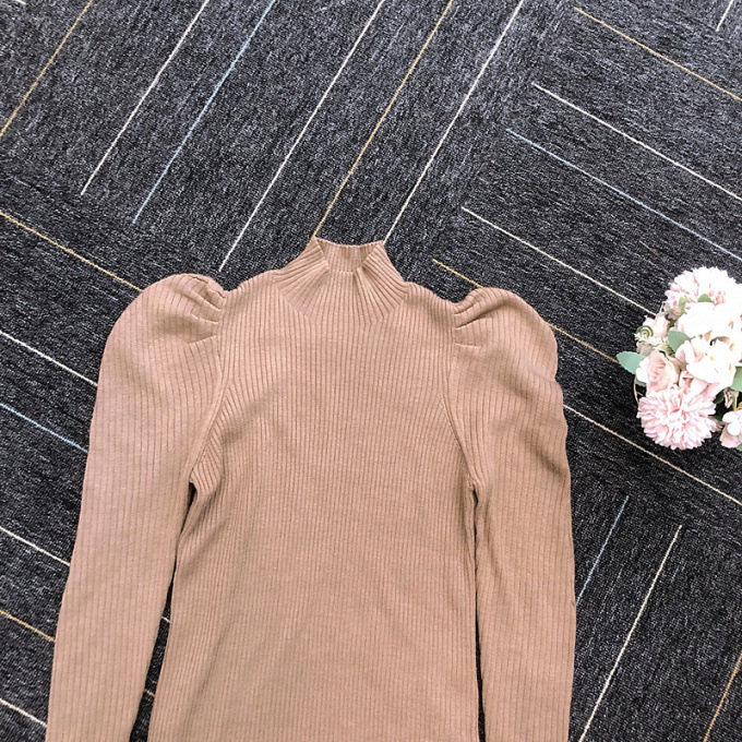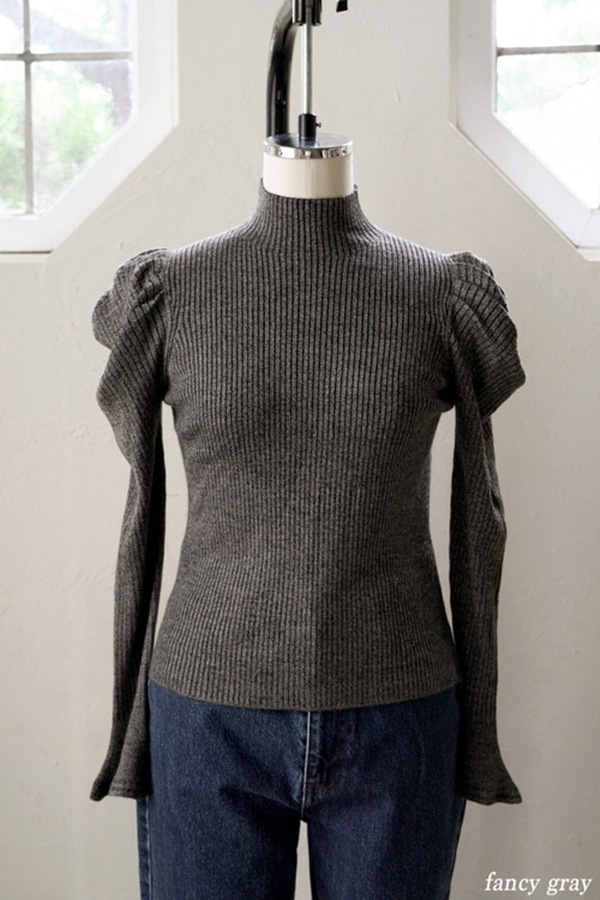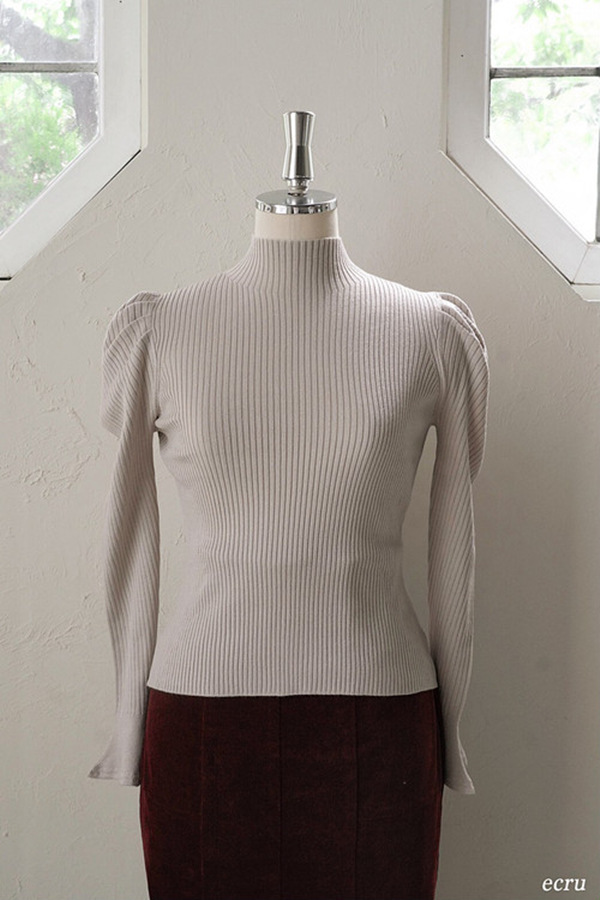 Volume Sleeve Rib Knit Top