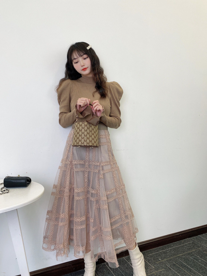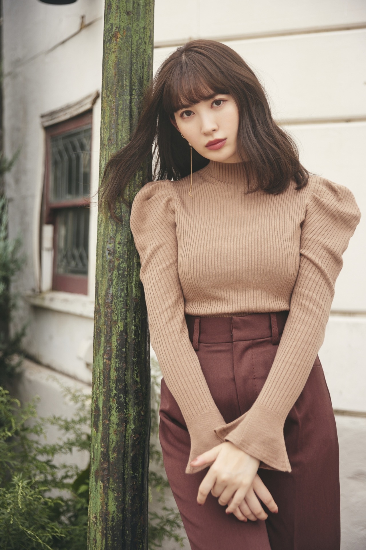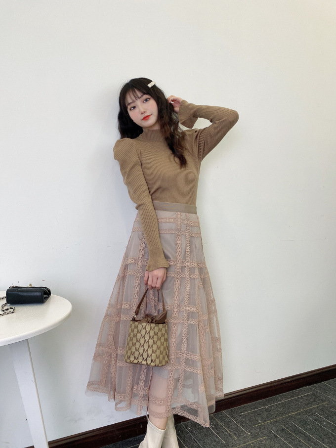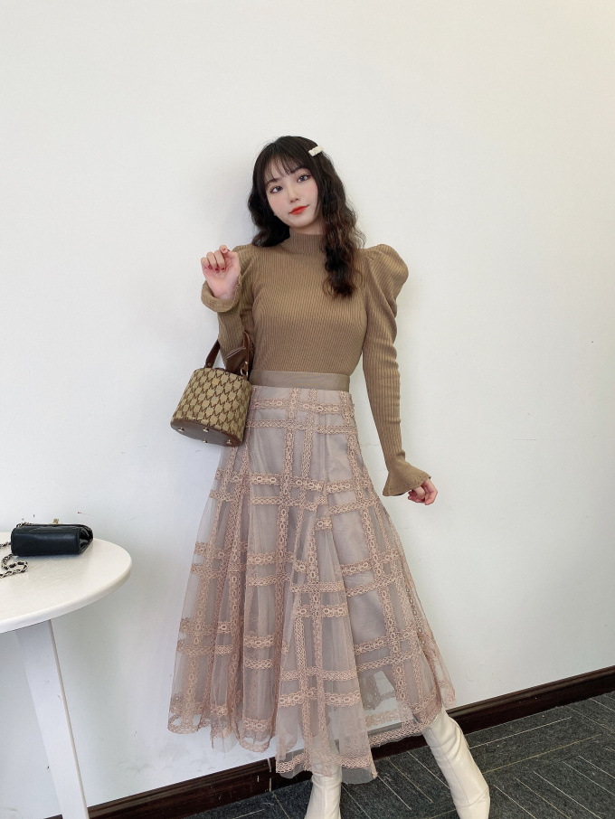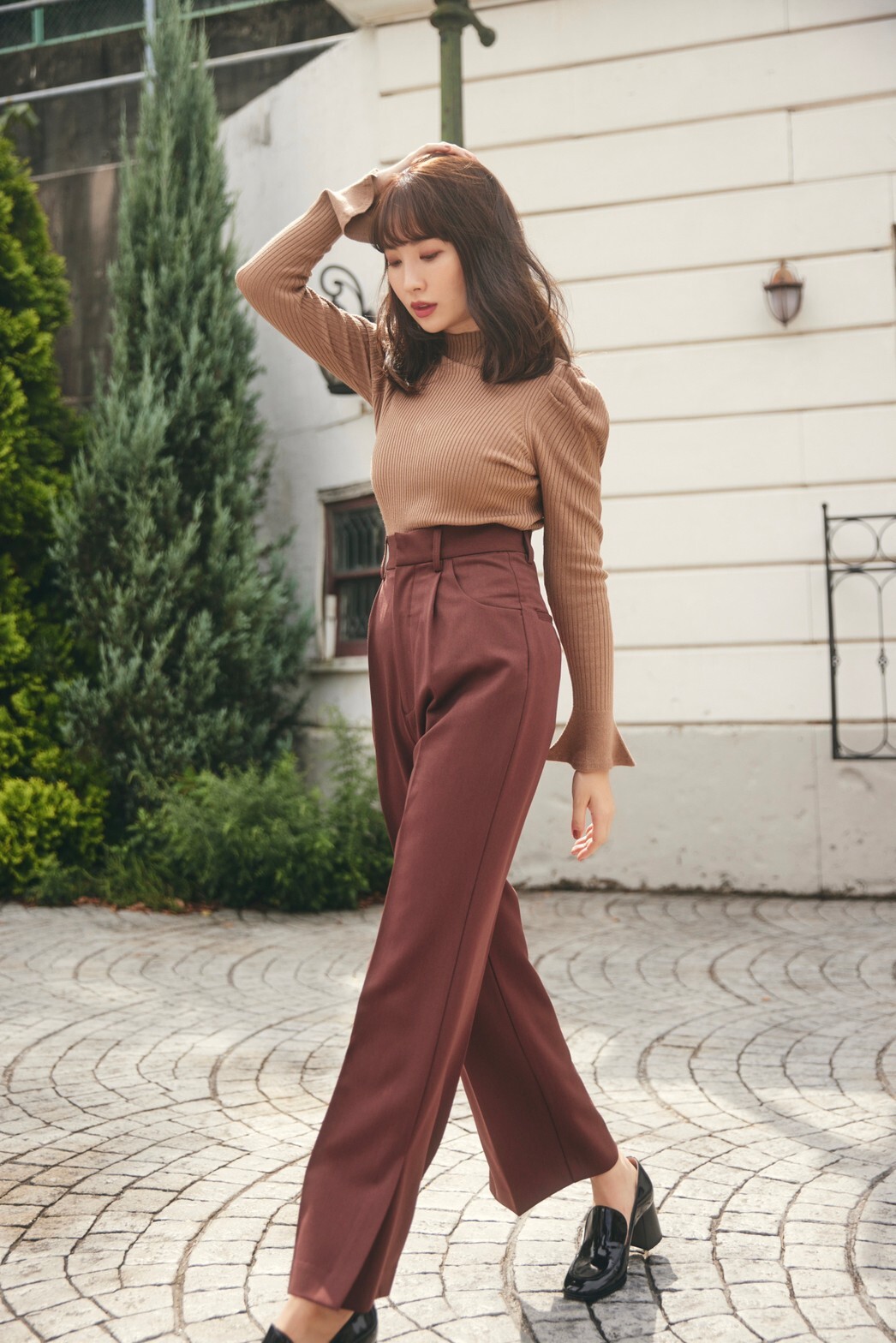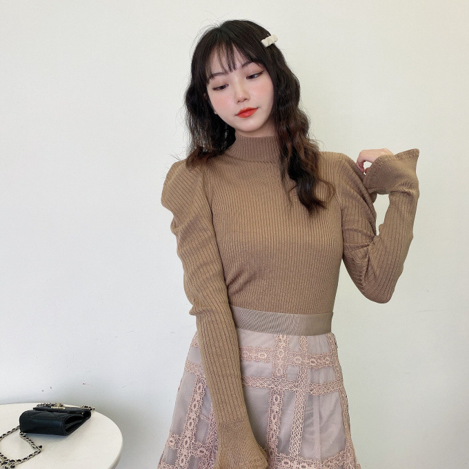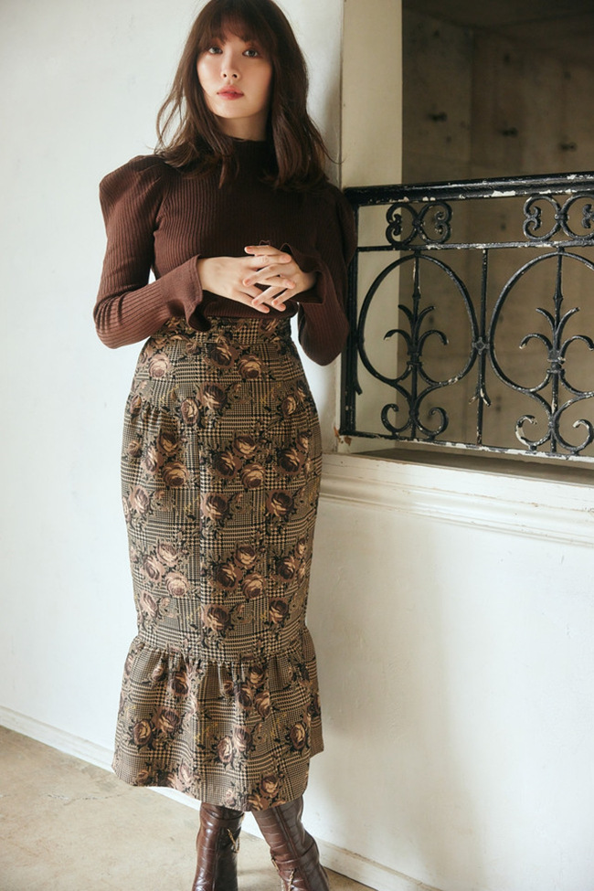 表情豊かなリブと、袖に施されたフレアが女性らしいフェミニンな印象を与えます。
