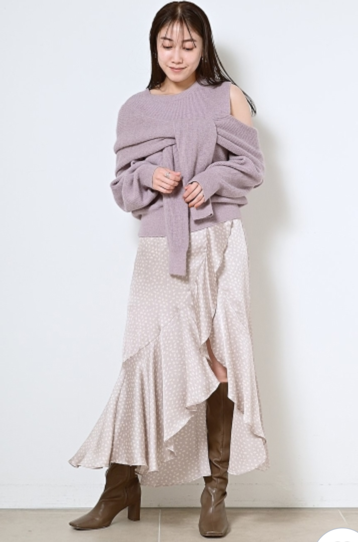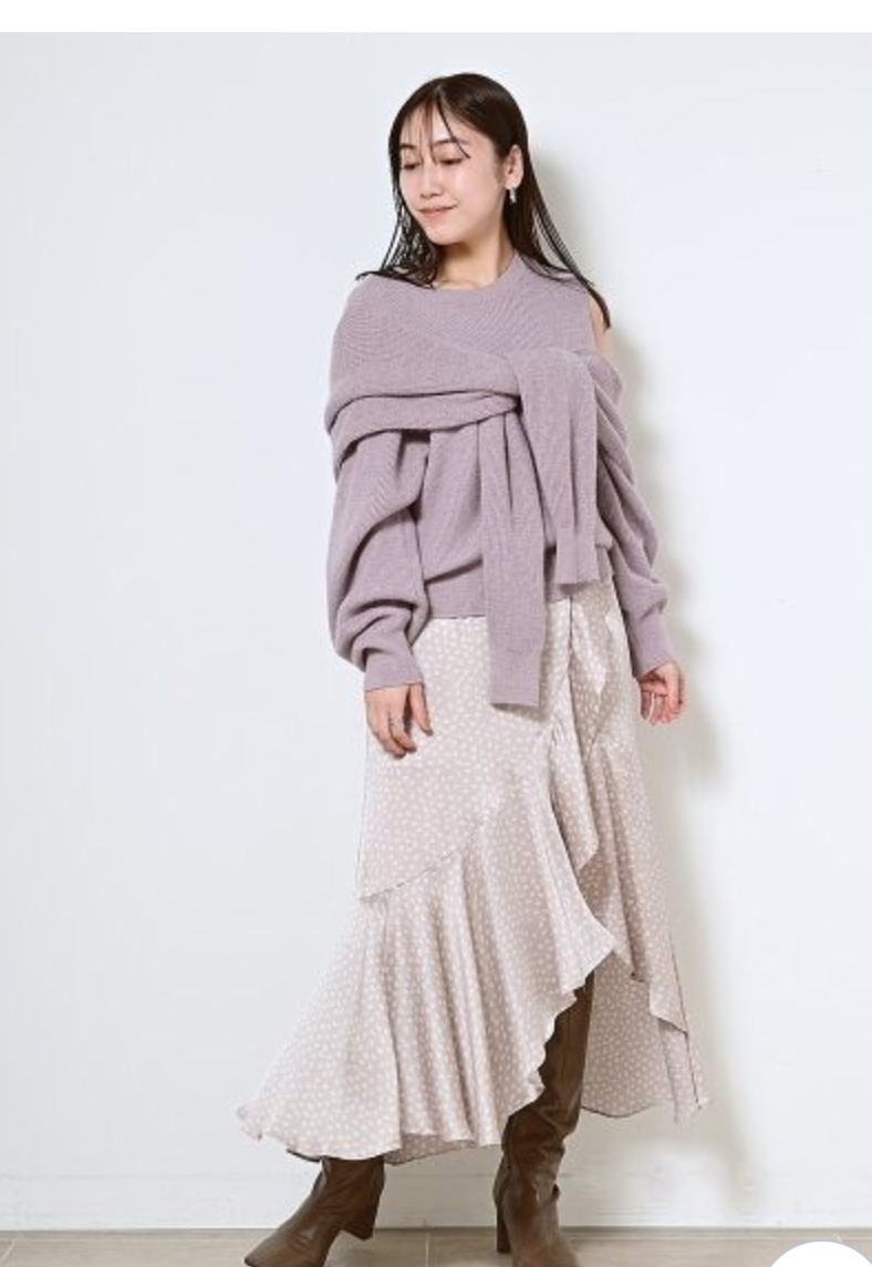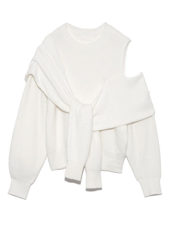 【フェイクレイヤードとモード感プラスのアシンメトリーデザインで魅せるディフォーメーションニット】