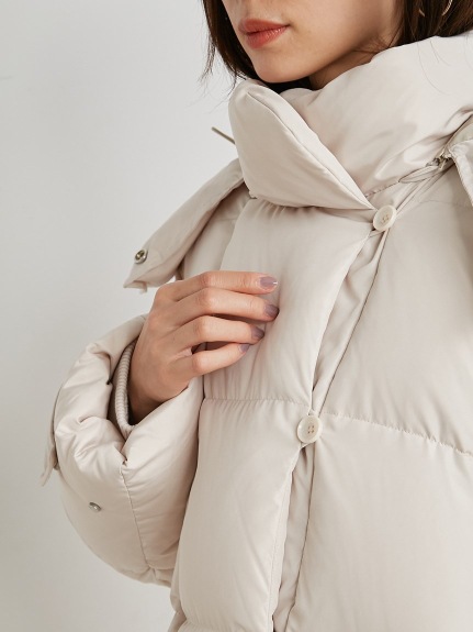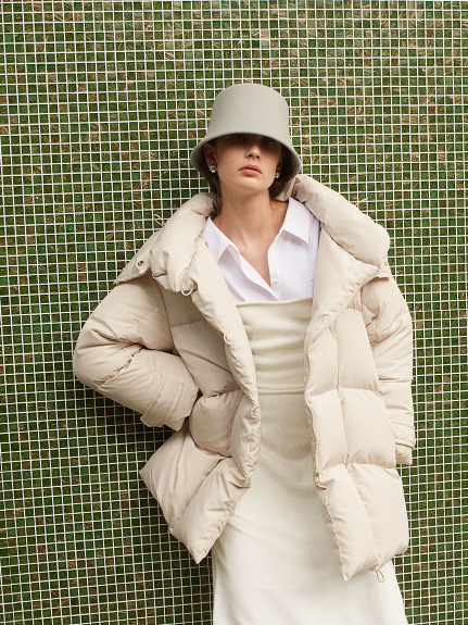 リサイクルポリエステル100%の生地とアップサイクルダウンを使用した、サステナブルなダウンコート。着心地の良さとデザイン性の高さはそのままに、環境を意識してつくり上げました。襟元とフードはいつもより大きくすることでトレンドライクにデザインし、襟を立てればモードなスタンドカラーにも早変わり。ヒップが隠れる丈はとても暖かく、コーディネートに合わせやすいのもポイントです。