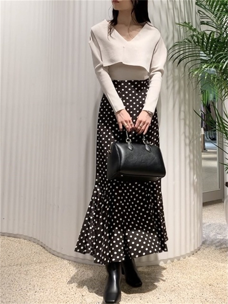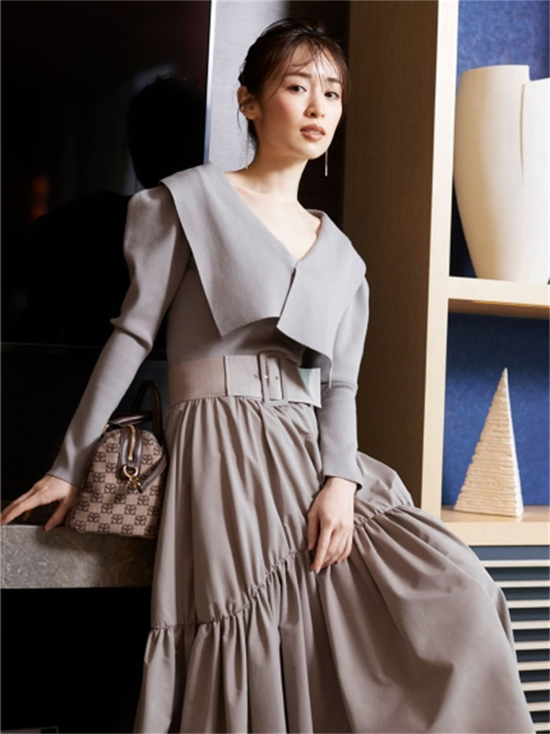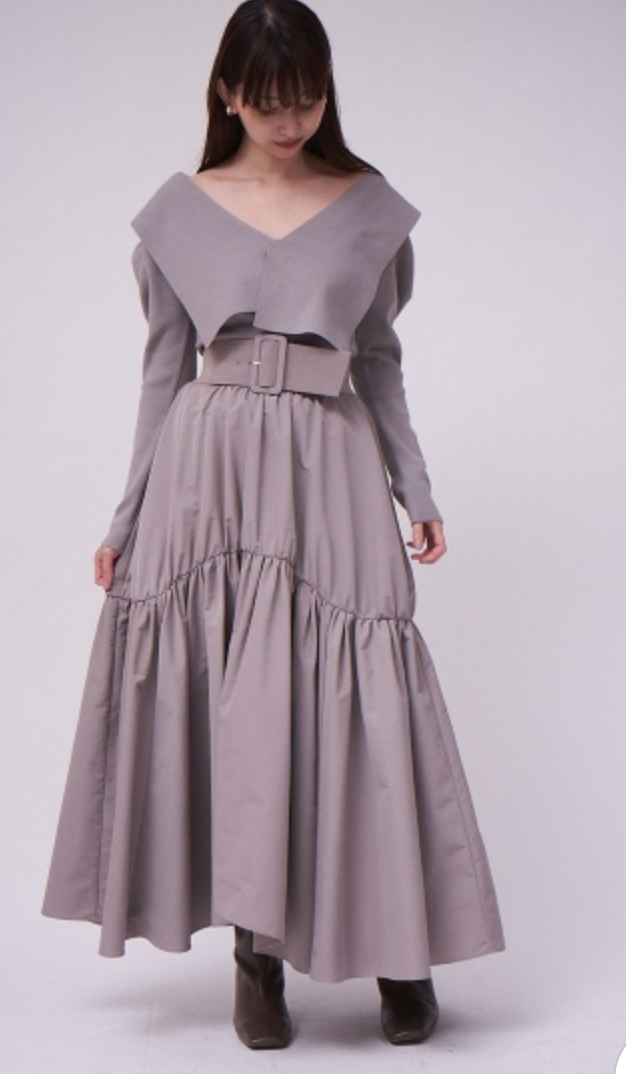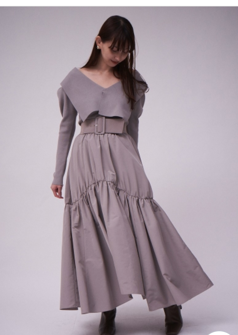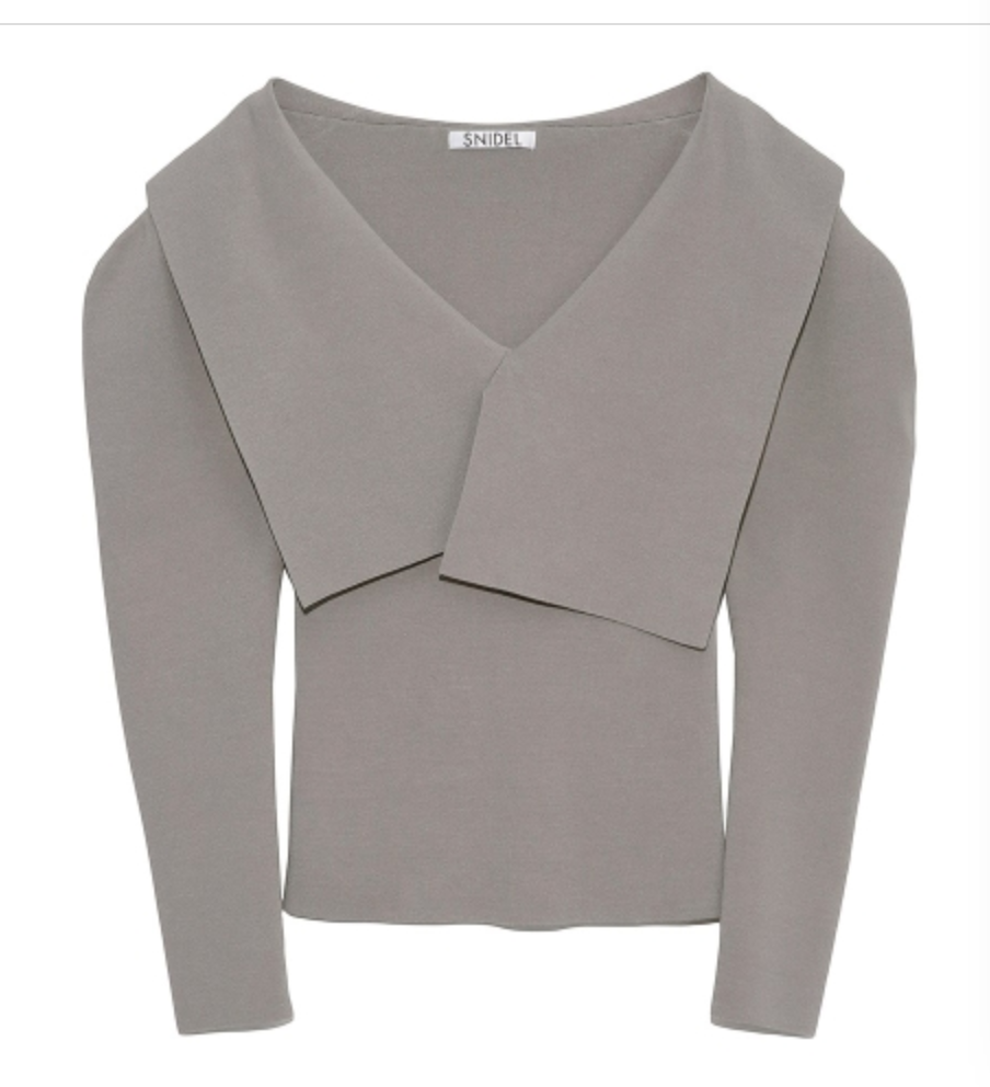 トレンドのビックカラーをモチーフに、アシンメトリーデザインでモードな要素もプラスしたリブニット。ビックカラーは甘く見えないよう工夫を凝らし、シャープな襟先や総針編みできりっとハンサムな印象に仕上げました。深めのVネックがデコルテラインを美しく魅せ、華やかなパフスリーブとの掛け合わせでスタイリングに奥行きを演出。ボディはすっきりと仕上げ、トップスインしやすいシルエットです。