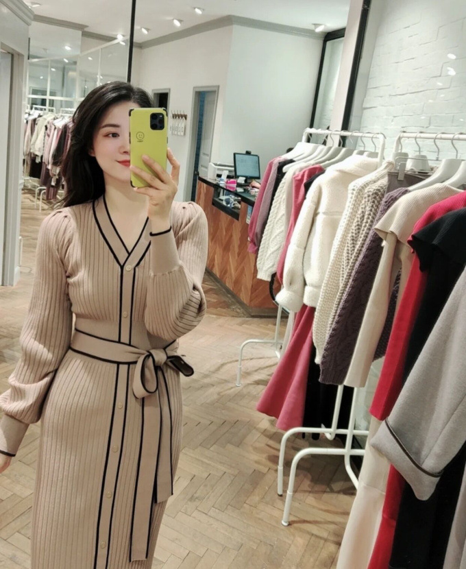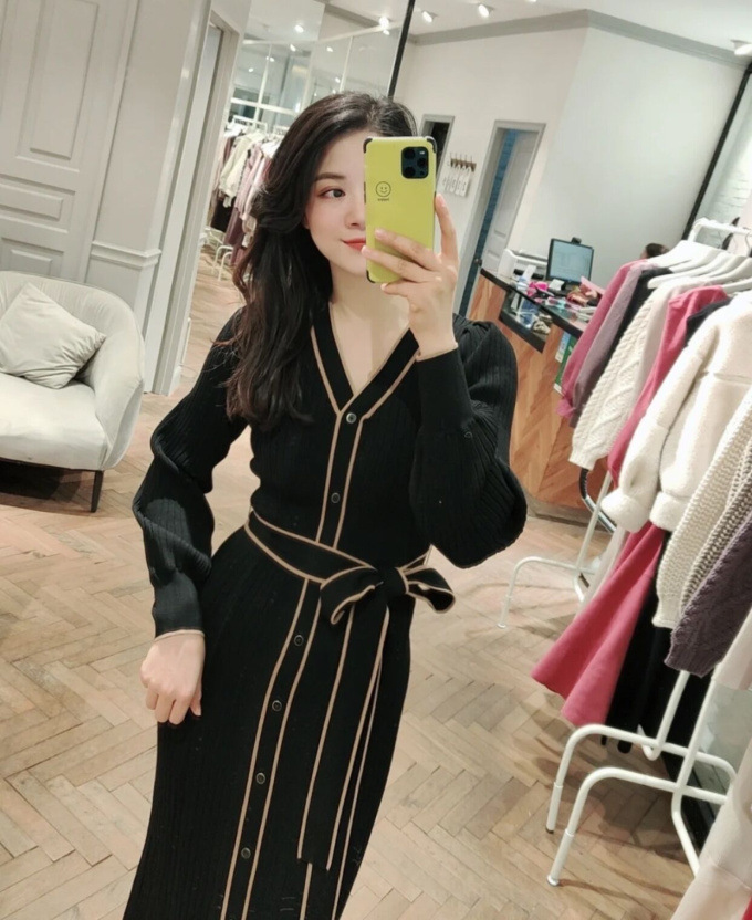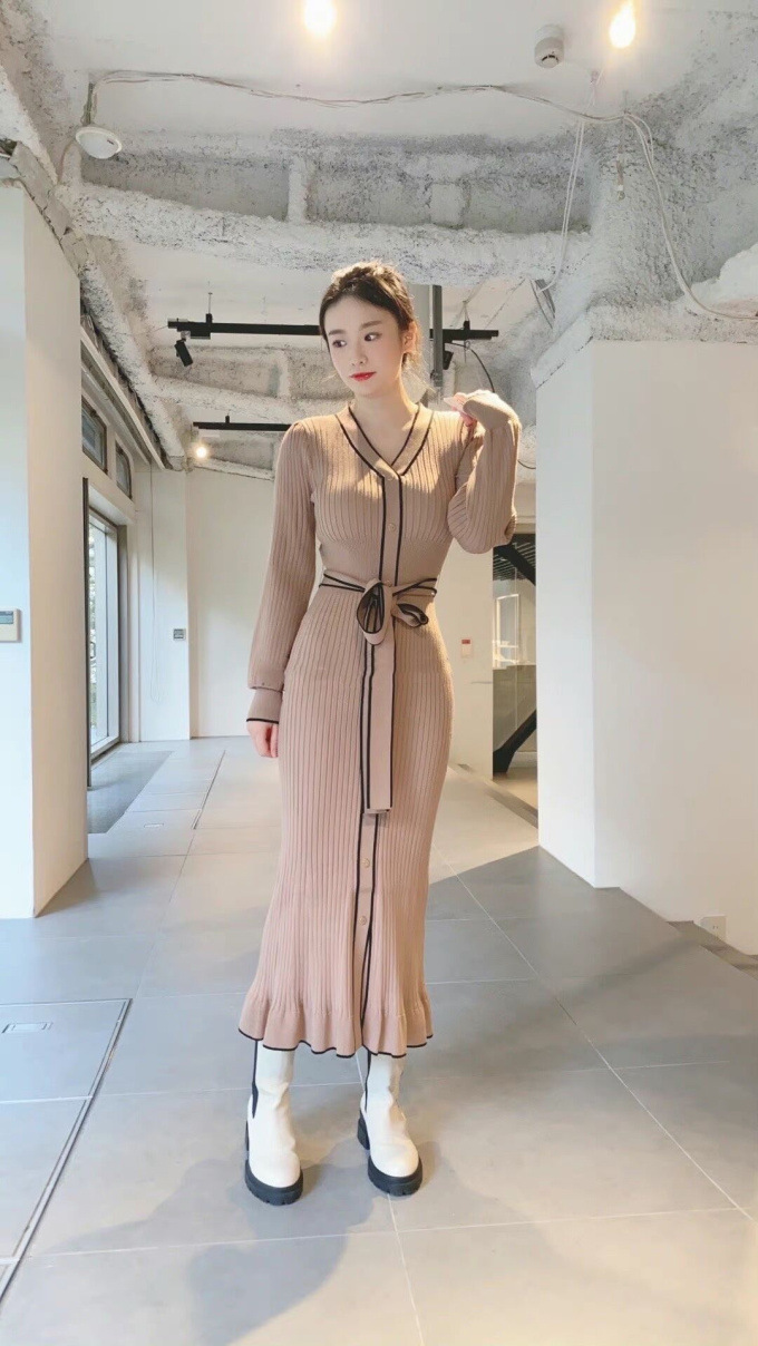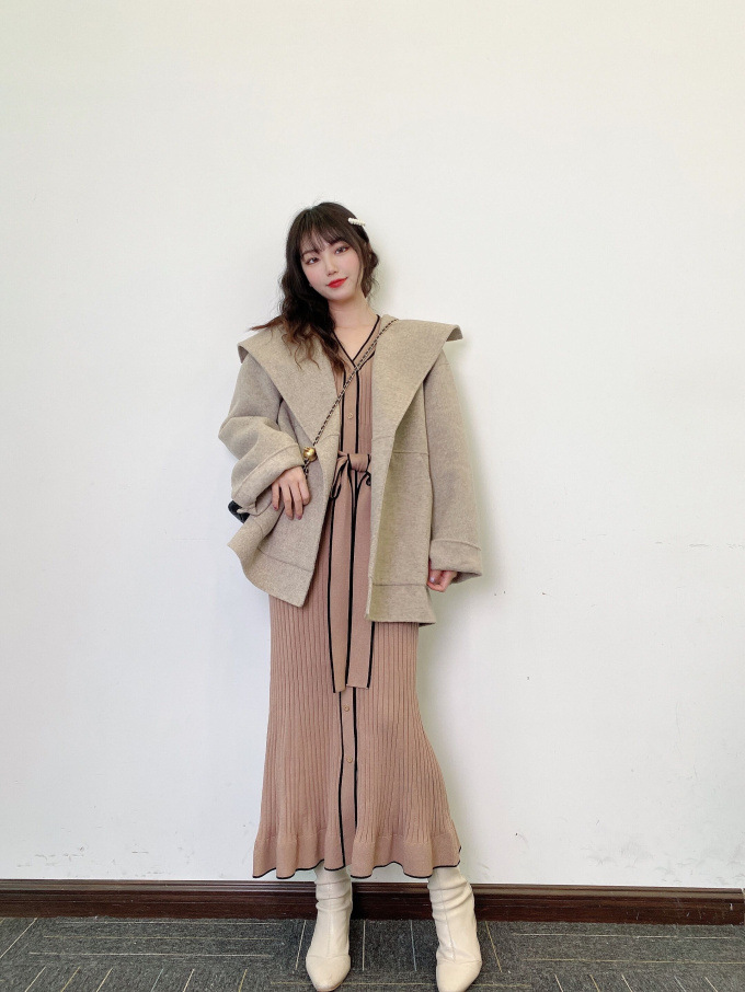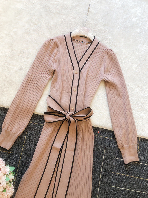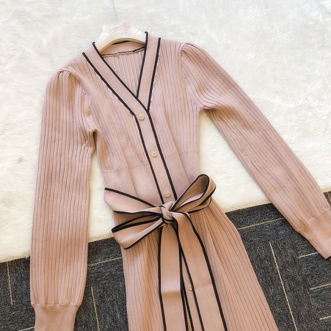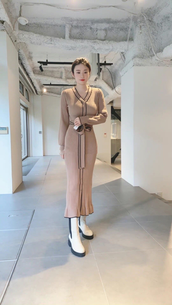 「SNIDEL」で長く愛されているフロントボタンニットワンピースに、パイピングなどのクラシカルなディティールを加え今季らしいデザインに。肩や袖にボリュームを出すことでコンサバ見えを防ぎ、従来より着丈を長くすることでどんな身長の方も着やすいようアップデートしました。深めのVネックがデコルテに色香を与え、ボディラインを美しく魅せるマーメイドとウエストベルトでとことんレディな印象に。程良く厚手のニットを使用しているので、身体を拾いすぎず安心して着ていただけます。