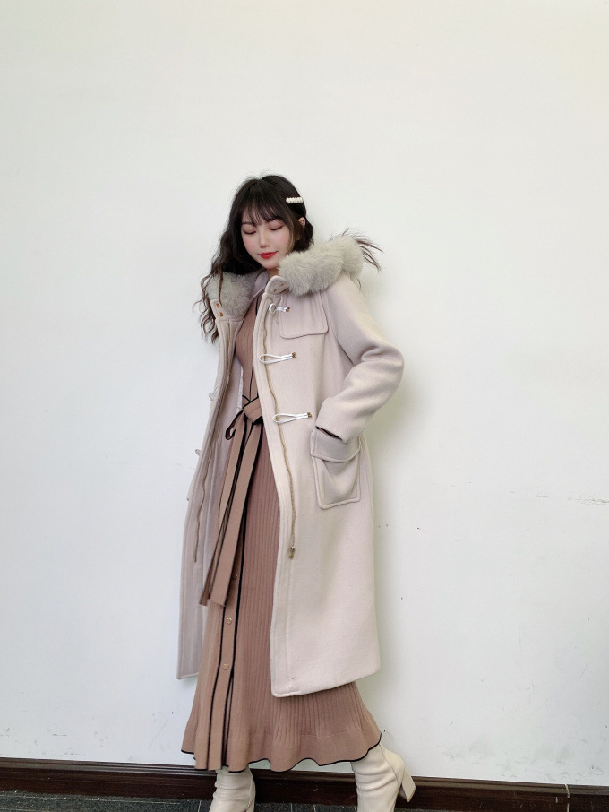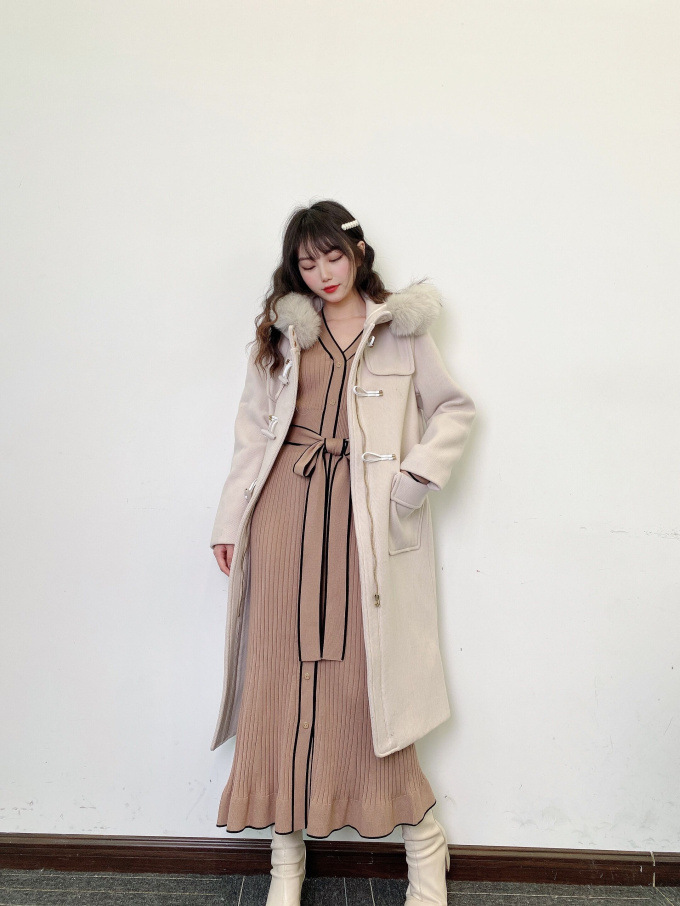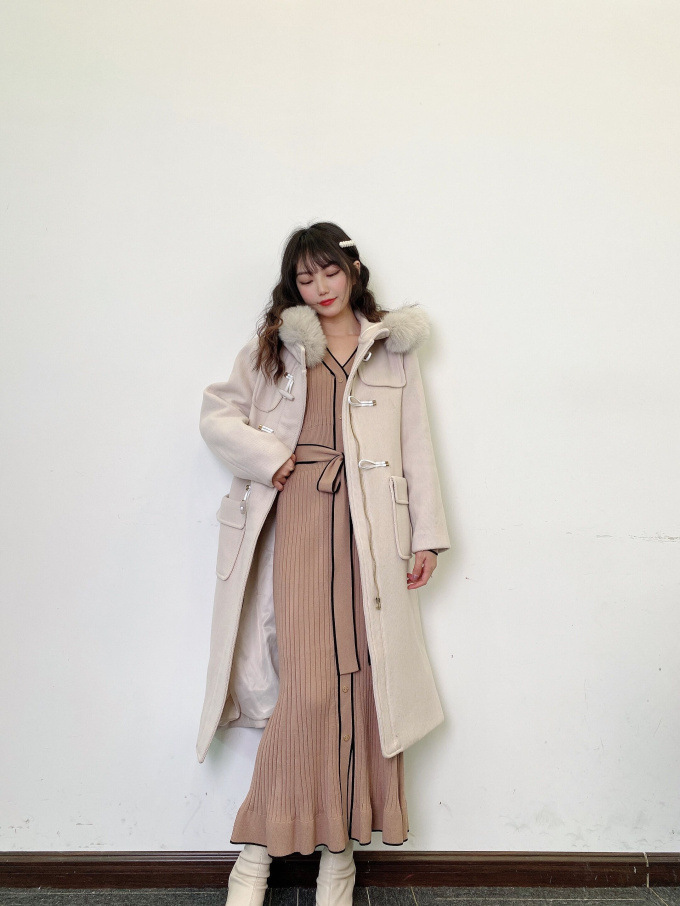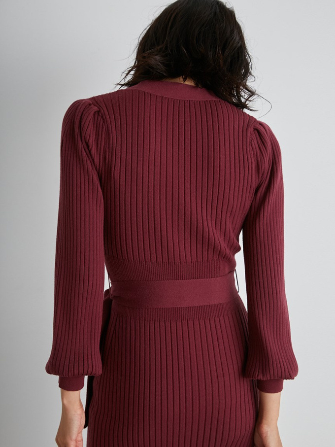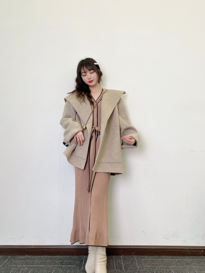 肌当たり滑らかでストレッチ性のあるニットを使用しました。配色パイピングを効かせたベージュとブラック、ワントーンのワインの3色展開です。