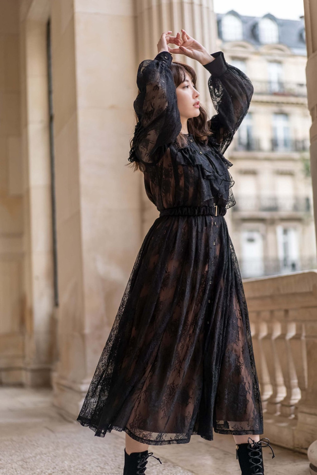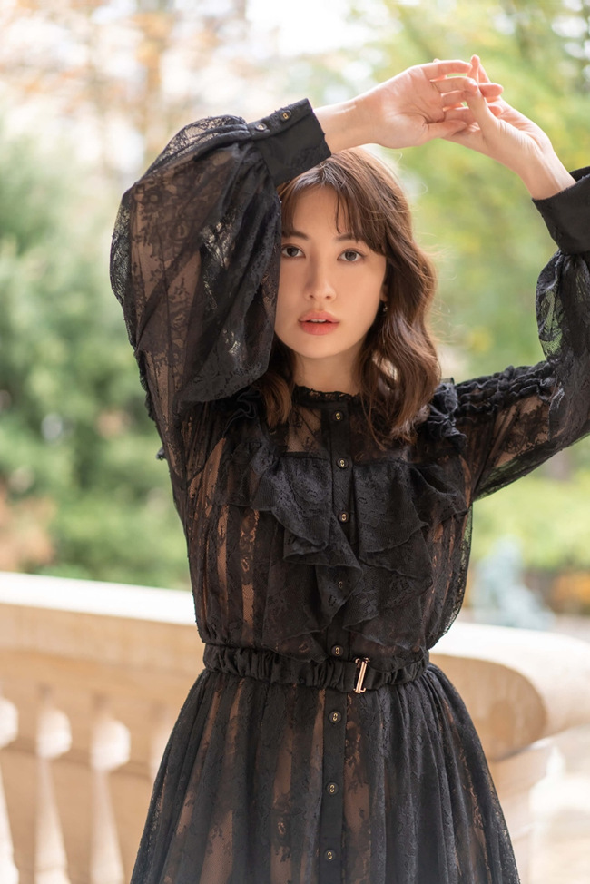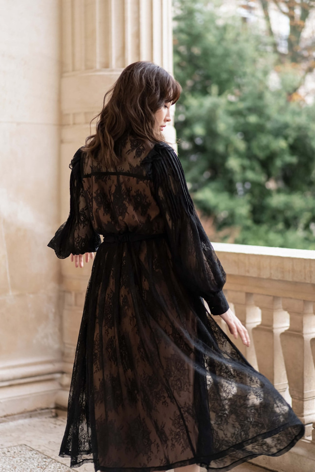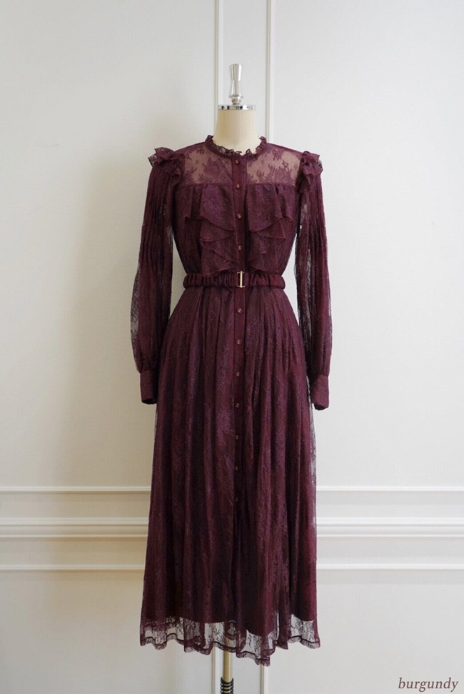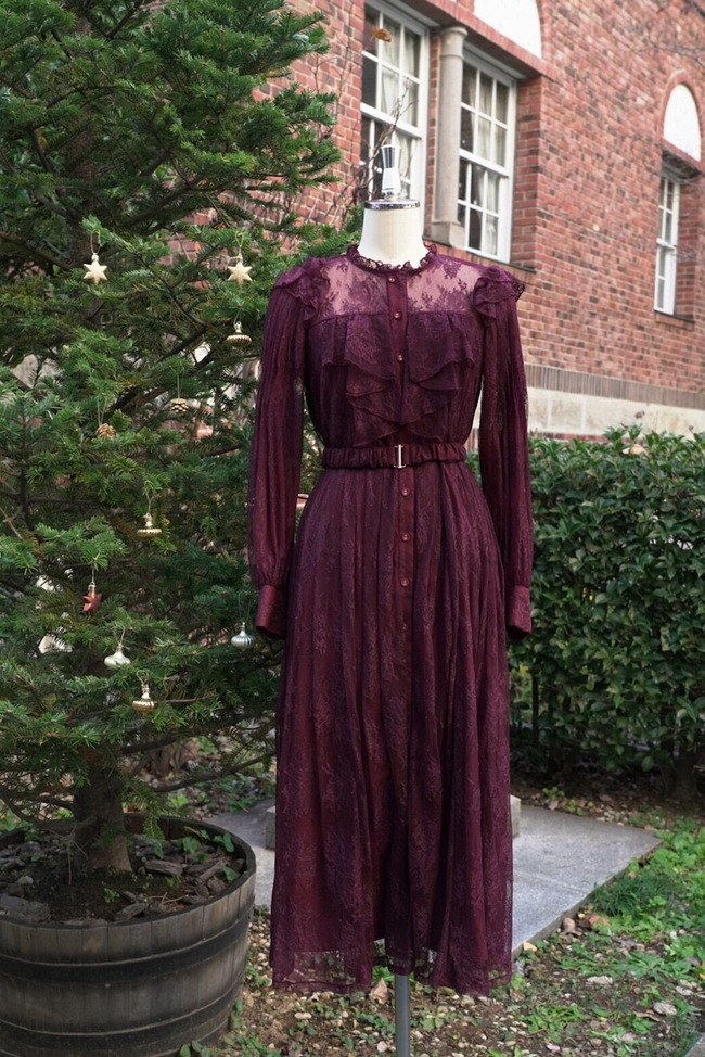 ホリデーシーズンにぴったりな、贅沢にレースを使ったドレスです。