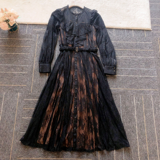 Romantic Lace Belted Dress