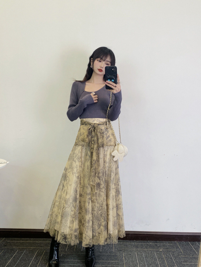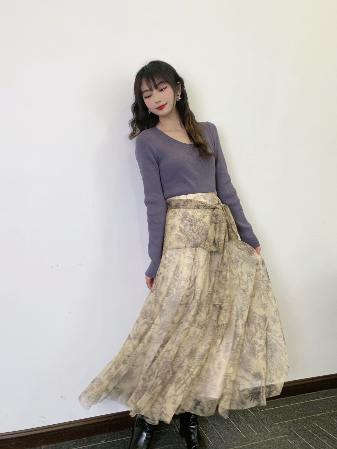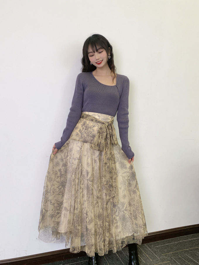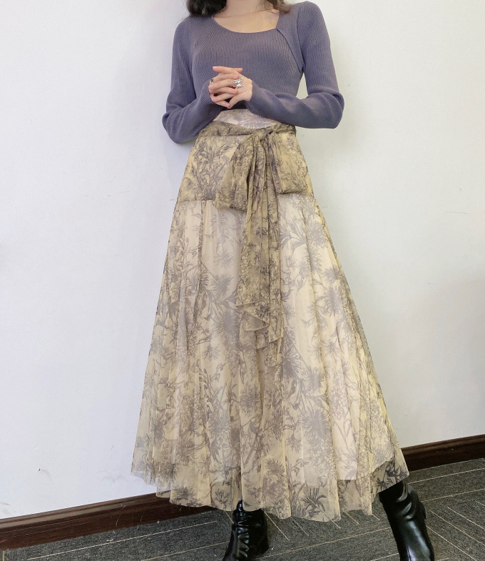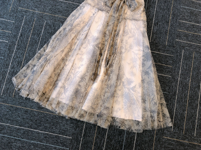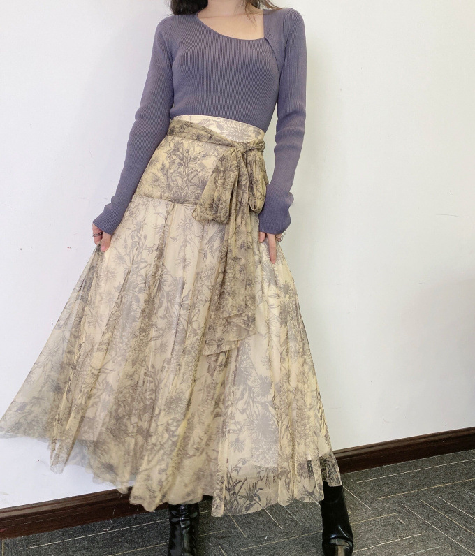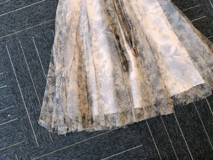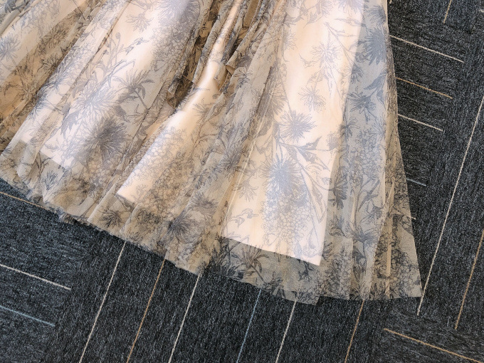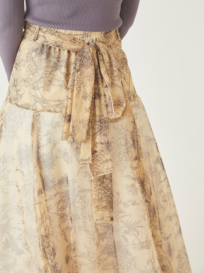 クリスマスのホリデーシーズンから春にかけ、幅広いシーンにお使いいただけるチュールスカート。ウエストからヒップにかけてすっきりと仕上げ、チュールの膨らみを抑えることで着膨れしない美しいシルエットを実現しました。ウエストには表地と同じ生地のリボンをワンポイントであしらい、取り外しが可能なのでシーンに合わせてアレンジいただけます。コーディネートに華をプラスする、ヴィンテージライクな花柄が一押しです。