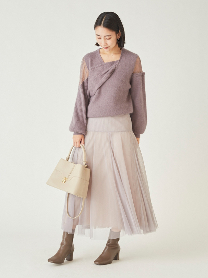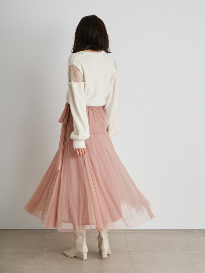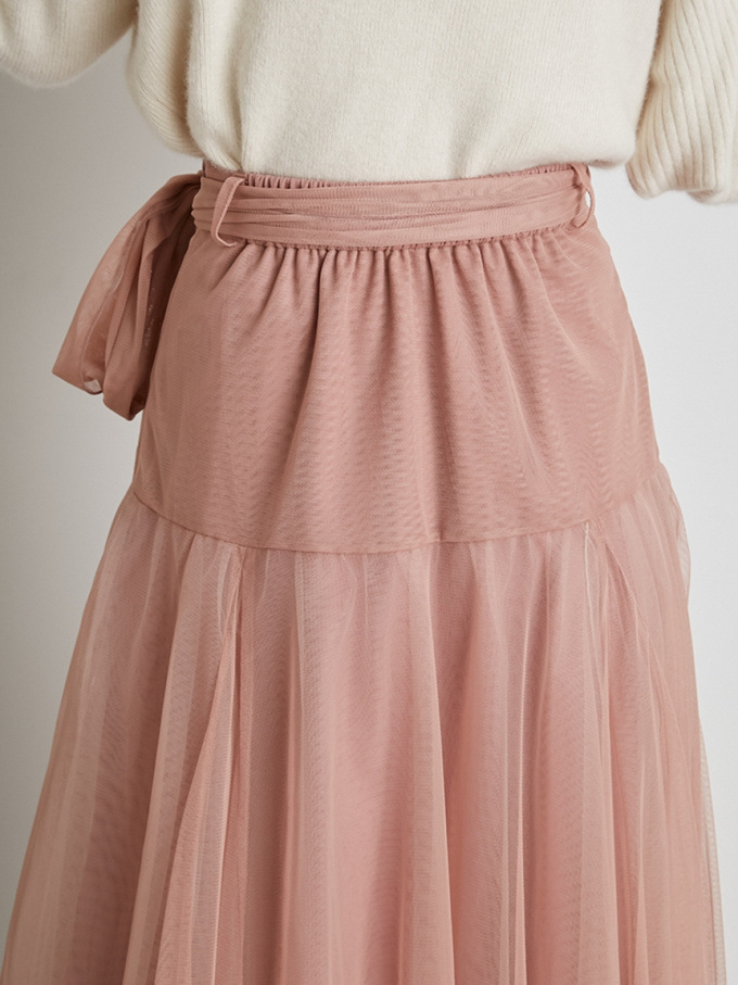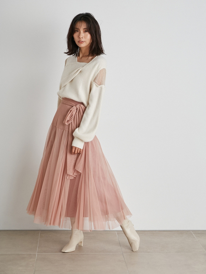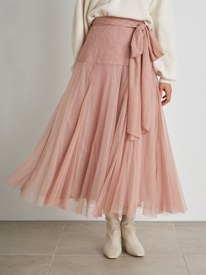 【スタイリングに華やかさをプラスするハイウエストチュールスカート】