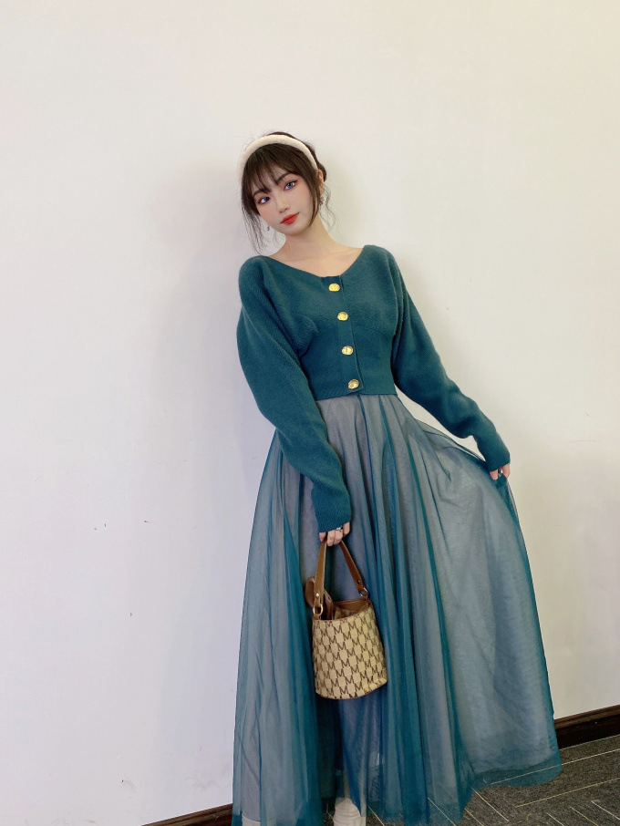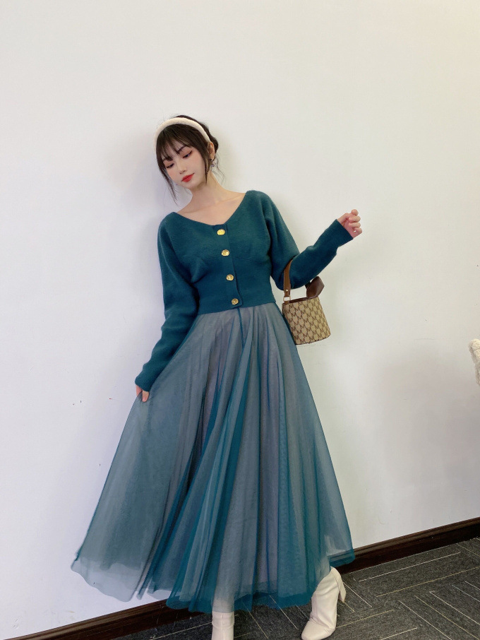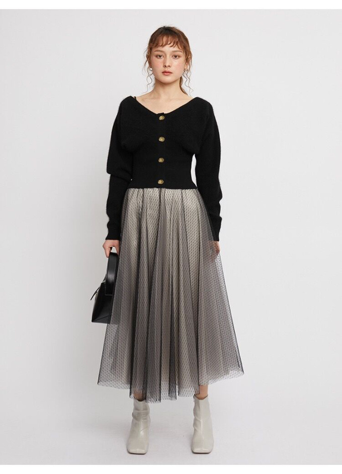 フレアチュールコンビニットワンピース