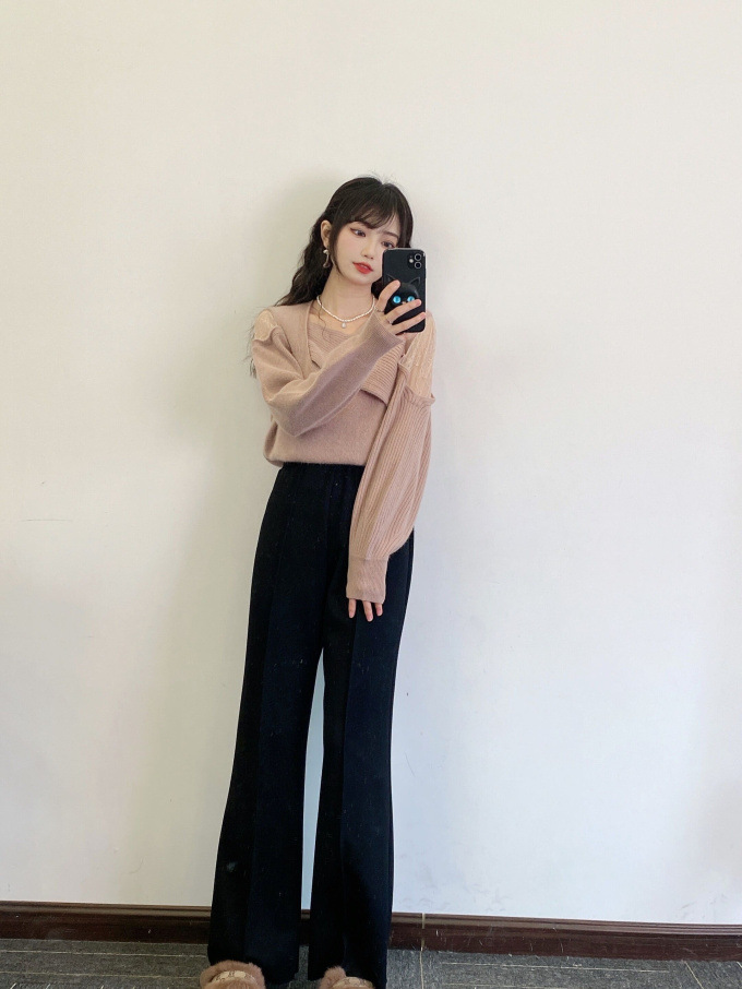 やや毛足の長い柔らかなニットを使用しました。アイボリー、ピンク、チャコールグレーの3色展開です。
