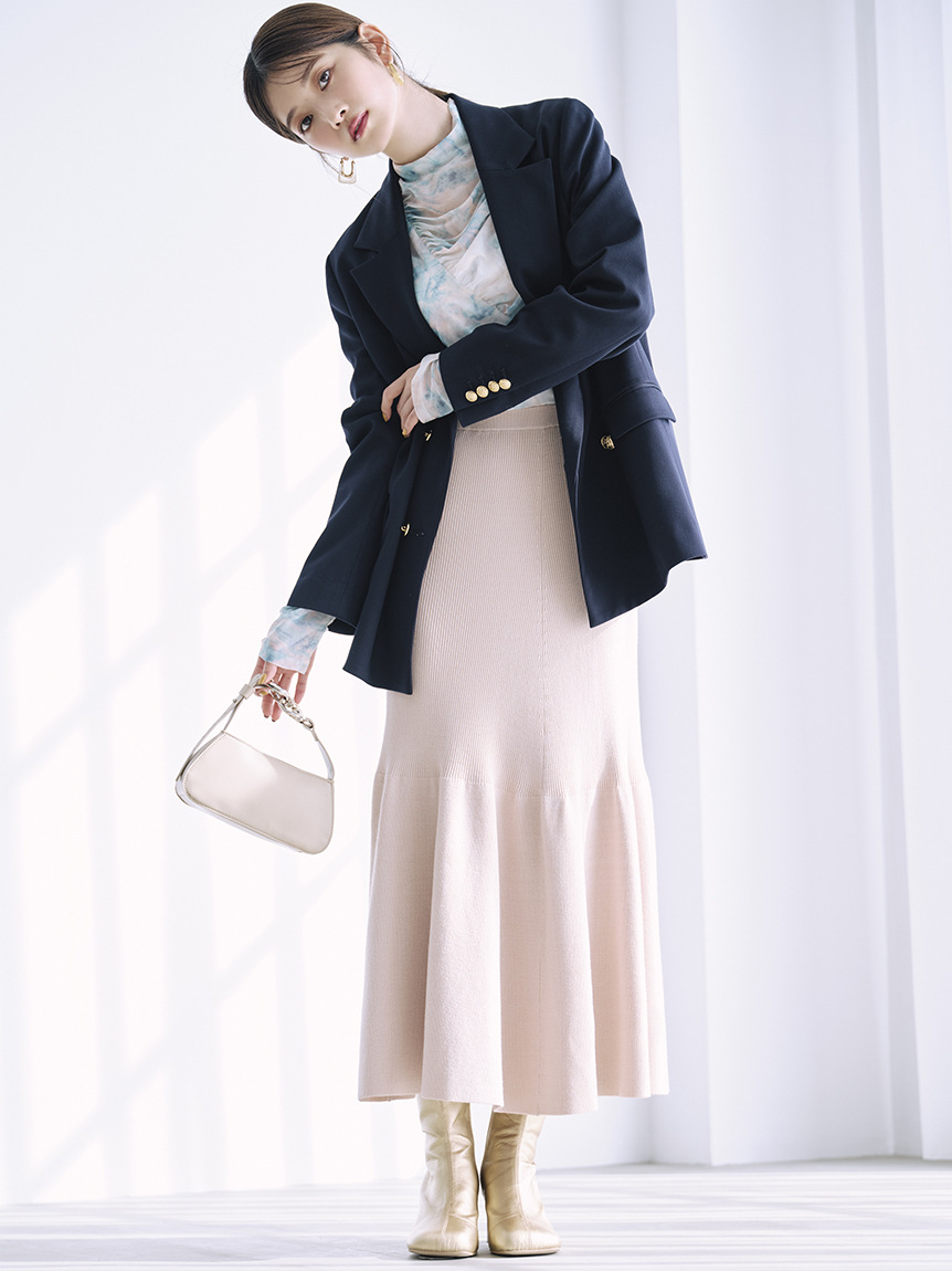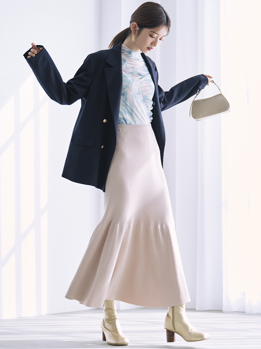 ウエストゴムで着心地の良いマーメイドスカートは、裾に向かって広がるフレアシルエットが上品さをプラス。セットで着てワンピ見えはもちろん、単品使いでも着回しの効く3way仕様です。
