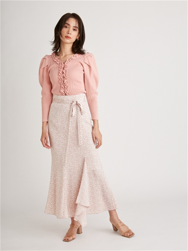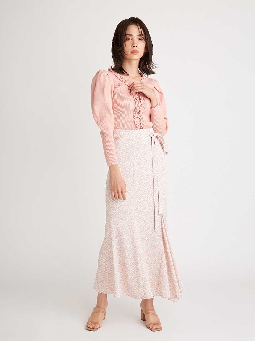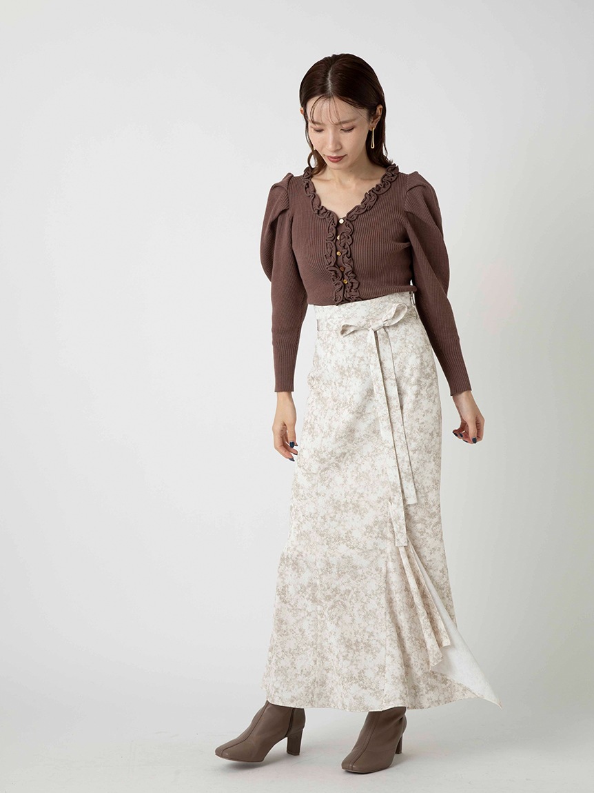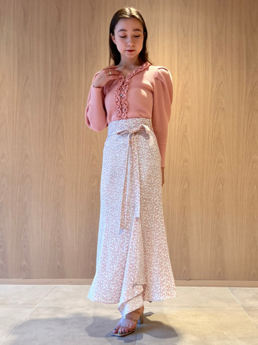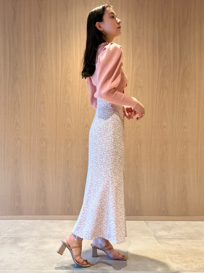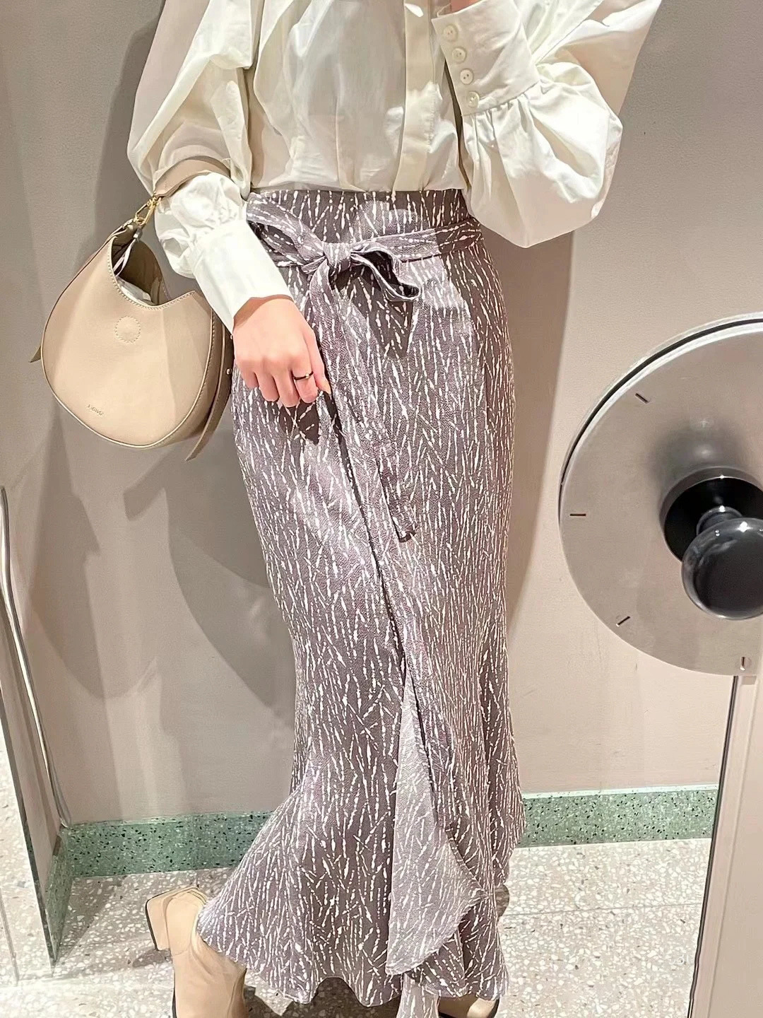 一面に春らしいプリントを浮かべた「SNIDEL」定番のロングスカート。トレンド感たっぷりのマーメイドシルエットで、女性らしさを存分に高めてくれます。フロントのマチにはスリットを入れているから、動くたびにエレガントな表情に。ボディにフィットするハイウエスト×細ベルトでメリハリ感が生まれ、脚長効果も存分に期待できます。