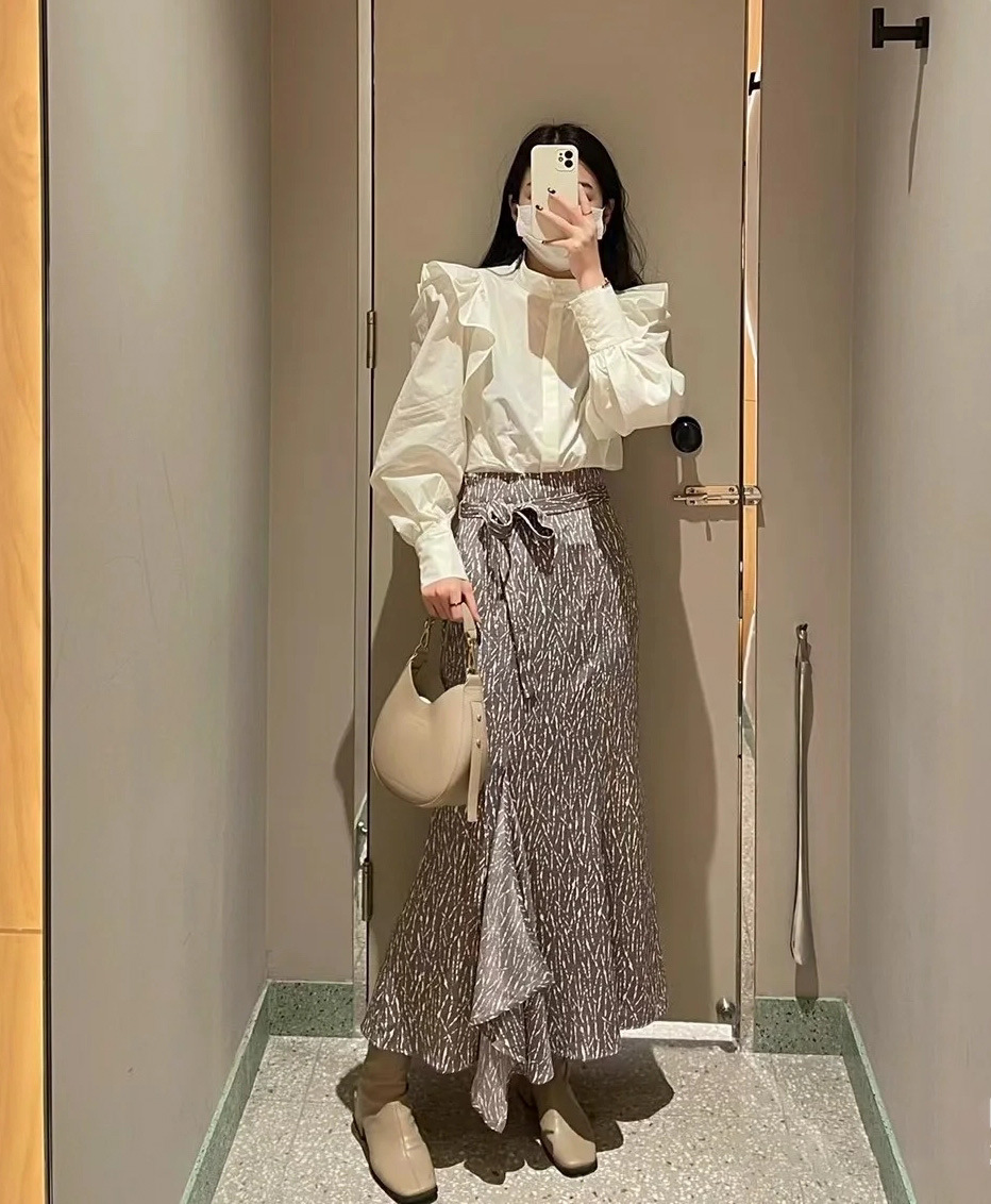 【春らしいプリントでコーデが一気に華やぐ定番ロングスカート】