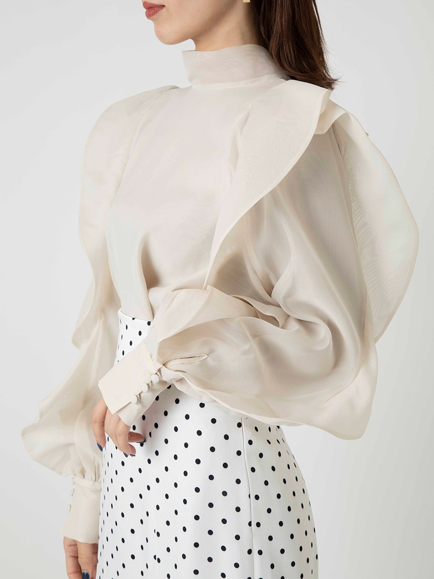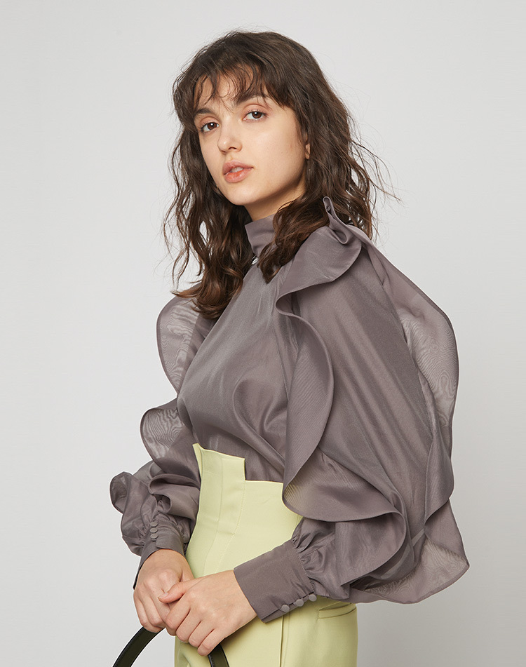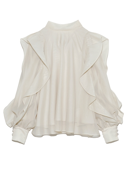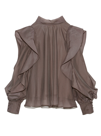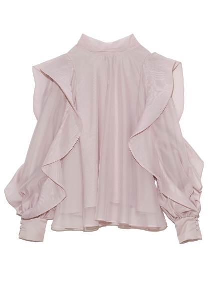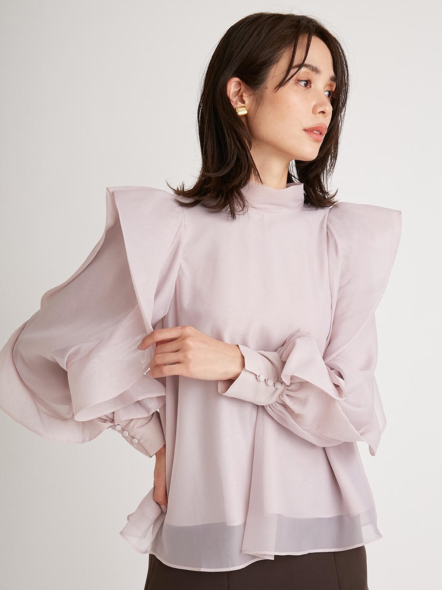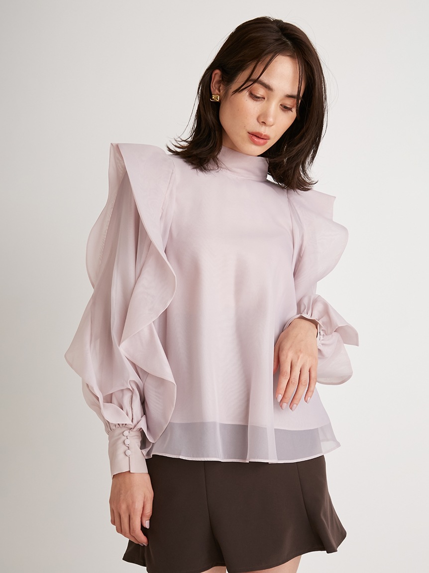 【立体感のあるボリュームフリルが印象的なシースルーブラウス】