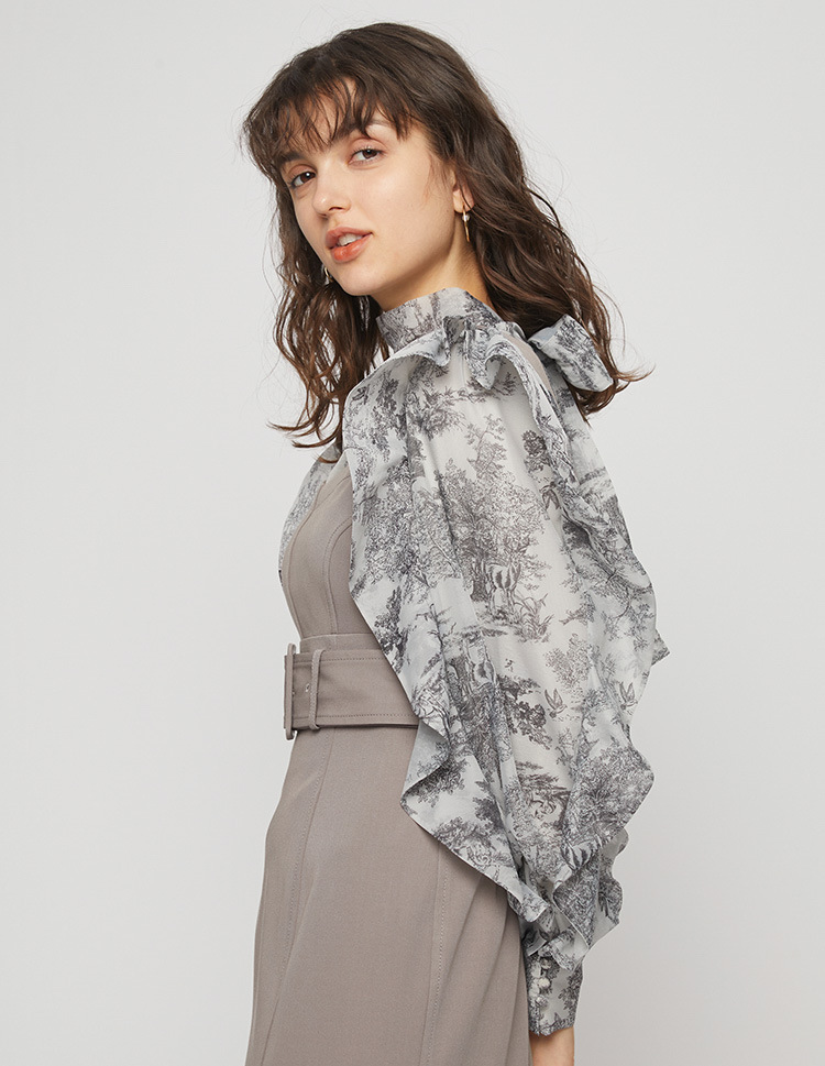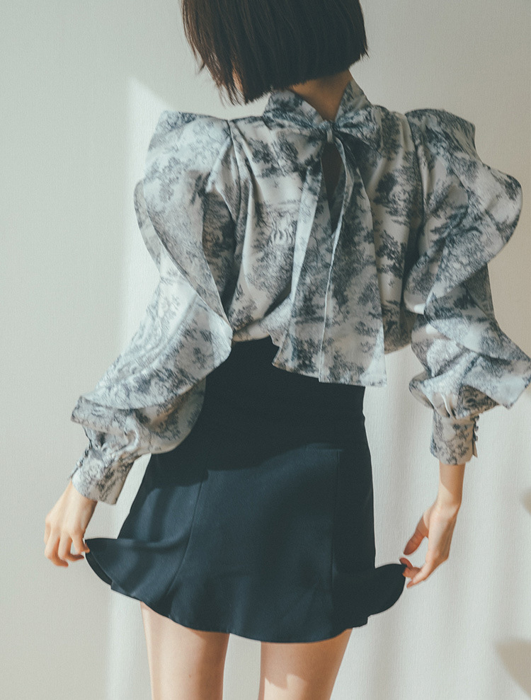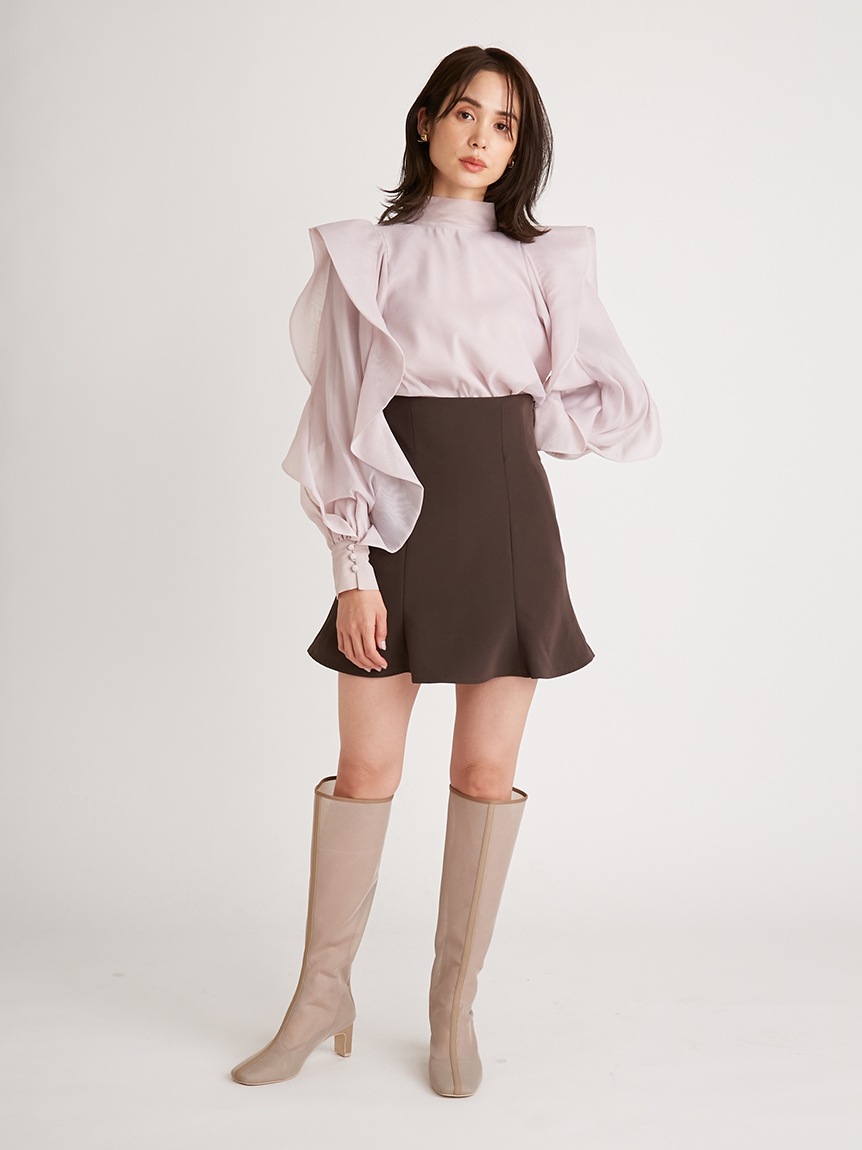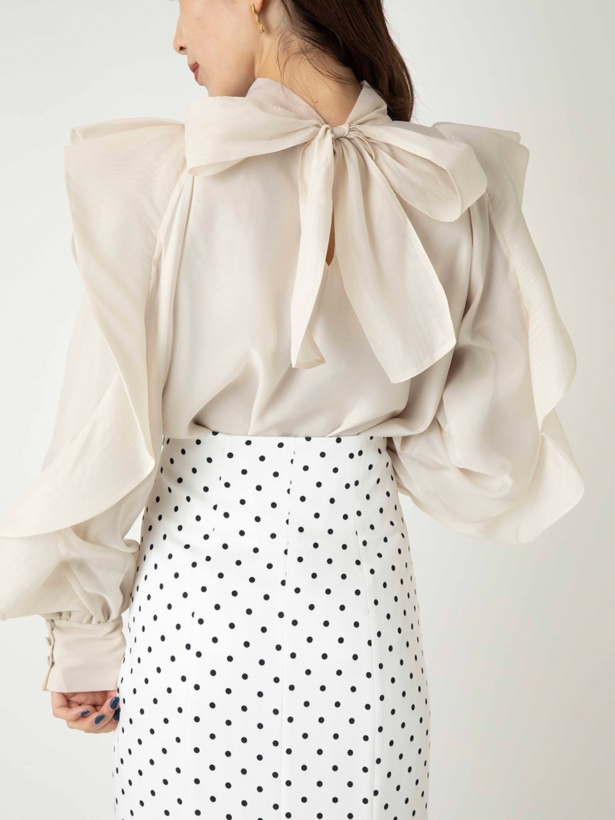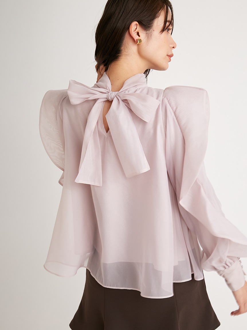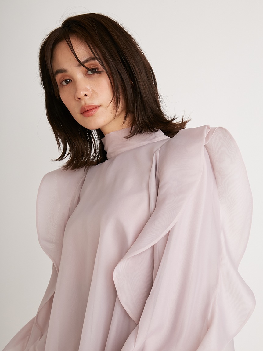 【立体感のあるボリュームフリルが印象的なシースルーブラウス】