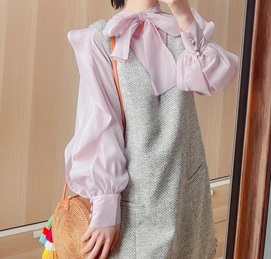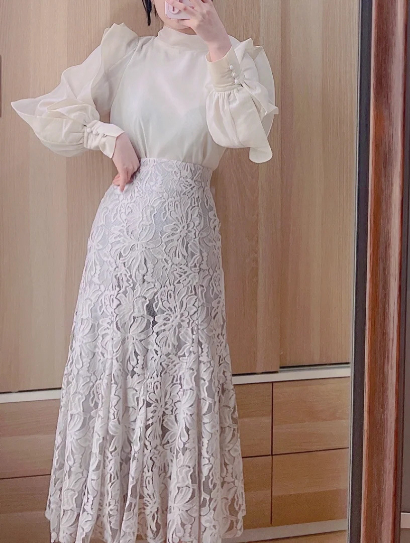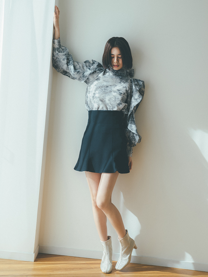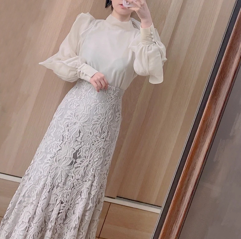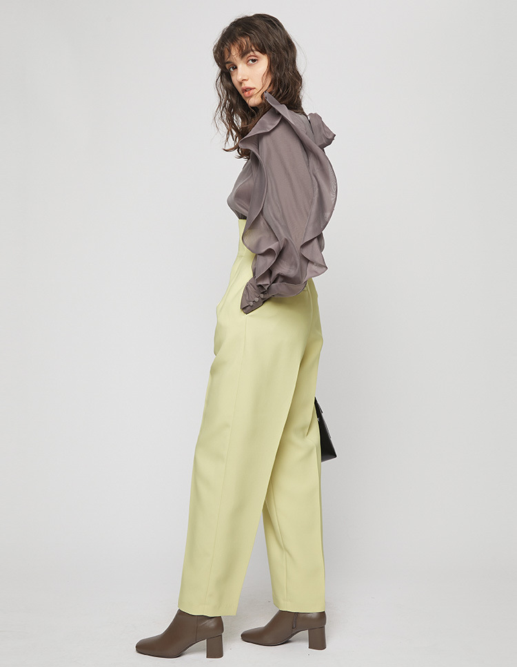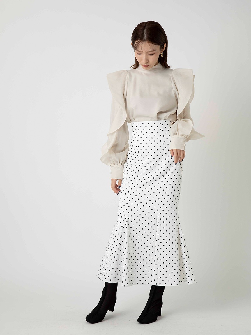 【立体感のあるボリュームフリルが印象的なシースルーブラウス】
