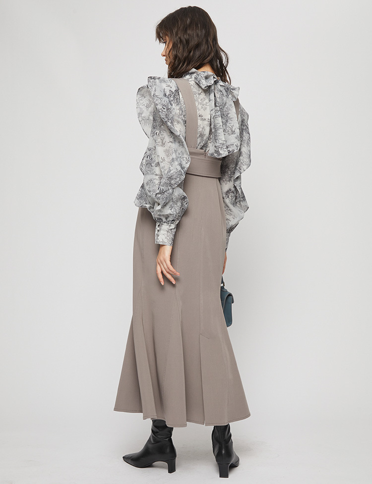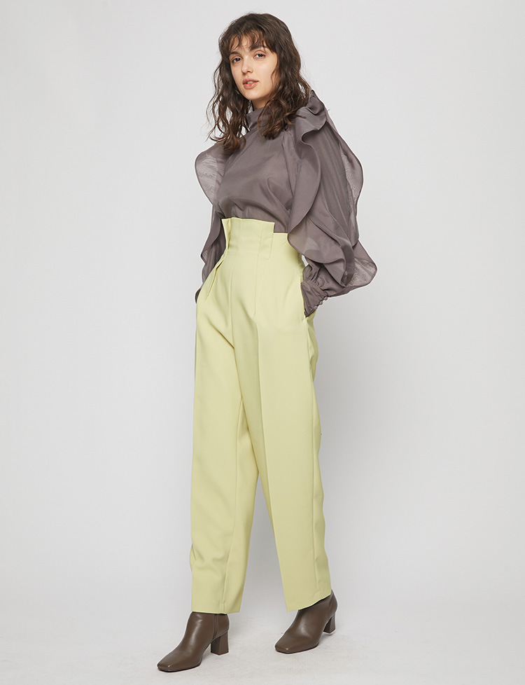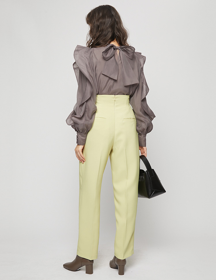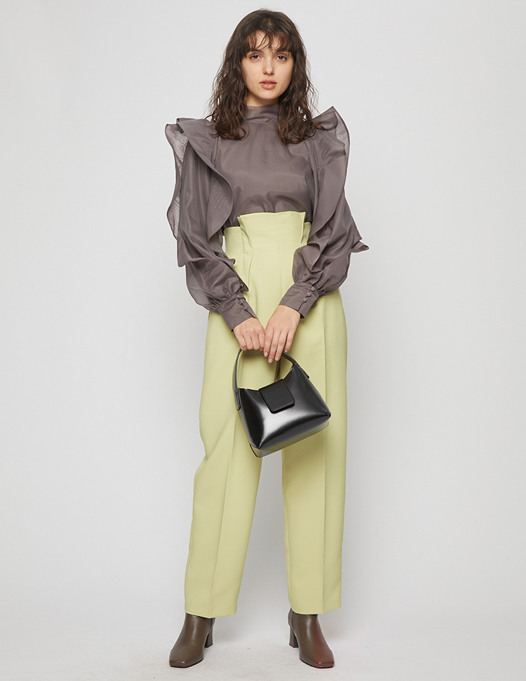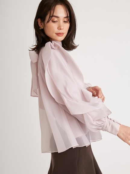 SNIDEL定番のオーガンシースルーブラウス。今シーズンはエレガントに広がるフリルがあしらわれたボリュームスリーブが印象的な、レディ度満点のブラウス。絶妙な透け感を持つオーガンジーを用いた、「SNIDEL」で毎回人気を集めるアイテムです。袖のカフス&スタンドカラーで全体を引き締めることで、ボリュームがありながらもすっきりとした印象に。バックネックには大きなリボンをあしらい、後ろ姿まで抜かりなく仕上げています。