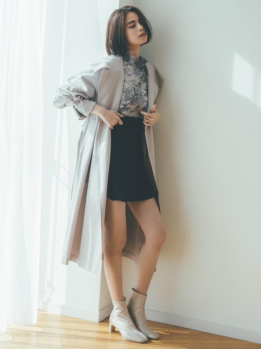 品の良いシアー感と光沢を持つオーガンジー素材を使用。優しい色合いのオフホワイト、グレーベージュ、ラベンダーに、愛らしいオリジナルプリントの4色をご用意しました。