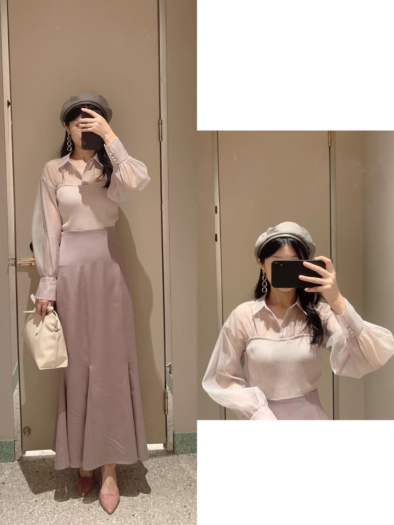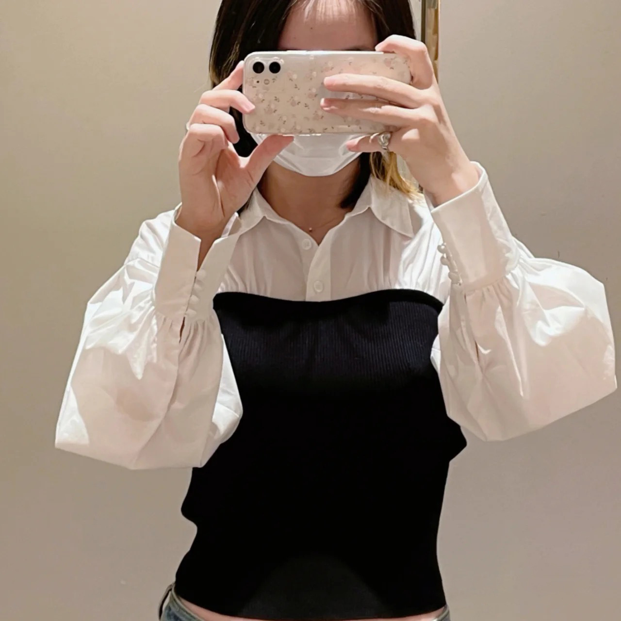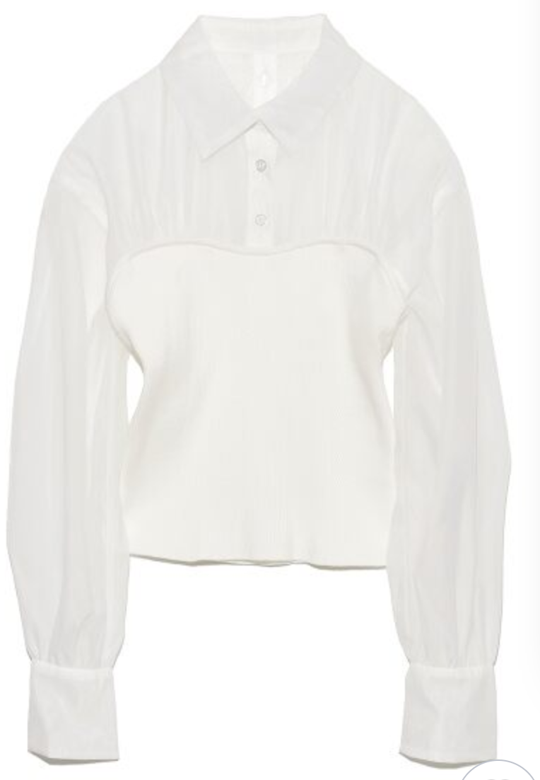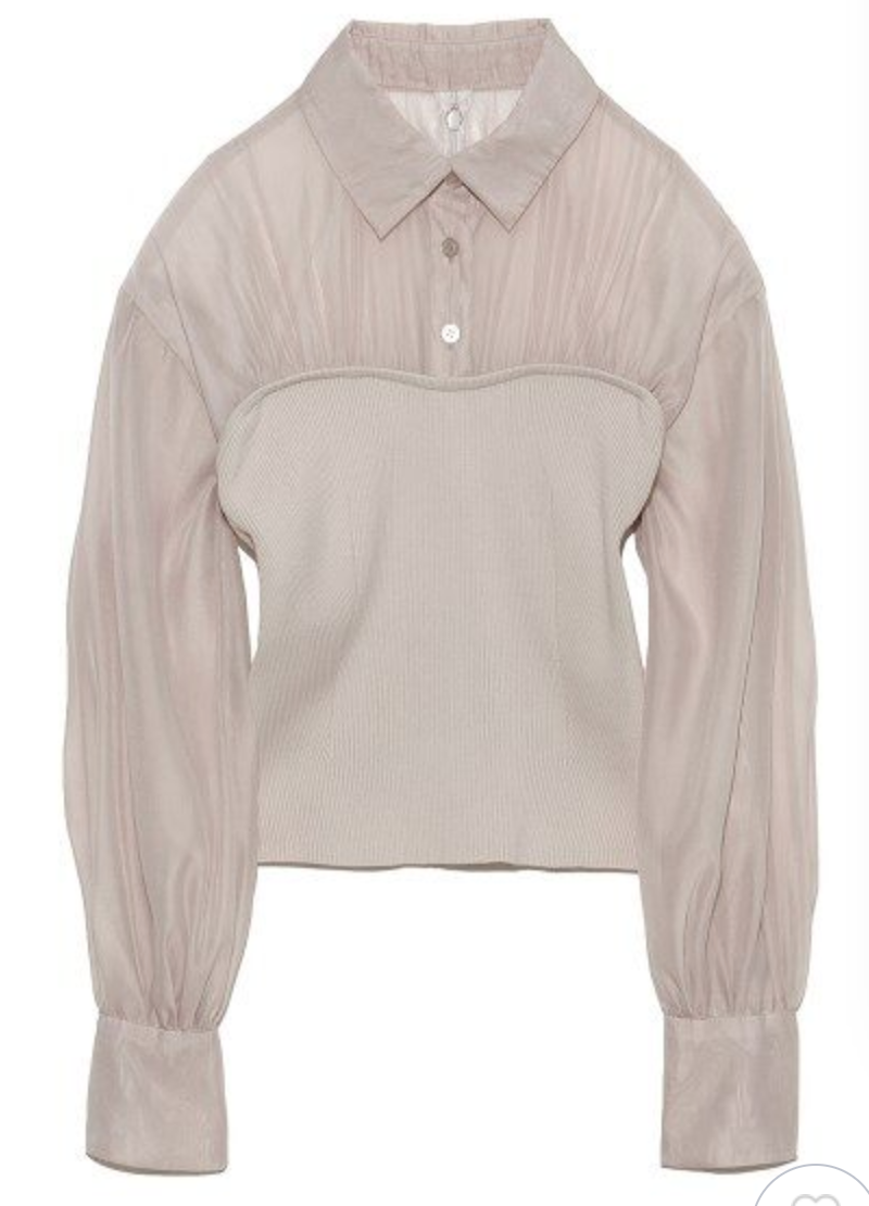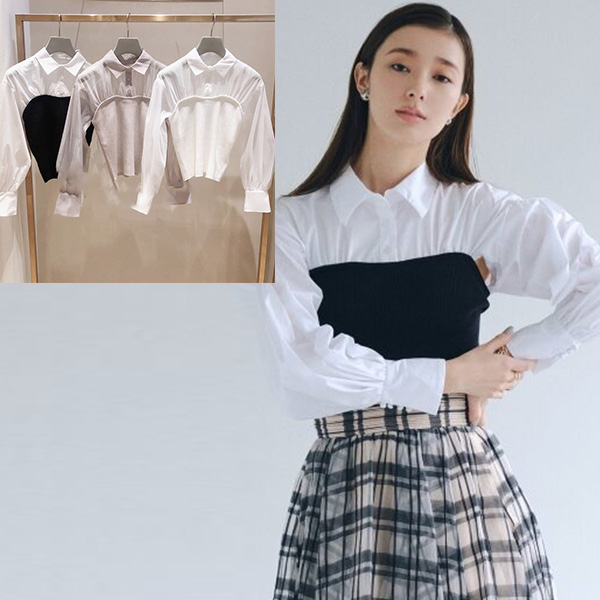 まるでビスチェをシャツにレイヤードしているかのようなドッキングデザインのプルオーバー。トレンド感溢れるルックスでスタイリングの鮮度を高めてくれる1着です。ふんわりとしたボリュームスリーブがボディを華奢に見せ、女性らしいメリハリのあるシルエットに。スカートともパンツともバランス良く決まり、幅広いコーディネートに活躍してくれます。