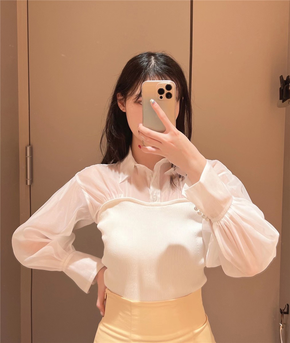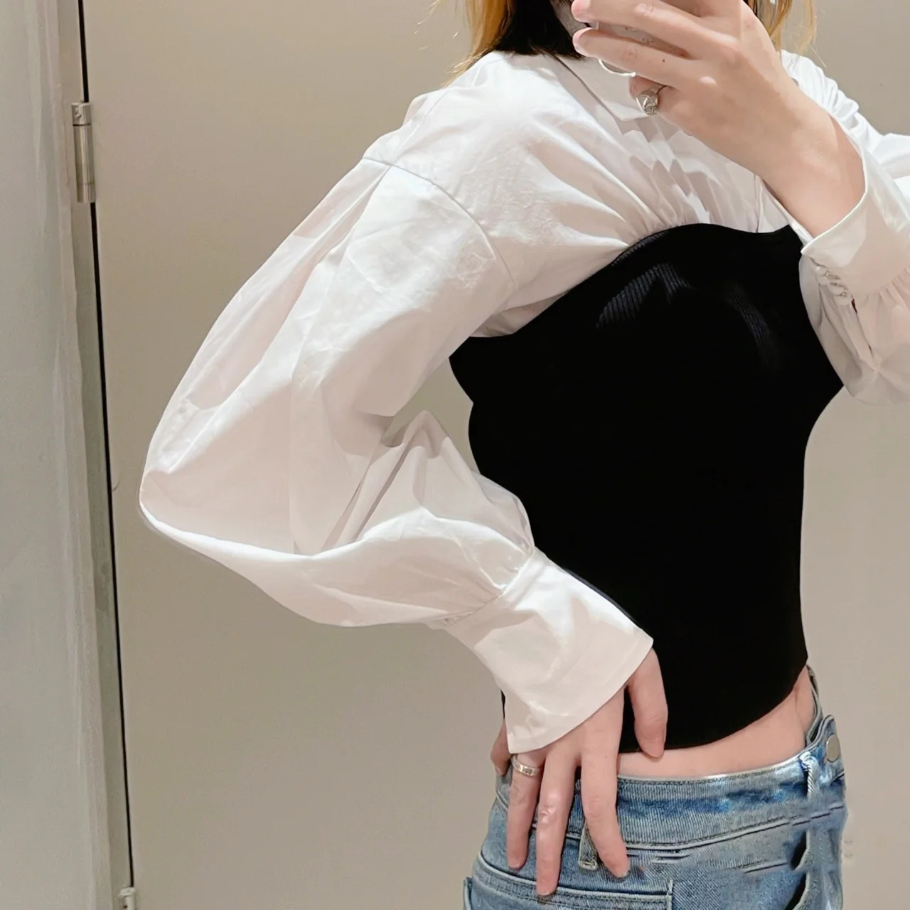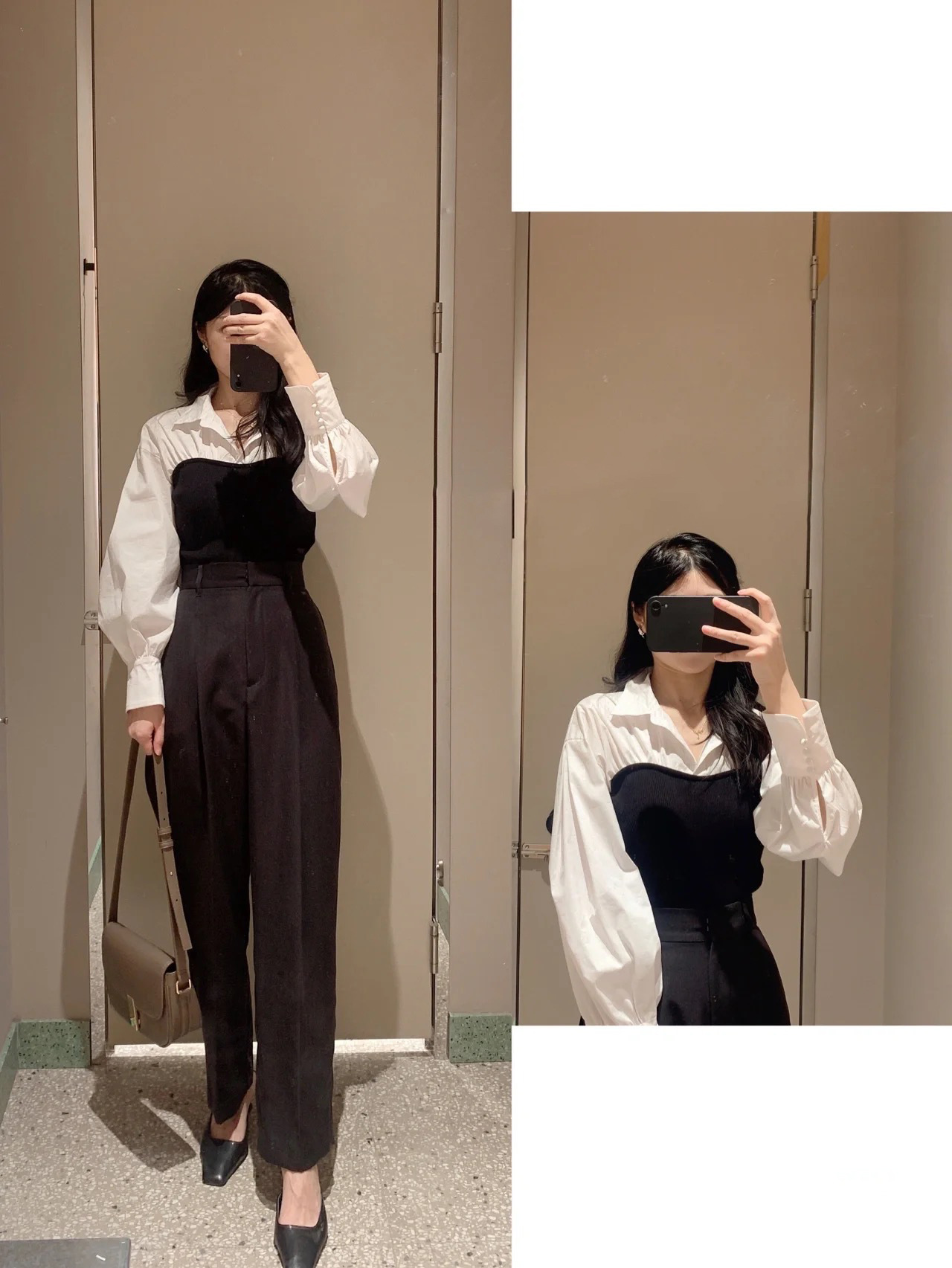 まるでビスチェをシャツにレイヤードしているかのようなドッキングデザインのプルオーバー。トレンド感溢れるルックスでスタイリングの鮮度を高めてくれる1着です。ふんわりとしたボリュームスリーブがボディを華奢に見せ、女性らしいメリハリのあるシルエットに。スカートともパンツともバランス良く決まり、幅広いコーディネートに活躍してくれます。