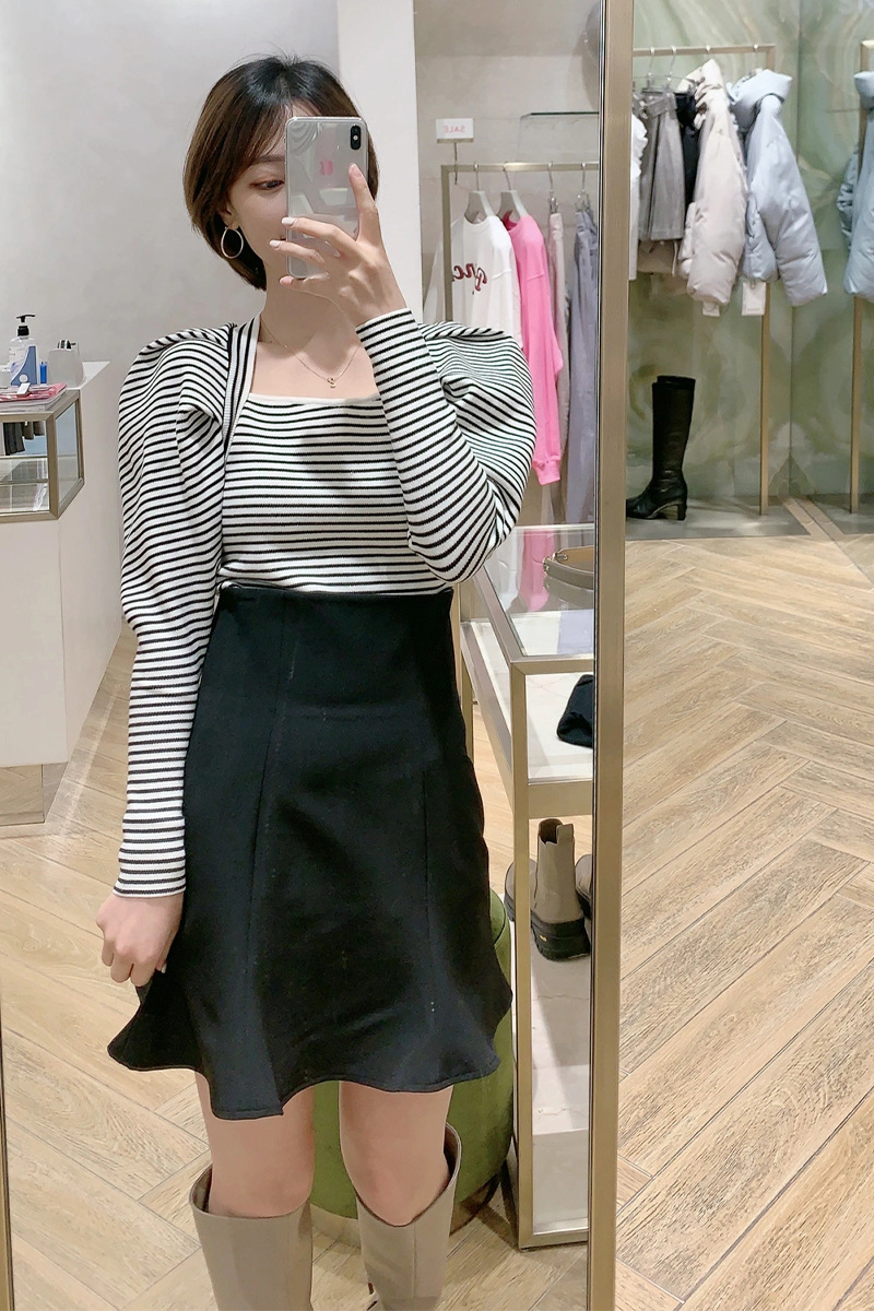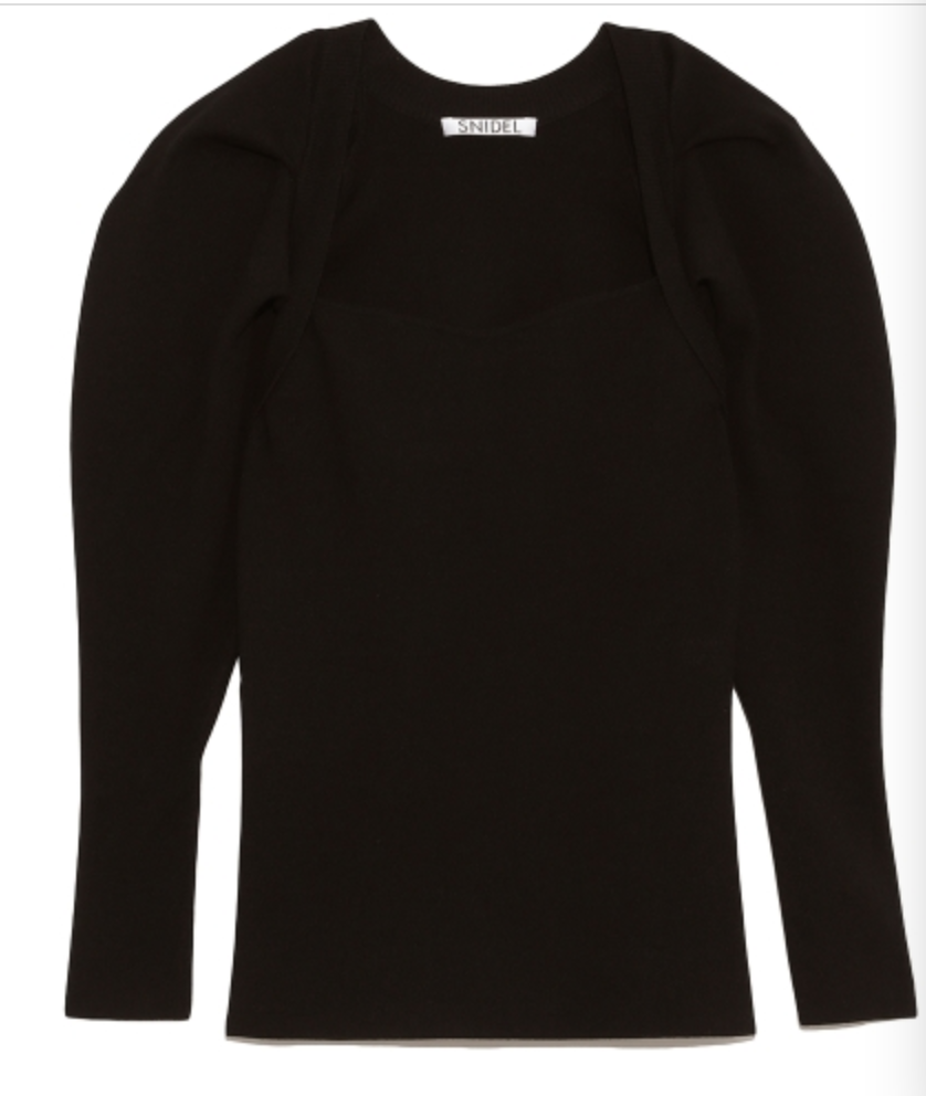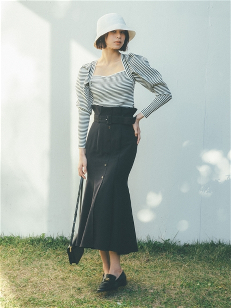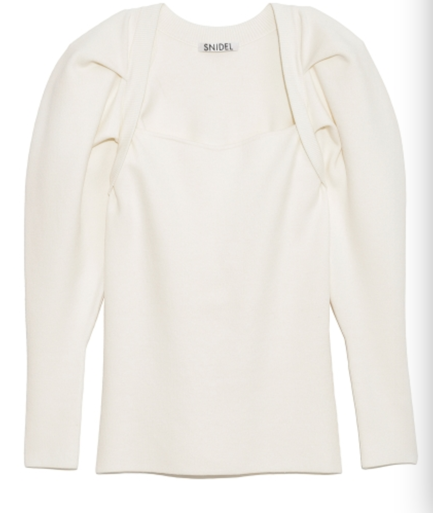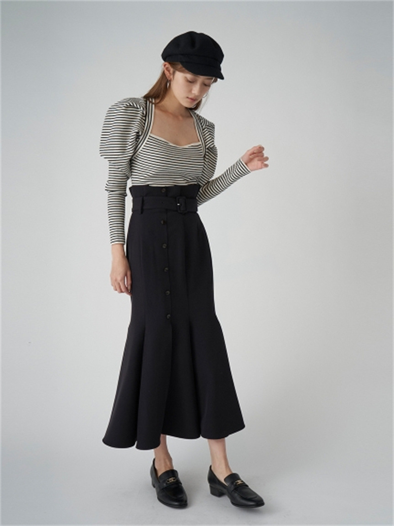 まるでコルセットをレイヤードしているかのような技ありデザインが目を引く、上品クラシカルなニットプルオーバー。絶妙なカーブを描く胸元のラインが、さり気なく女性らしさを高めてくれます。タックを効かせたっぷりとボリュームを持たせたパフスリーブとタイトな身頃のメリハリシルエットでスタイルアップ効果は抜群。ゆったりと広がるフレアスカートからパンツまで様々なボトムと相性が良く、着まわし力も◎です。
