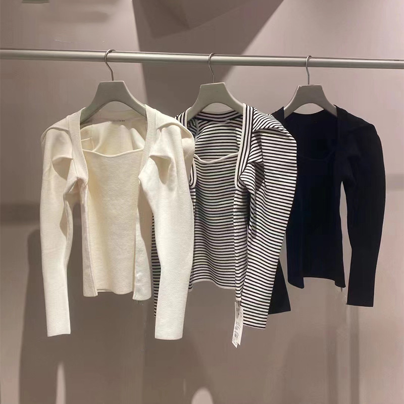 肌触りの良い糸を用いた柔らかなニット素材を使用。ベーシックなホワイト、ブラックにボーダー柄を加えた3色展開です。