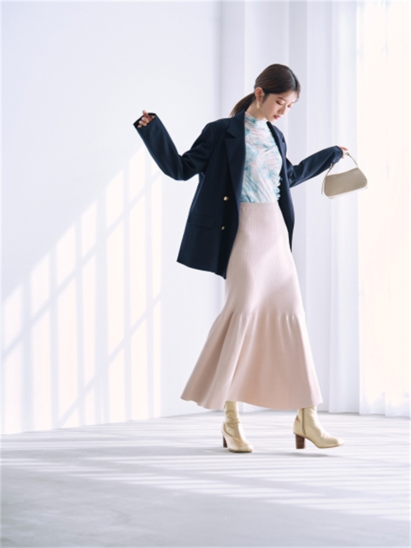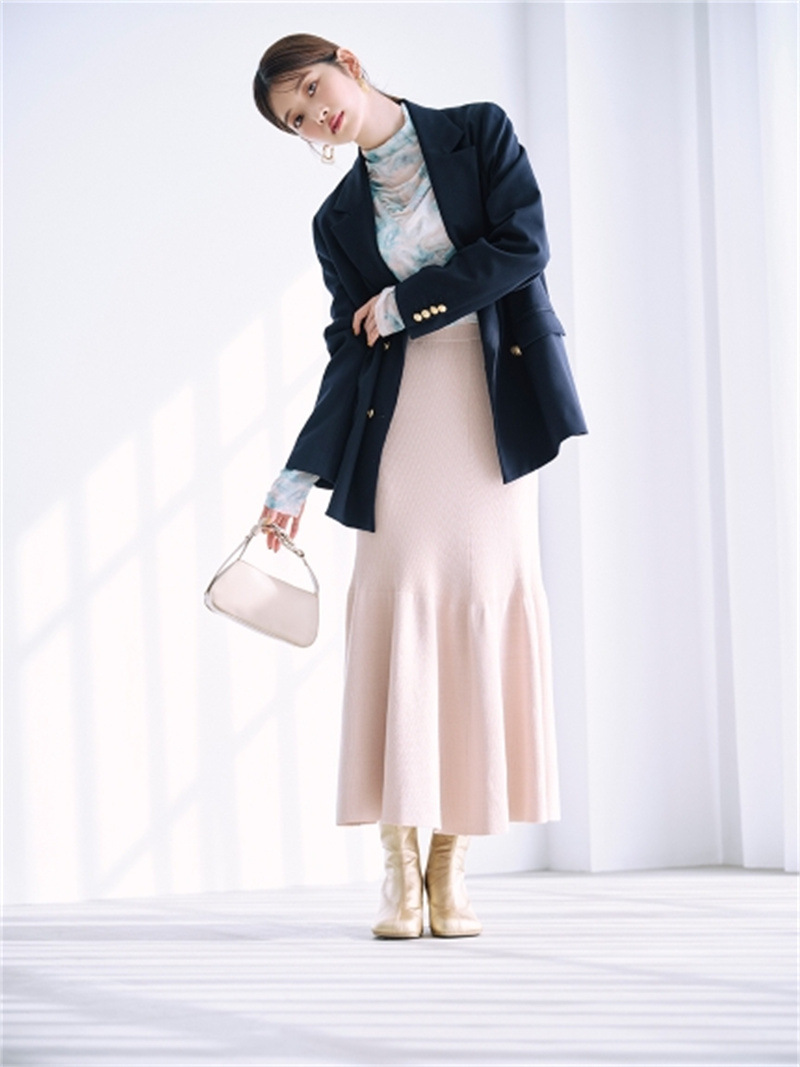 ウエストゴムで着心地の良いマーメイドスカートは、裾に向かって広がるフレアシルエットが上品さをプラス。セットで着てワンピ見えはもちろん、単品使いでも着回しの効く3way仕様です。