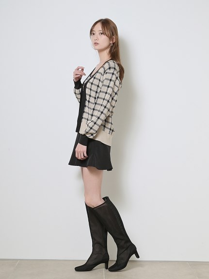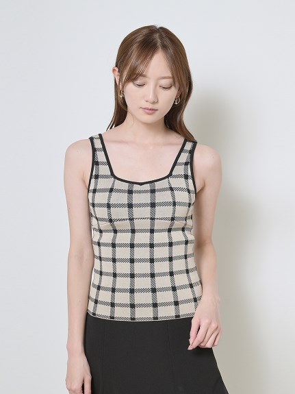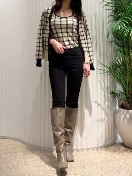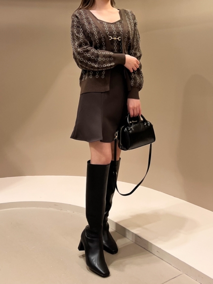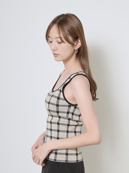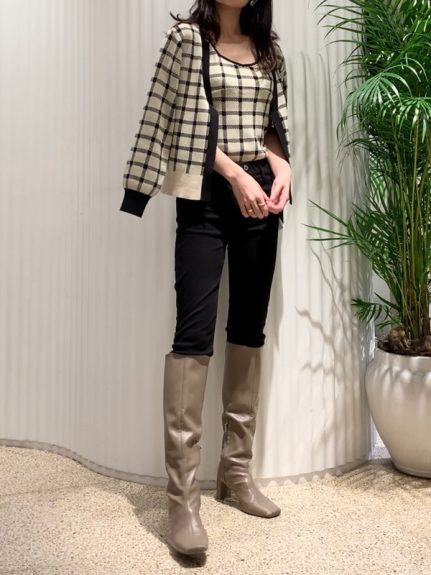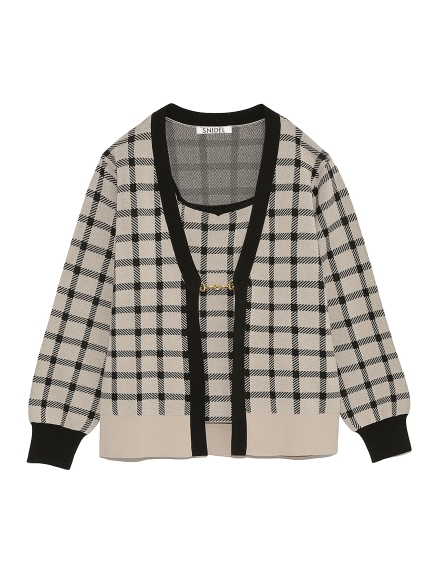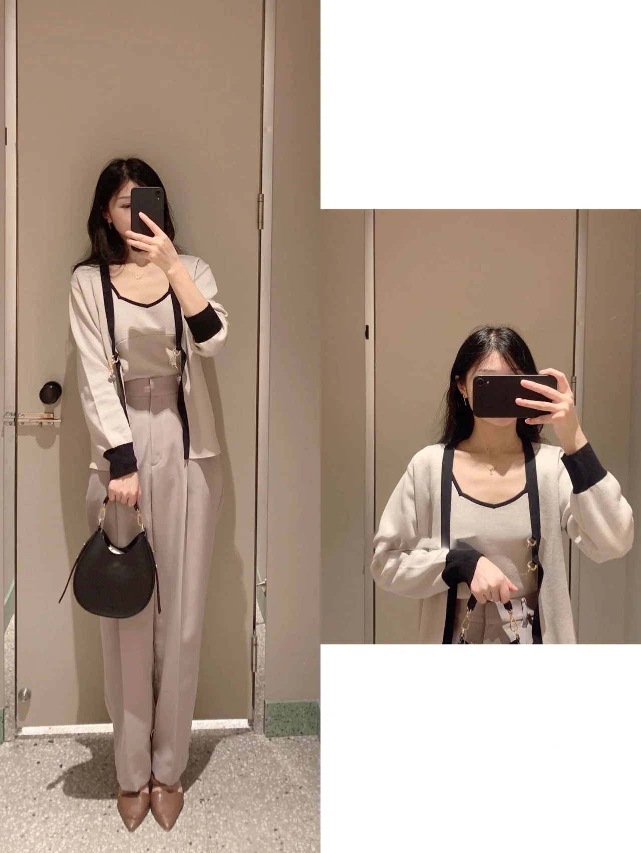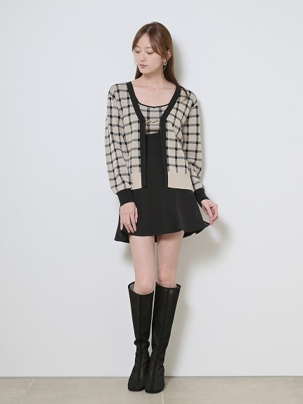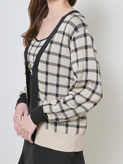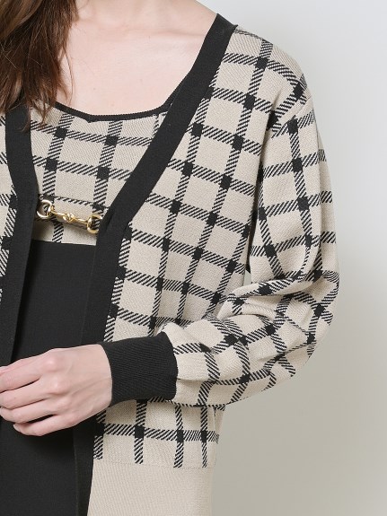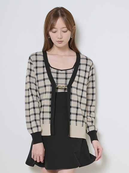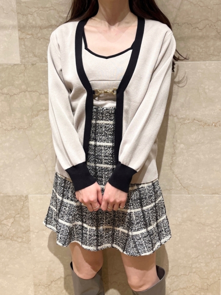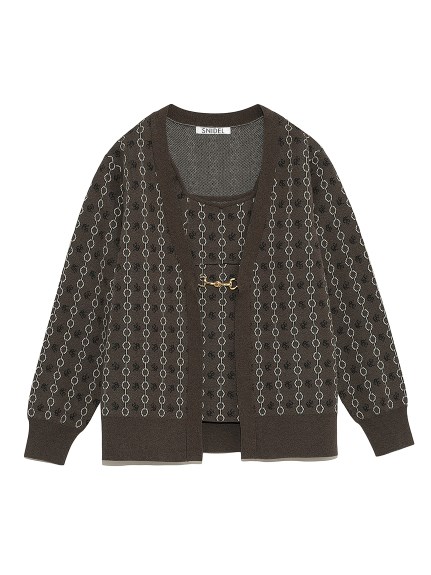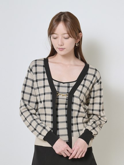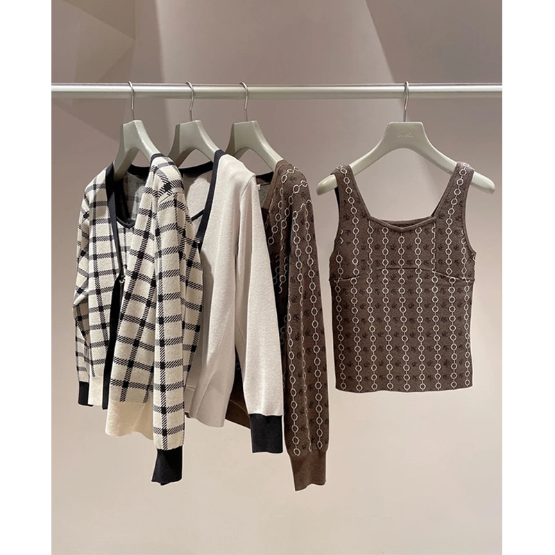 トレンドライクなロゴのインターシャを取り入れたニットアンサンブル。カーディガンのフロントにビットをあしらいクラシカルに仕上げました。インのタンクトップはフィット感のあるシルエット&広めに開いたスクエアネックで、女性らしさを演出。セットではもちろん、それぞれ単品でも活躍してくれるので、これだけでコーディネートの幅は一気に広がります。