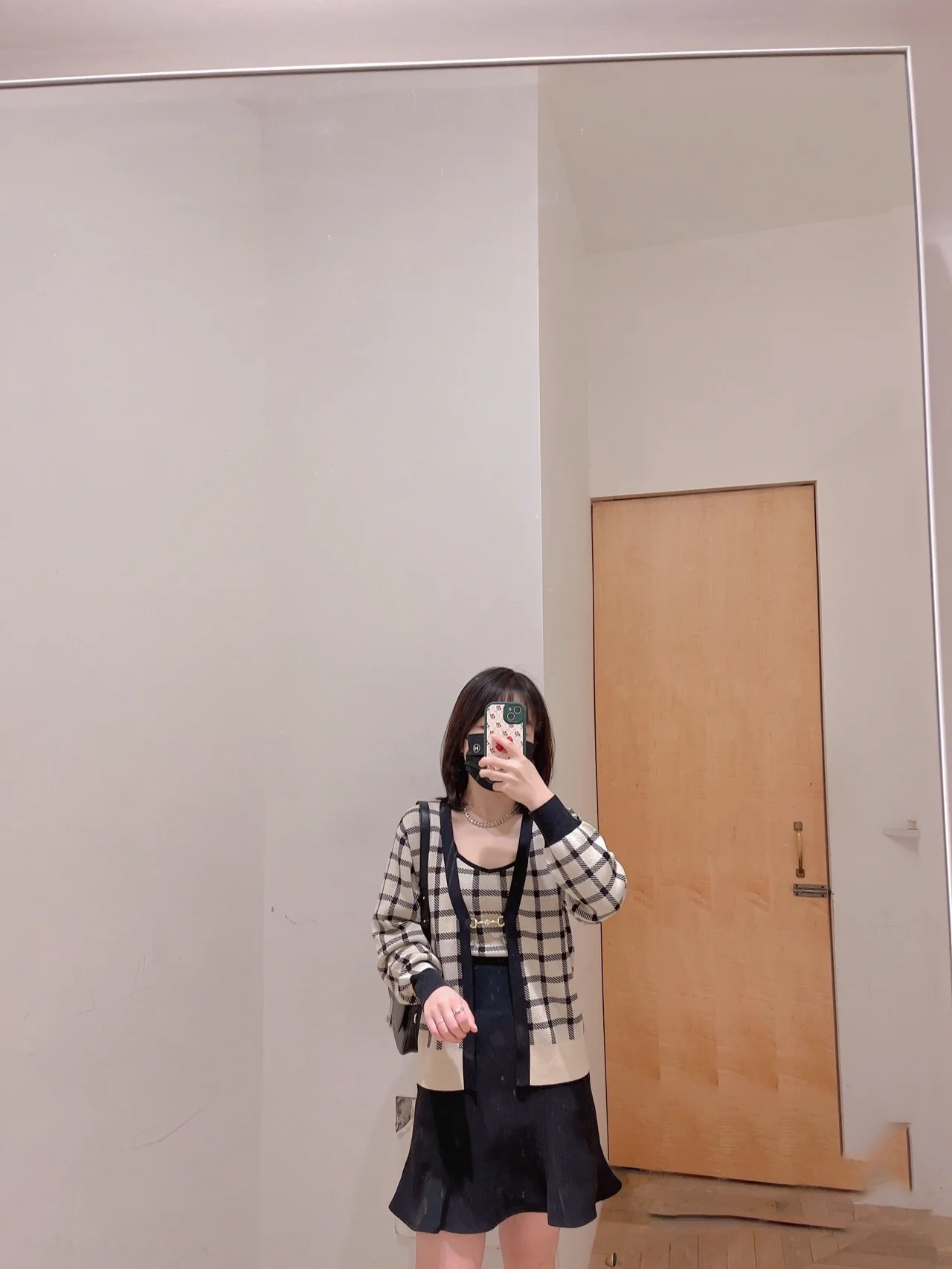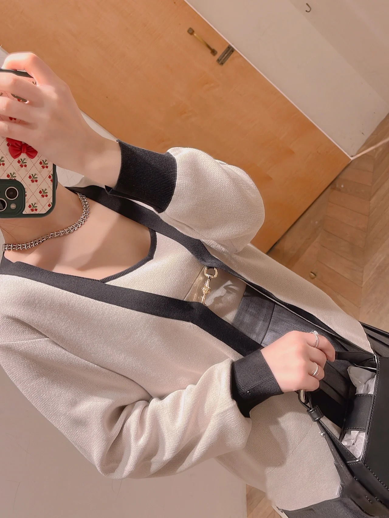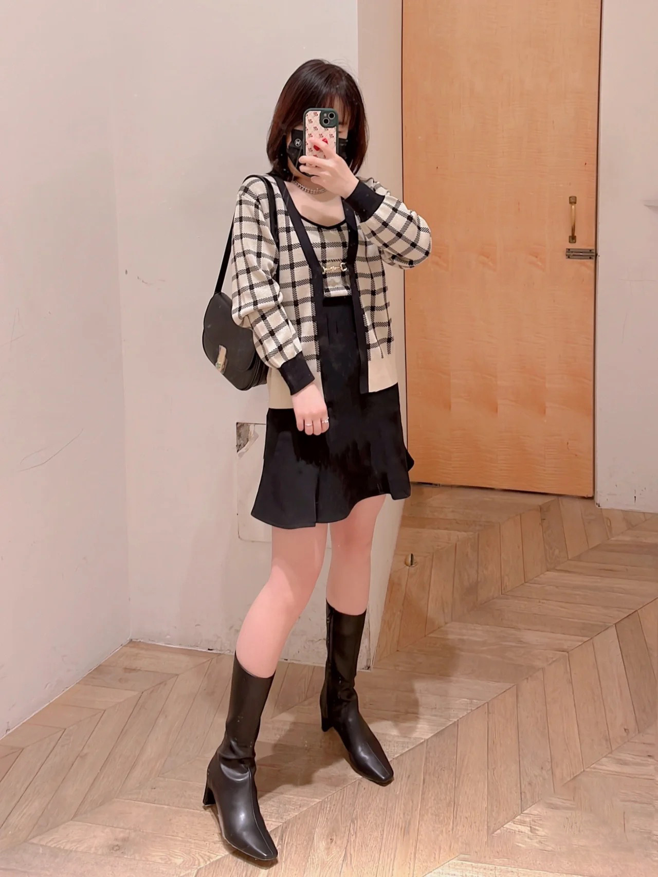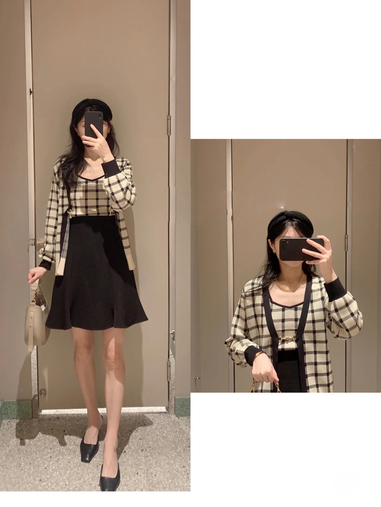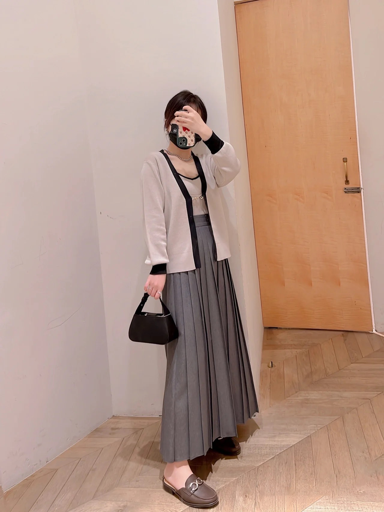 【王道クラシカルなムードでスタイリングを上品に映し出すニットアンサンブル】