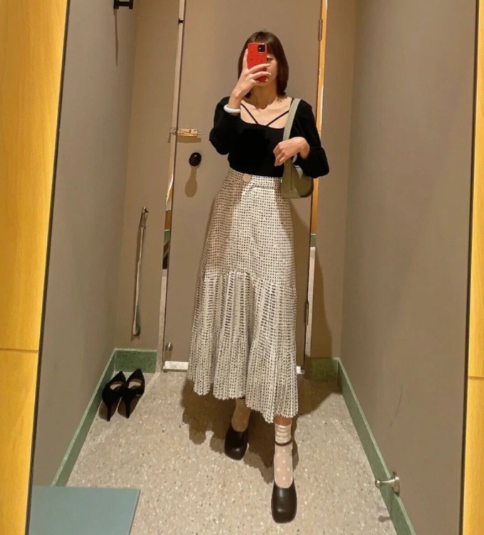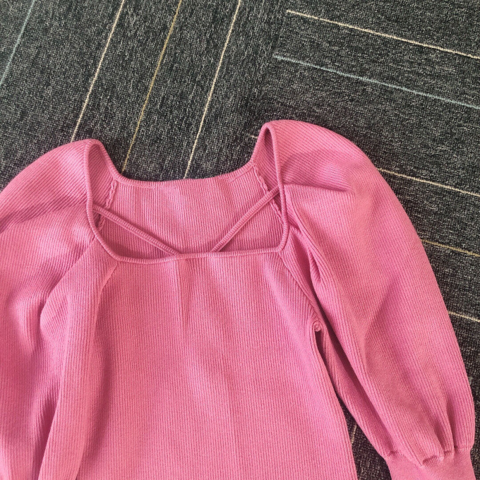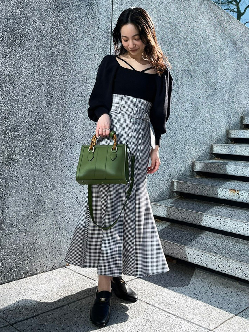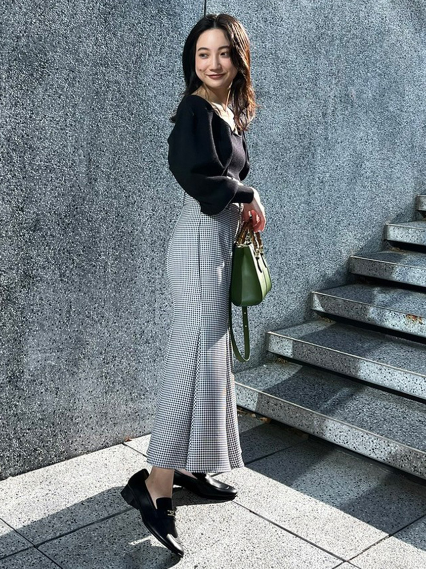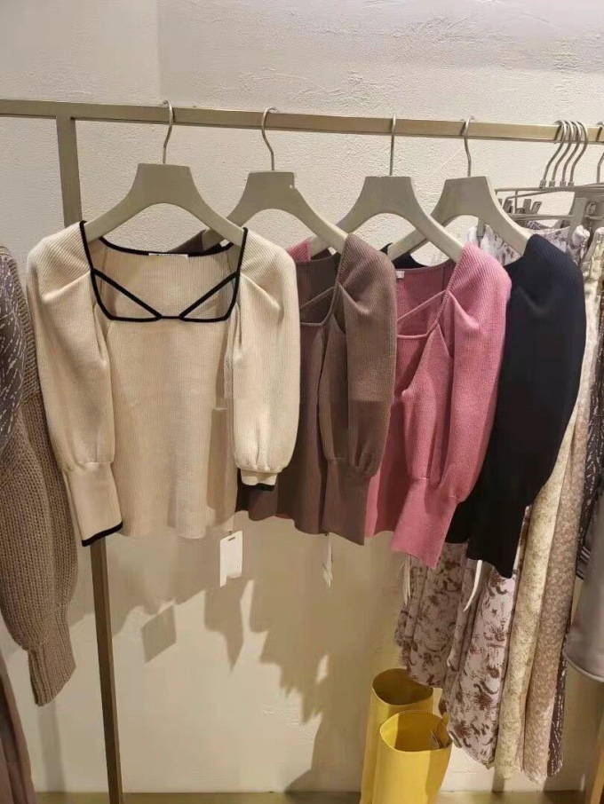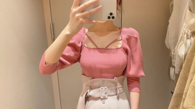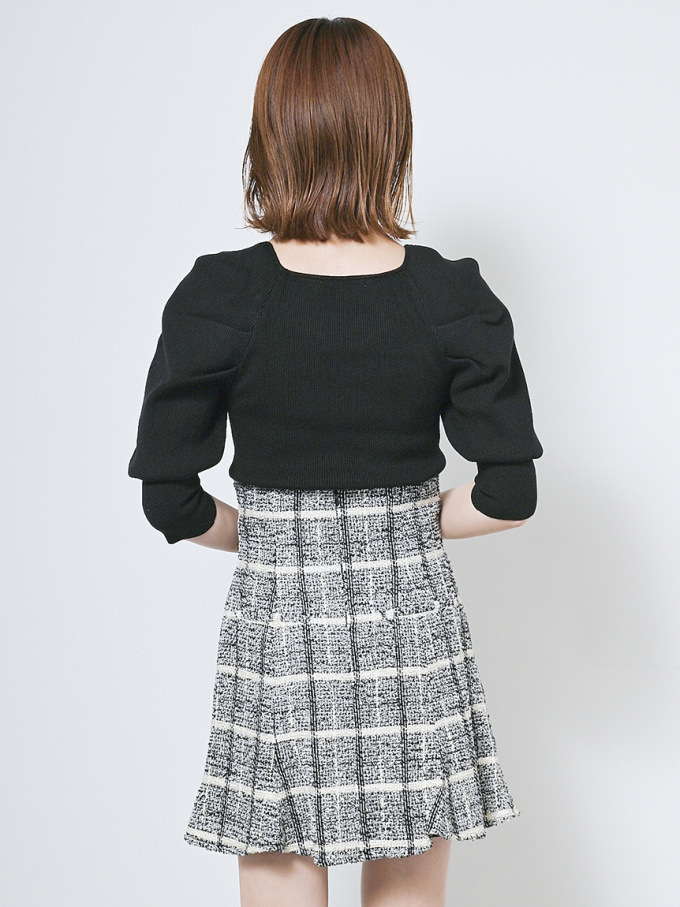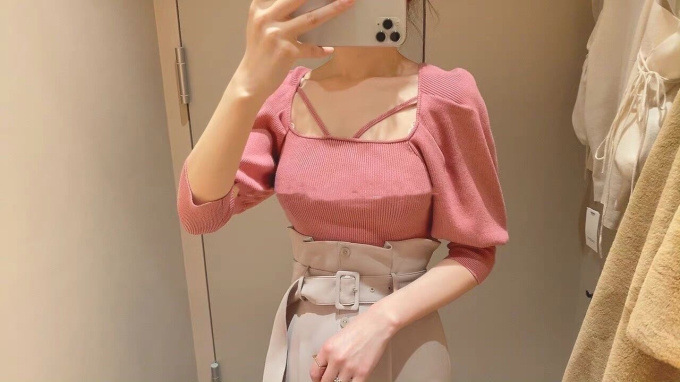 ストレッチ入りの柔らかなリブニットを使用。配色デザインが効いたアイボリー、大人っぽいブラック、着まわしやすいブラウン、トレンドライクなピンクの4色展開です。