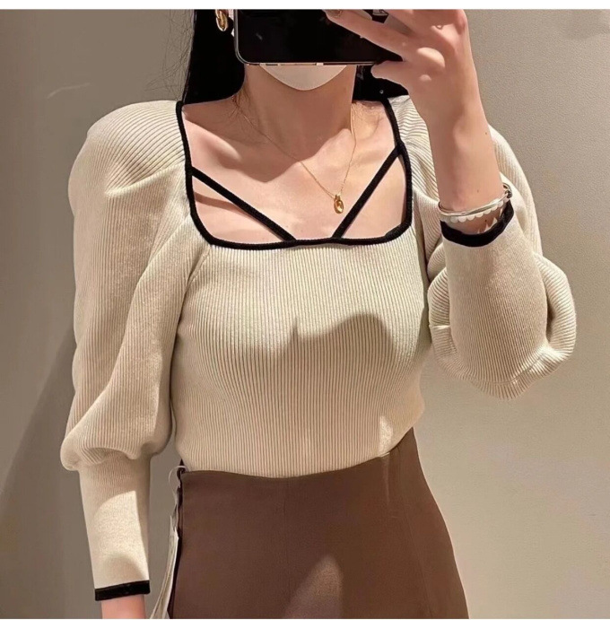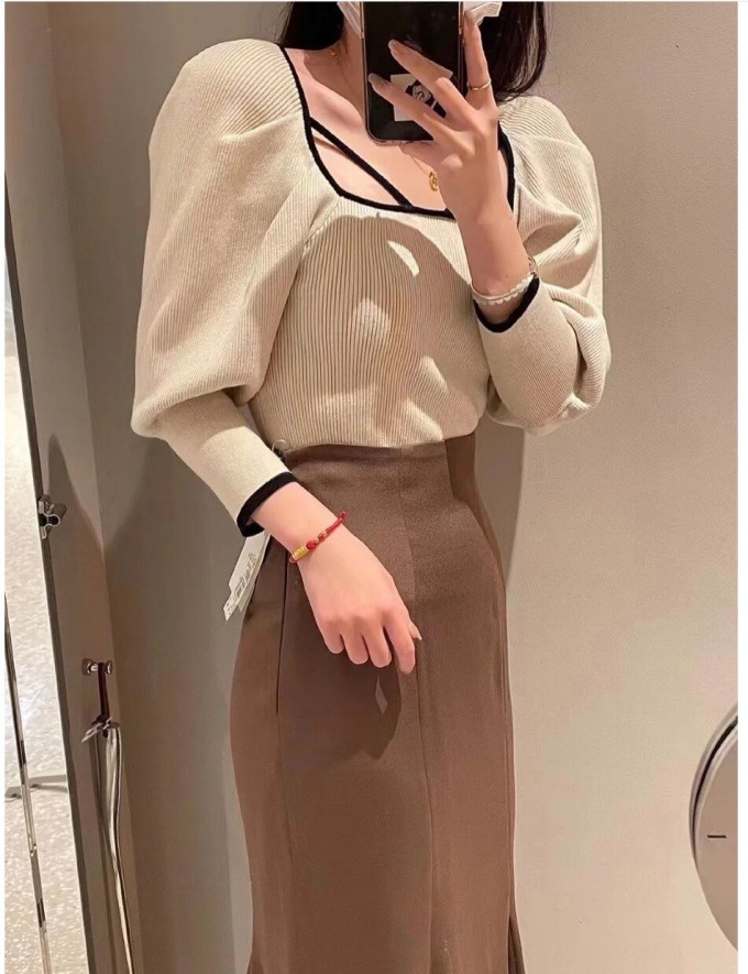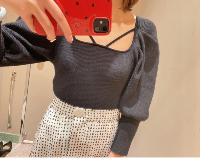 【センシュアルなネックデザインで大人の色香を漂わせるニットプルオーバー】