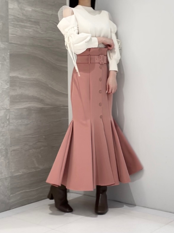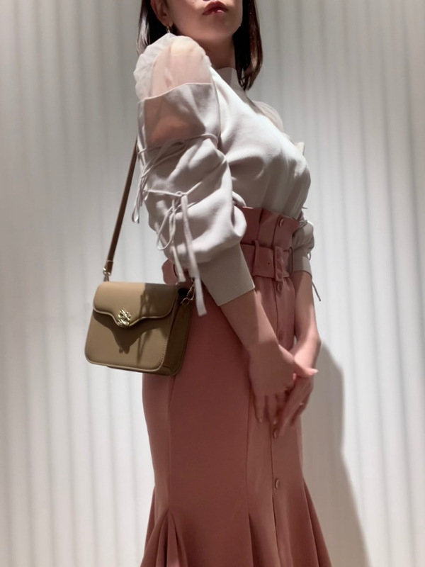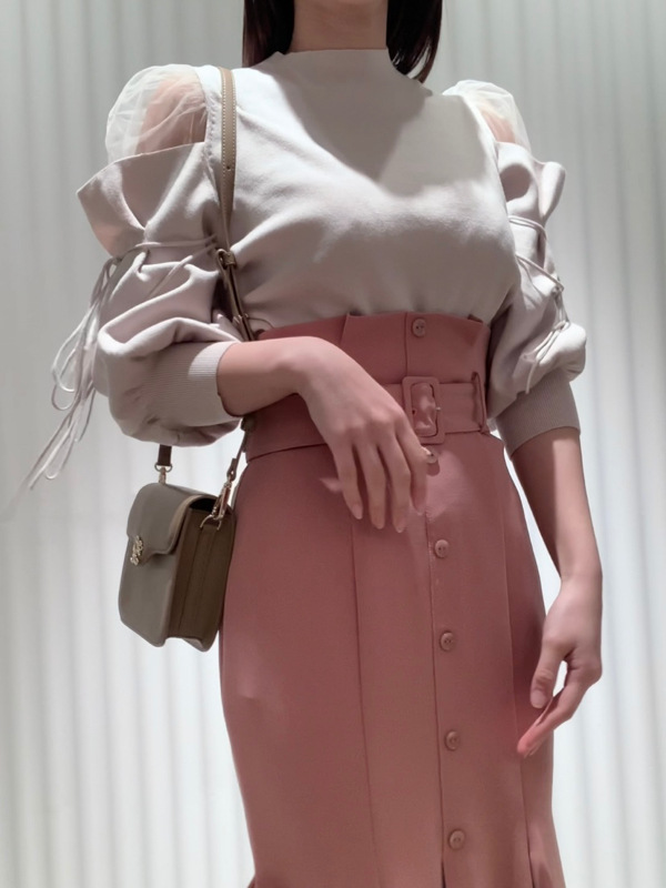 肌当たりの優しいライトな風合いのニットと、透け感のあるチュールを組み合わせました。着まわしやすいアイボリー、グレー、ピンクベージュの3色展開です。
