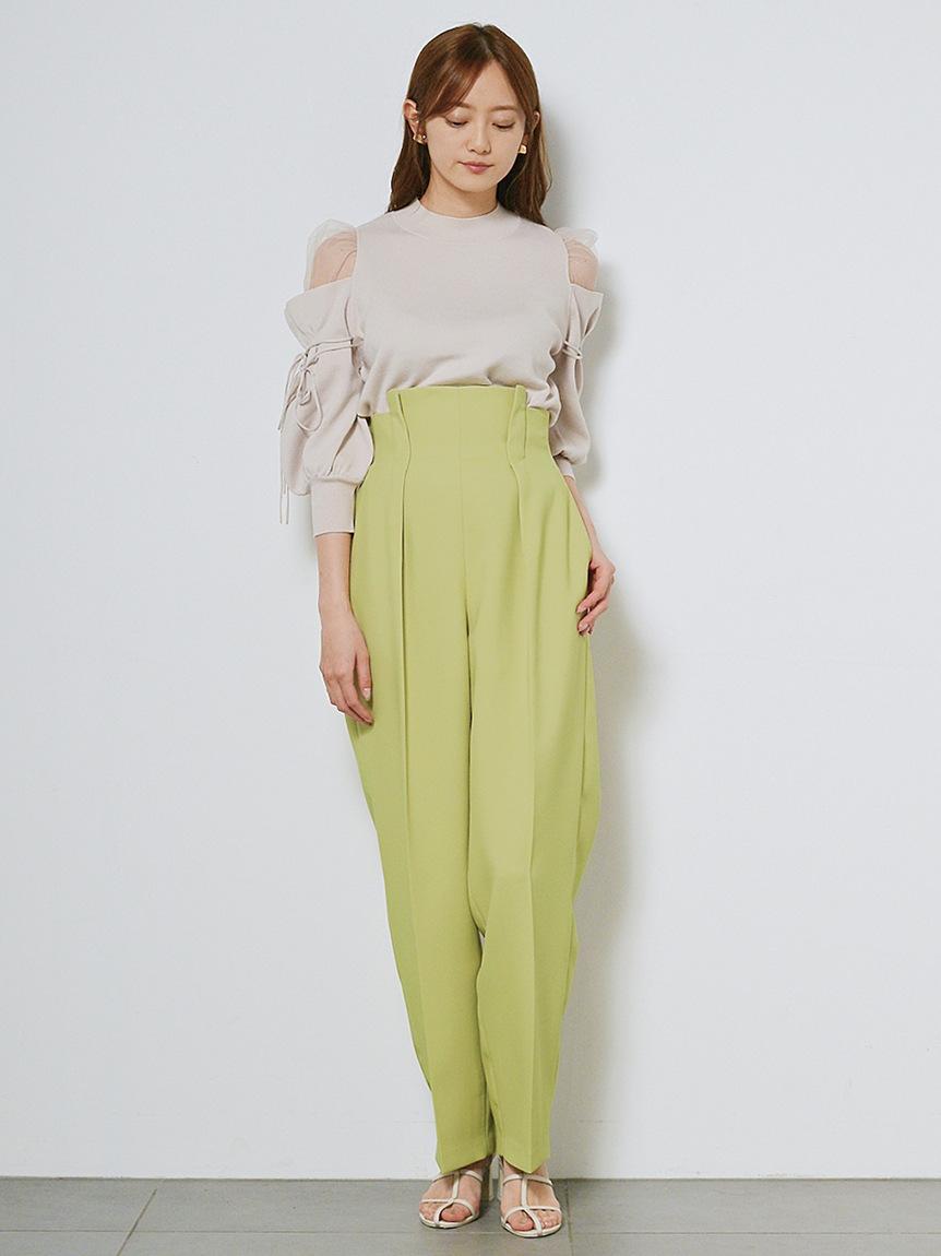 人気のシースルーショルダーニットを春夏コーデにぴったりの素材でリバイバル。大人の色香を漂わせるセンシュアルな肌見せはそのままに、今季は七分袖を採用し抜け感をプラスしました。袖でキュッと結んだリボンはモードなアクセントに。絞り具合でフォルムが変えられるので表情のアレンジも自由に楽しめます。シンプルに仕上げた身頃はフィット感があり、様々なボトムとバランス良く決まるのも嬉しい。
