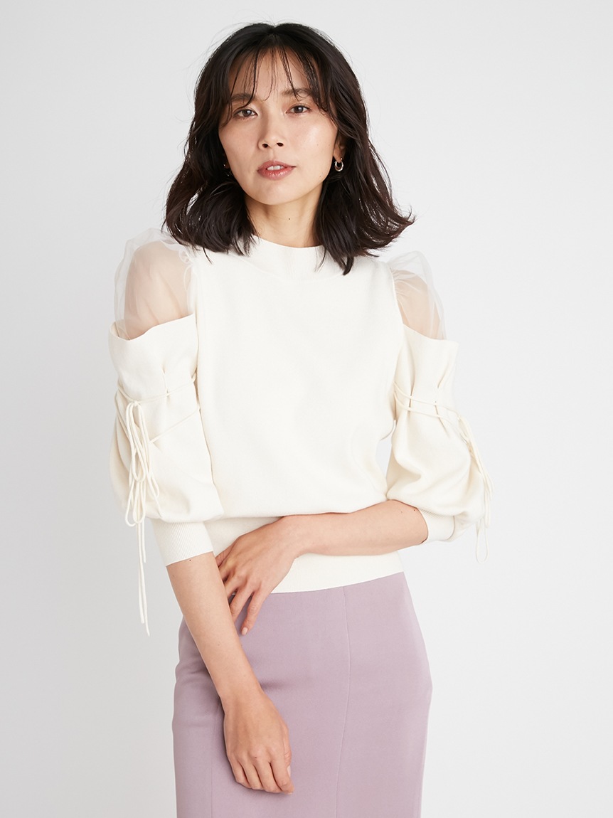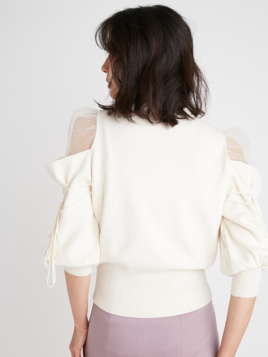 シースルーショルダーニットプルオーバー