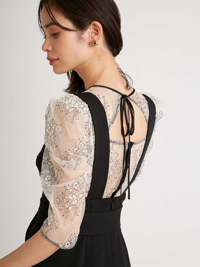 透明感のある繊細なレース素材を使用しました。ピュアな雰囲気のオフホワイト、大人っぽい印象を与えるブラック、優しいニュアンスのベージュの3色展開です。