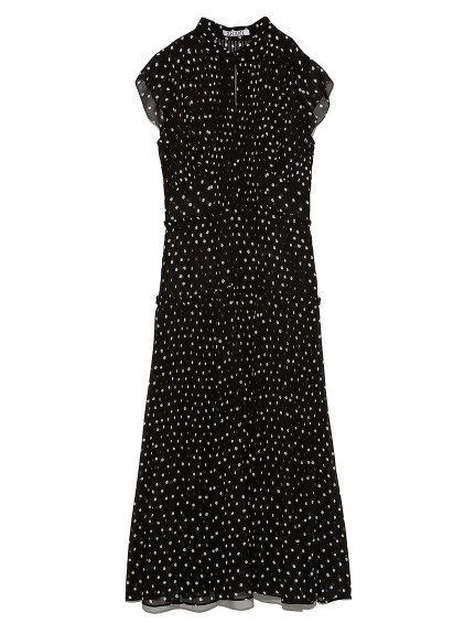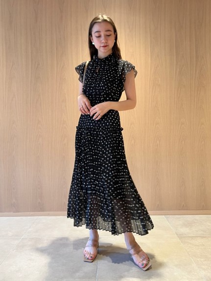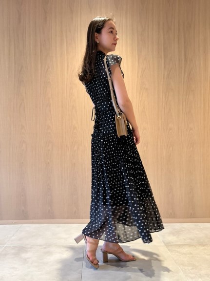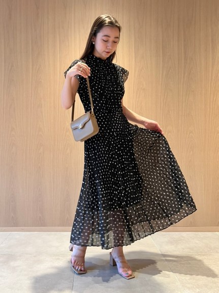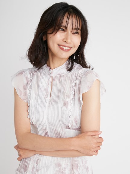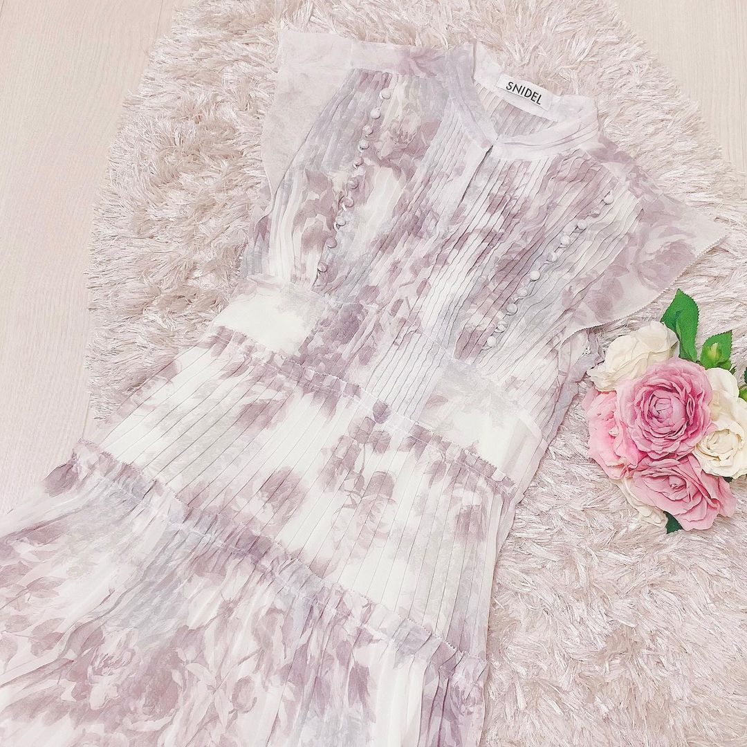 薄手のシフォンにプリントをのせエレガントで軽やかな表情を演出した「SNIDEL」定番のワンピース。優美に映えるプリーツや、バックスタイルのレースアップがセンシュアルなムードを引き立てます。スタンドカラーで上品に見せつつ、デコルテの肌見せでさりげない色気も加味。フリル仕様になったスイートなフレンチスリーブには、二の腕カバー効果も期待できます。レースアップになった後ろ姿も映えるポイント。デイリー使いはもちろん、パーティシーンにもマッチします。