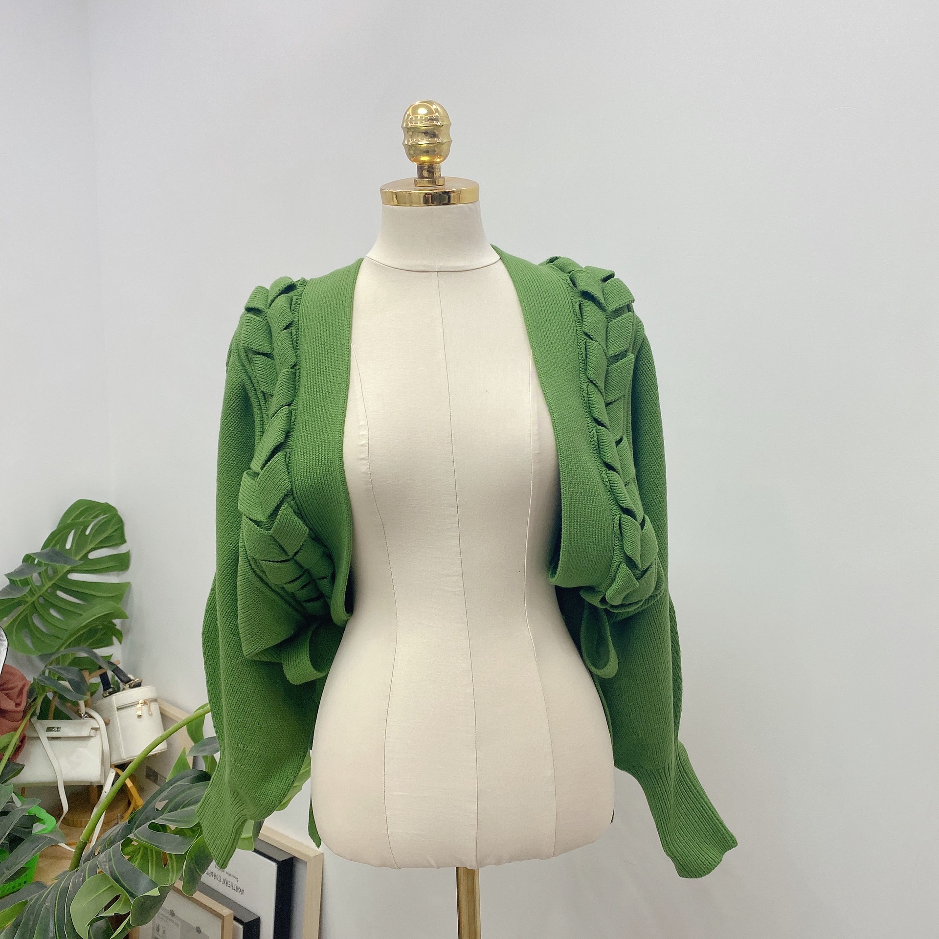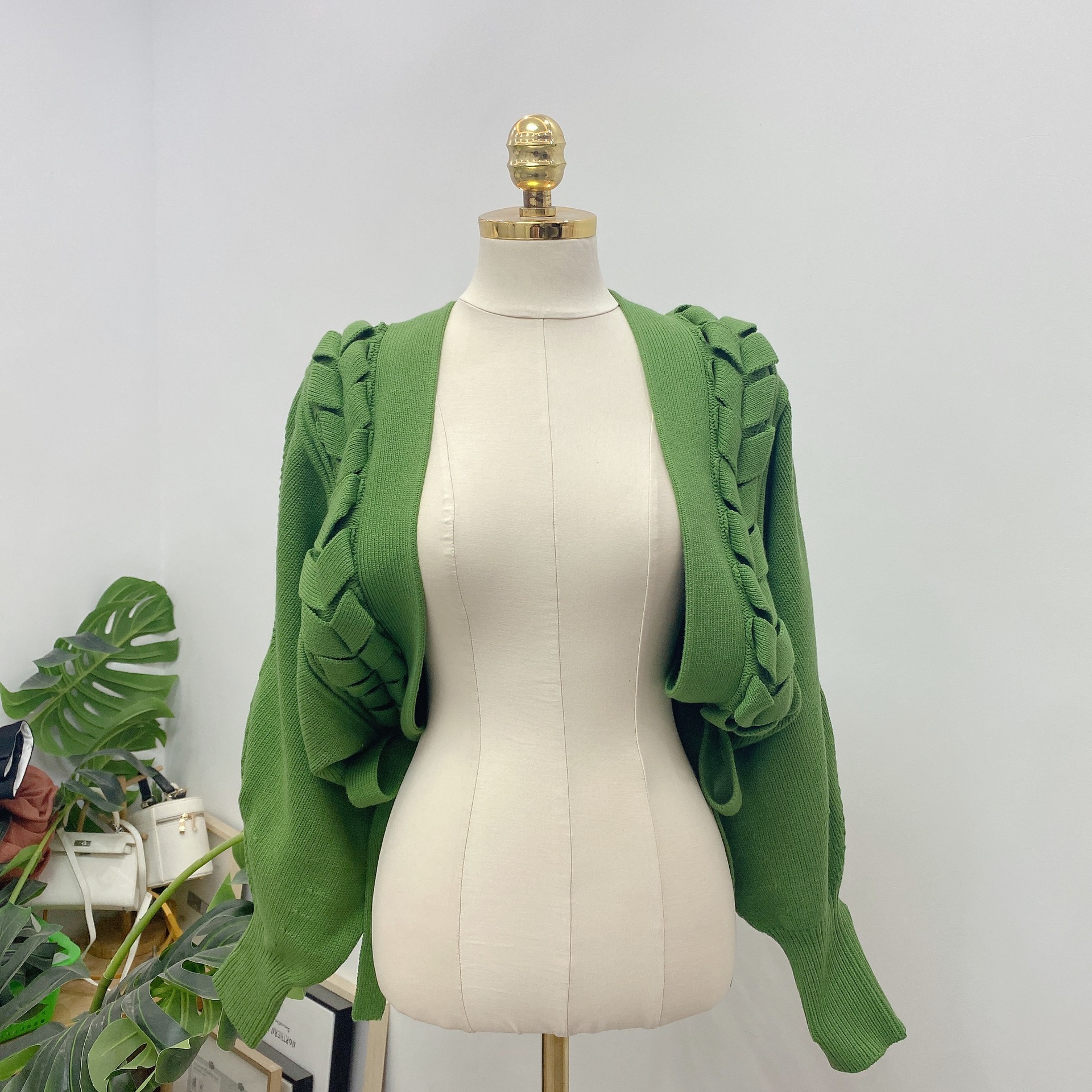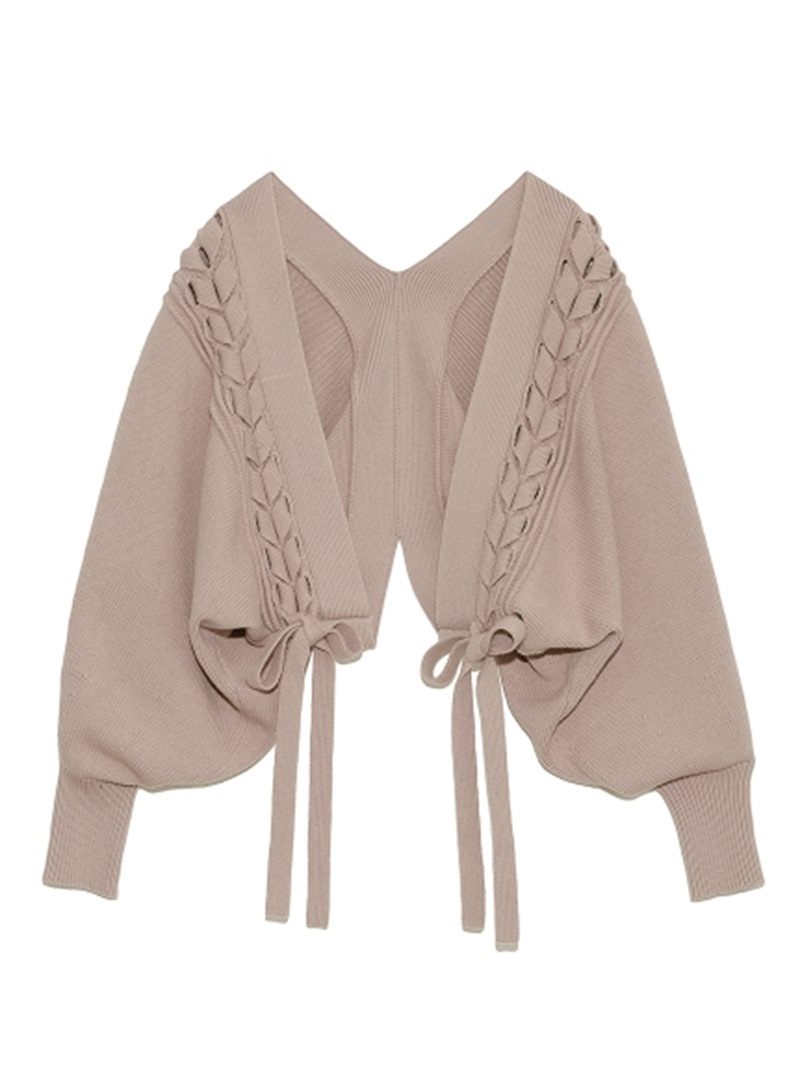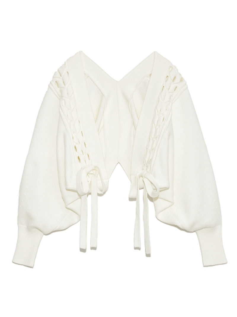 【個性的なレースアップデザインを絶妙なバランスで取り入れたボレロカーディガン】
