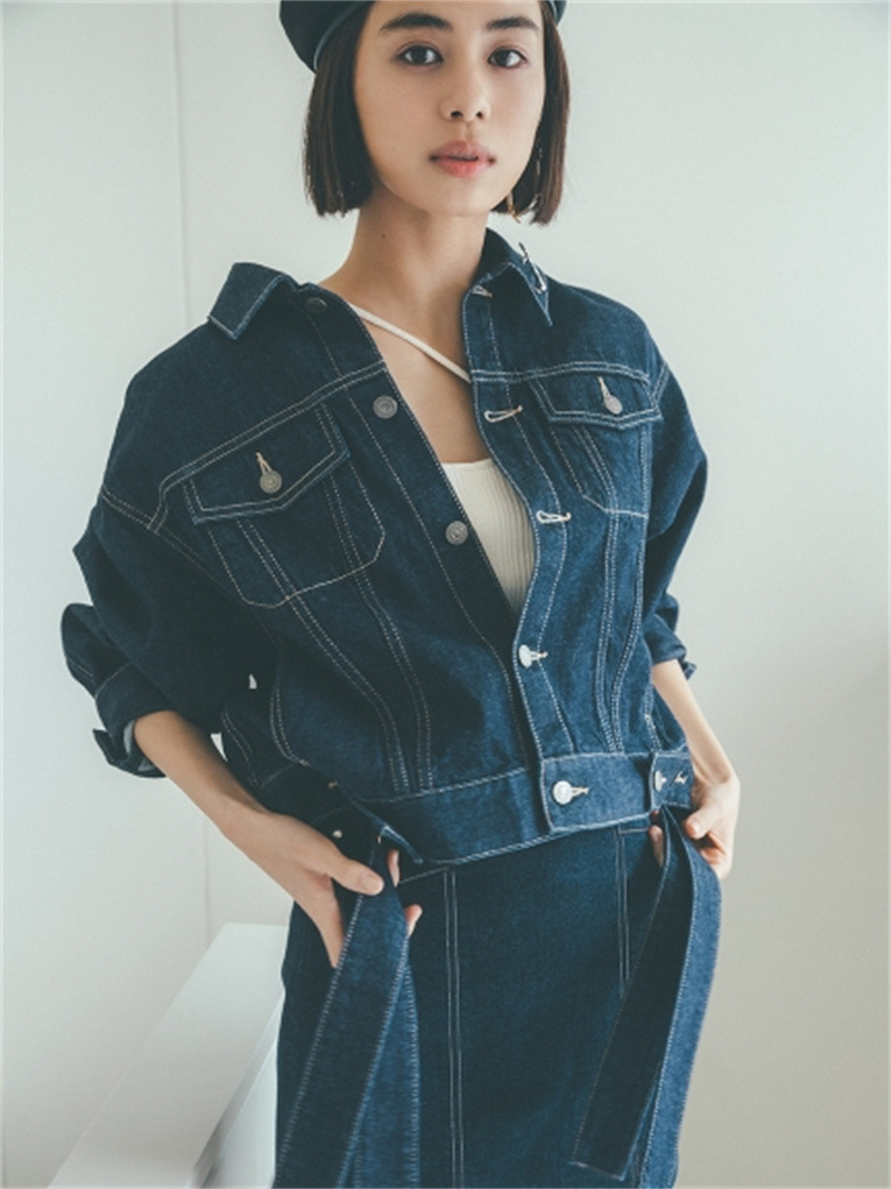 プラスワンでスタイリングの幅がぐっと広がるデニムミニスカート。切り替えを入れたハイウエストデザインで、「SNIDEL」らしいレディなフォルムに仕上げています。すっきりとしたタイトシルエットはトレンドのボリュームTOPSと相性抜群。オーバーサイズGジャンと今年らしくセットアップ風にスタイリングするのもオススメ。