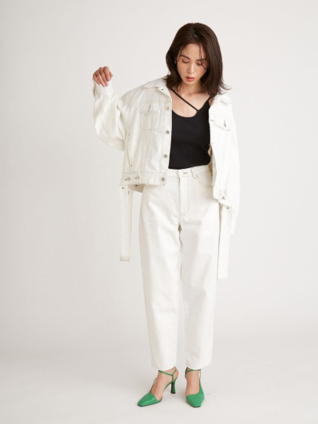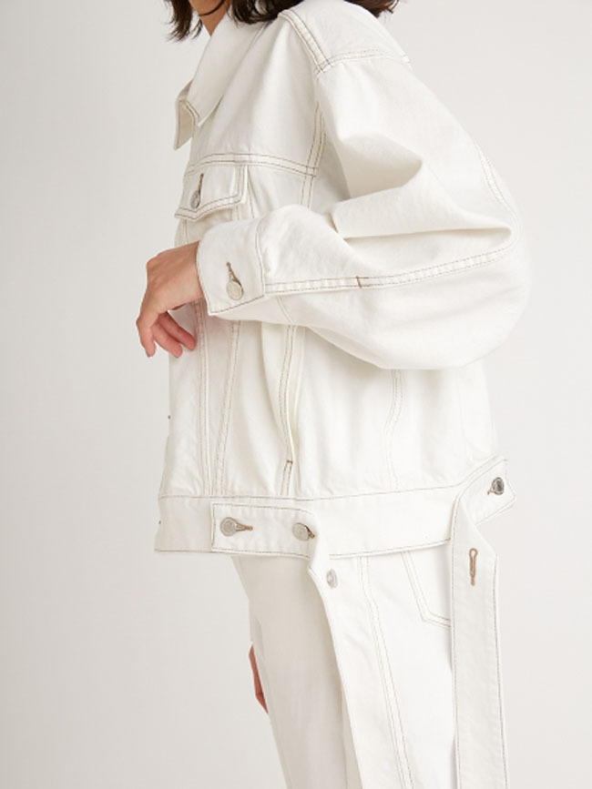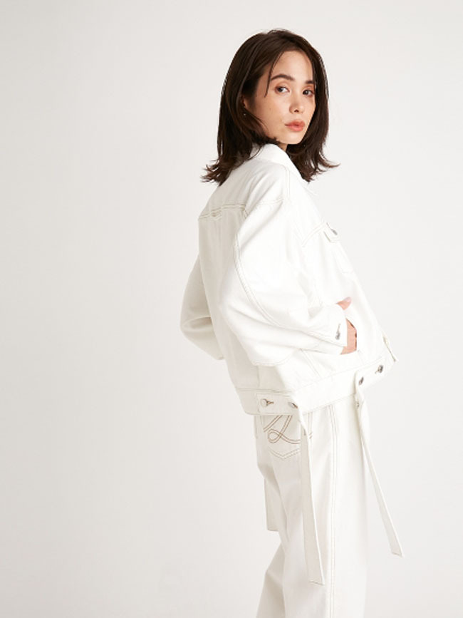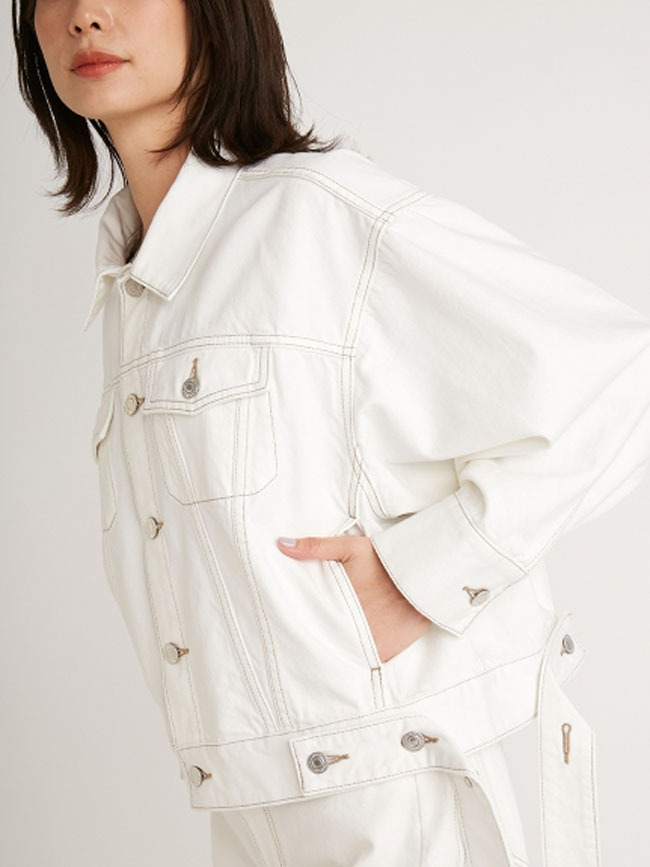 春アウターに欠かせないGジャンをオーバーサイズシルエットでアップデート。バランスの取りやすい絶妙な丈感に仕上げることで女性らしさをしっかりと残した「SNIDEL」ならではの1着です。両サイド裾にあしらわれたベルトは取り外しでき、アレンジを楽しめるのも嬉しいポイント。同素材のパンツ(SWFP221160)とセットアップでも、デニム素材のミニスカートと合わせてもトレンド感溢れるスタイリングが完成します。