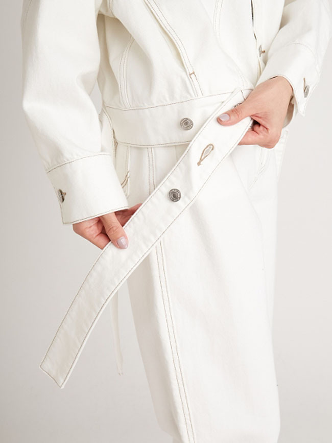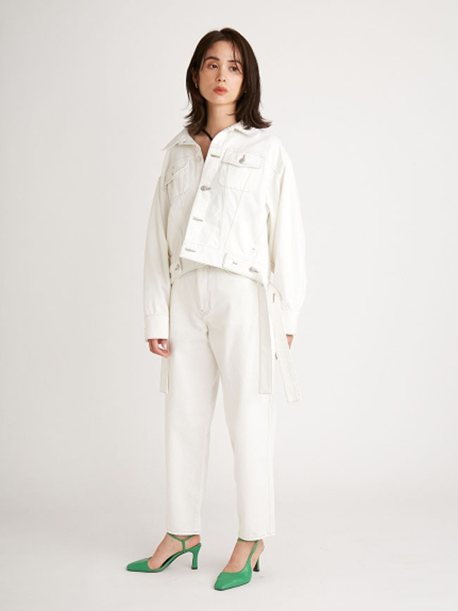 9.5OZと軽めのコットン100%デニムを使用。深めのインディゴに、春らしいホワイト、定番のブルーを揃えました。