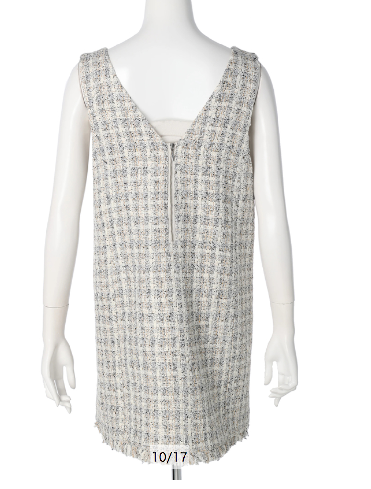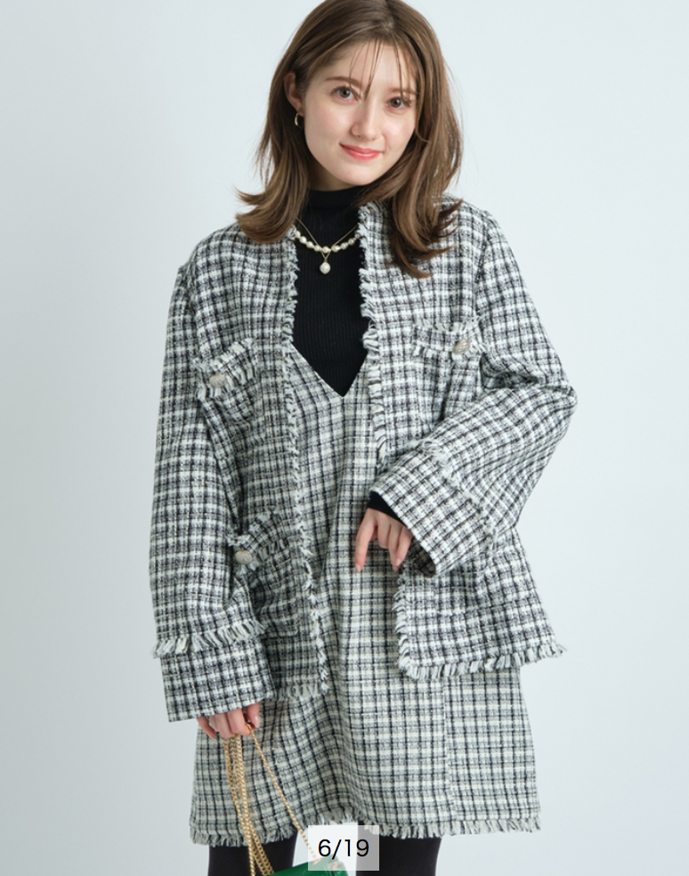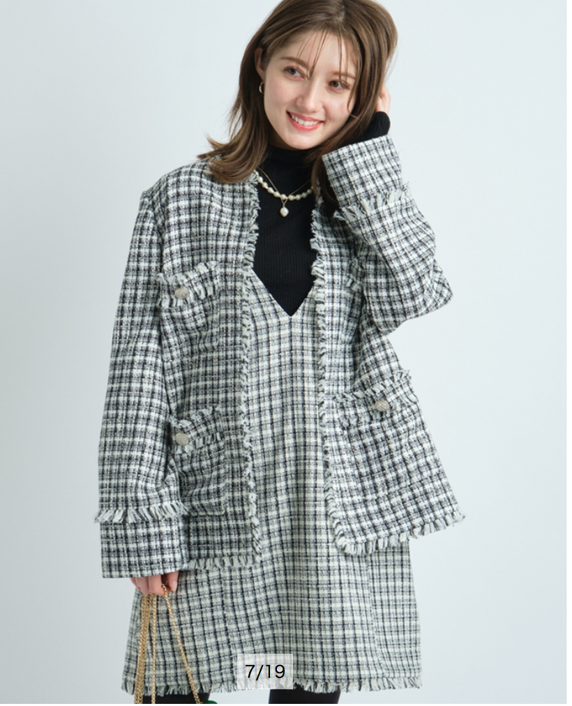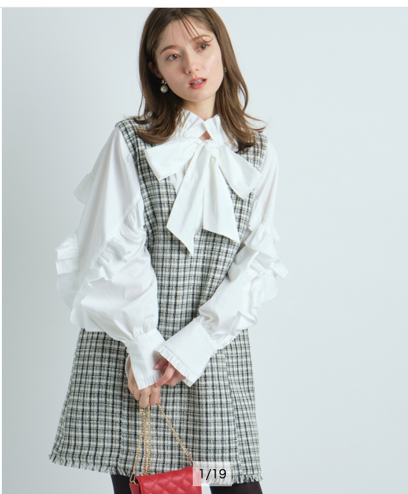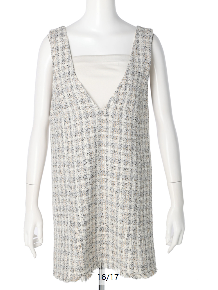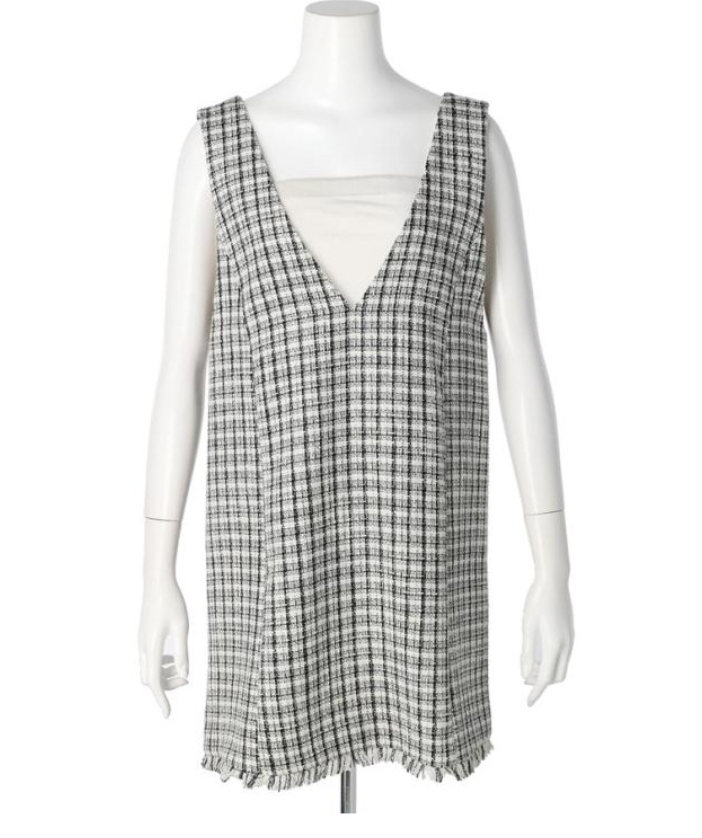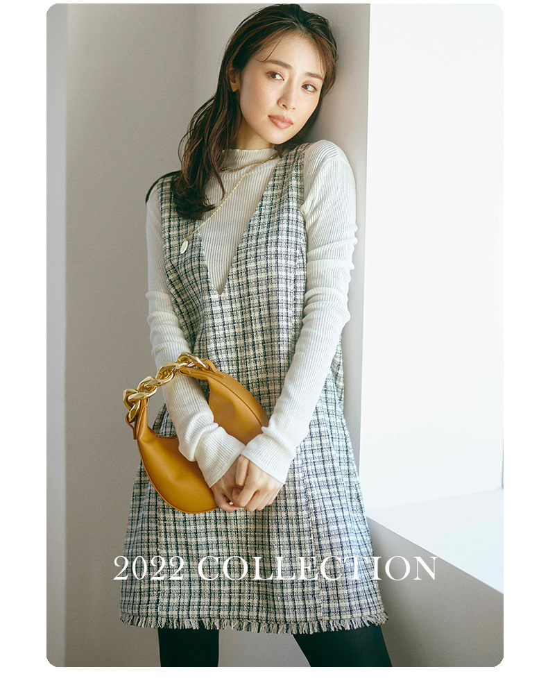 多色使いと立体感のあるツイード生地で、華やかな印象に仕上げたジャンパースカート。