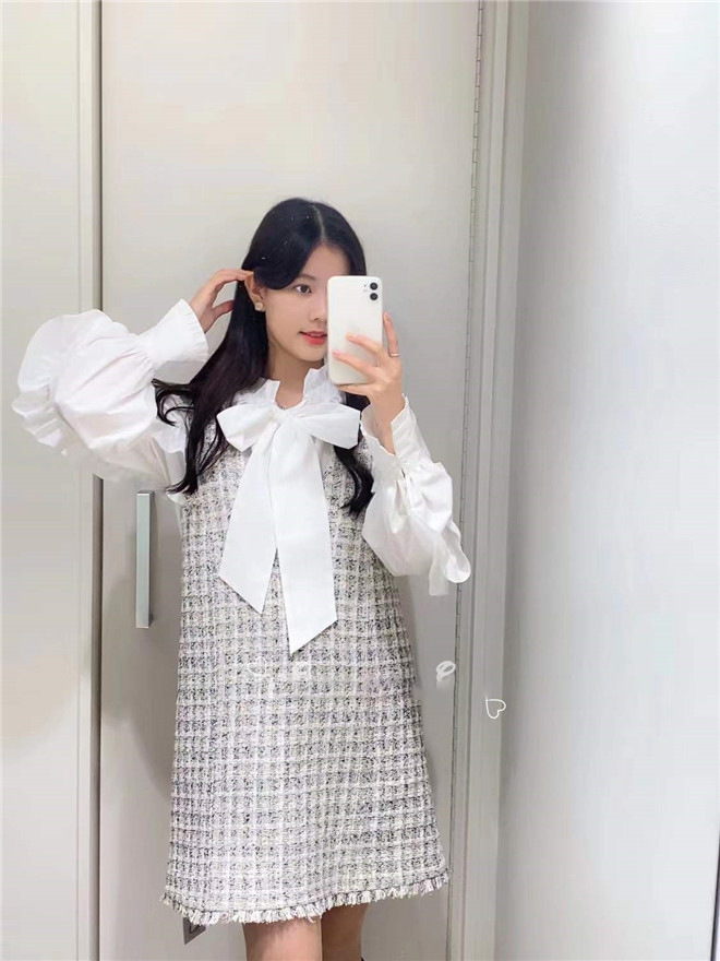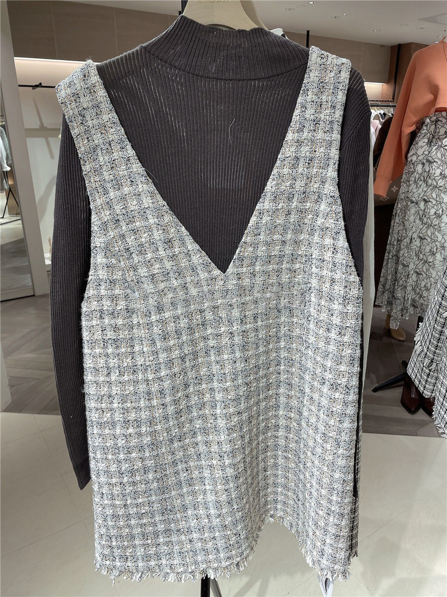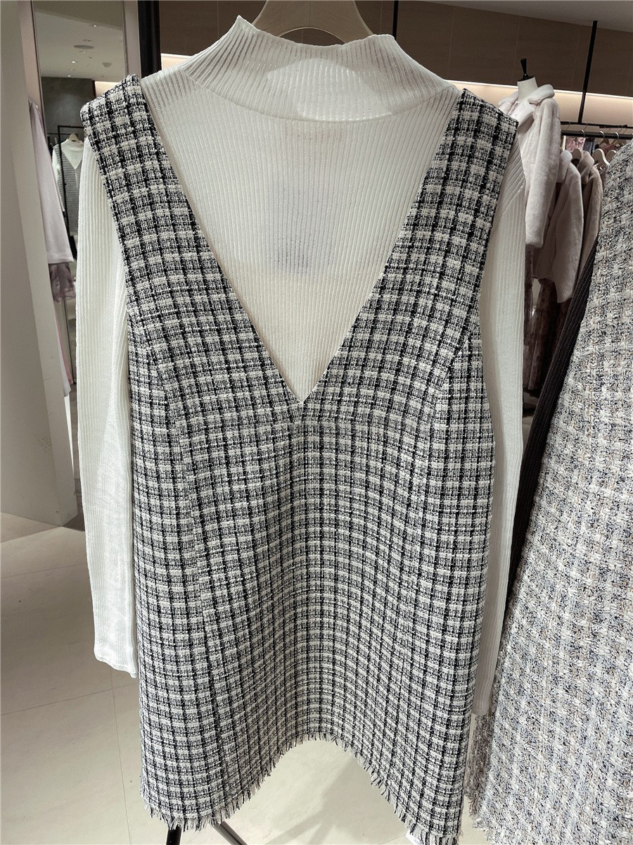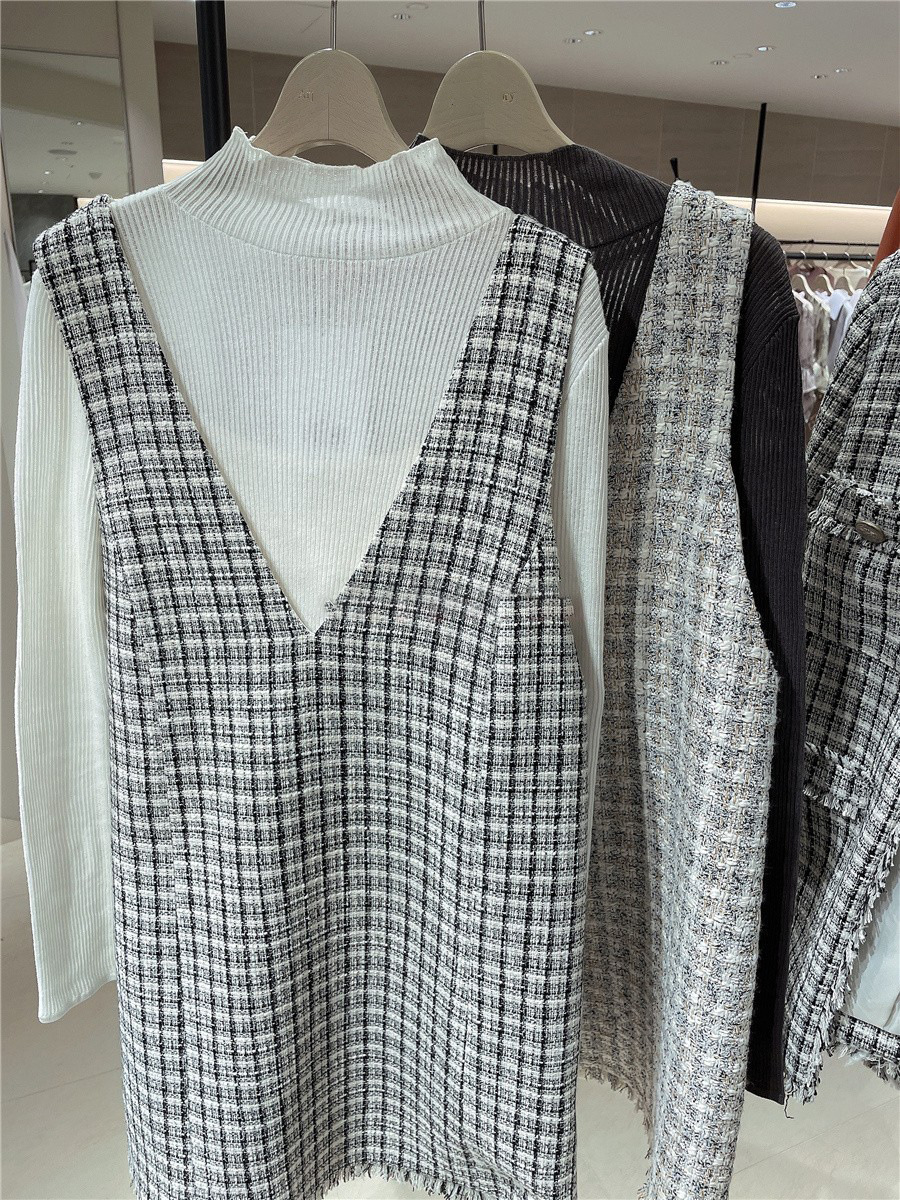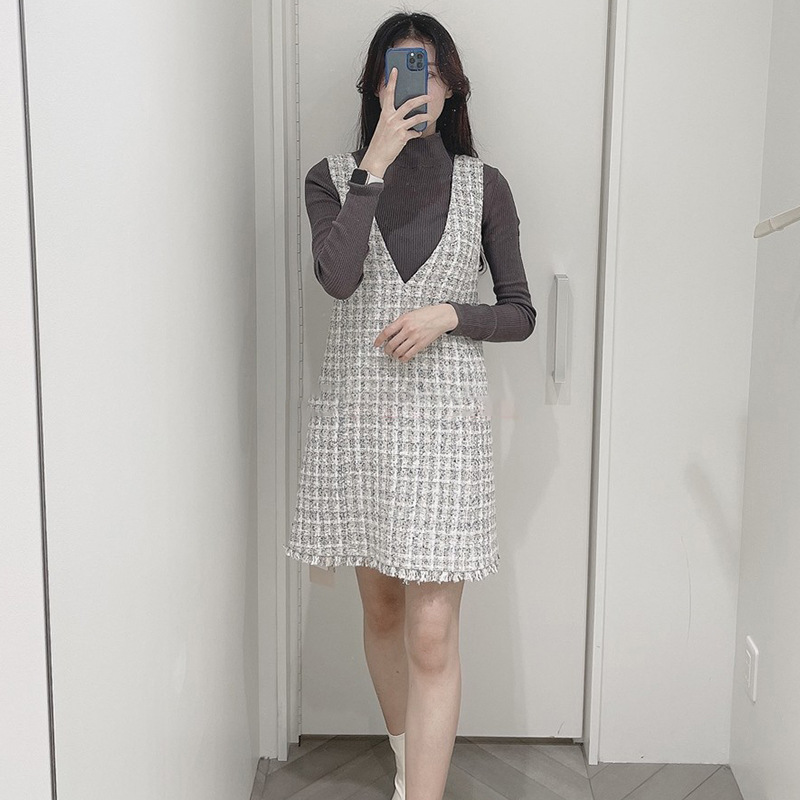 多色使いと立体感のあるツイード生地で、華やかな印象に仕上げたジャンパースカート。