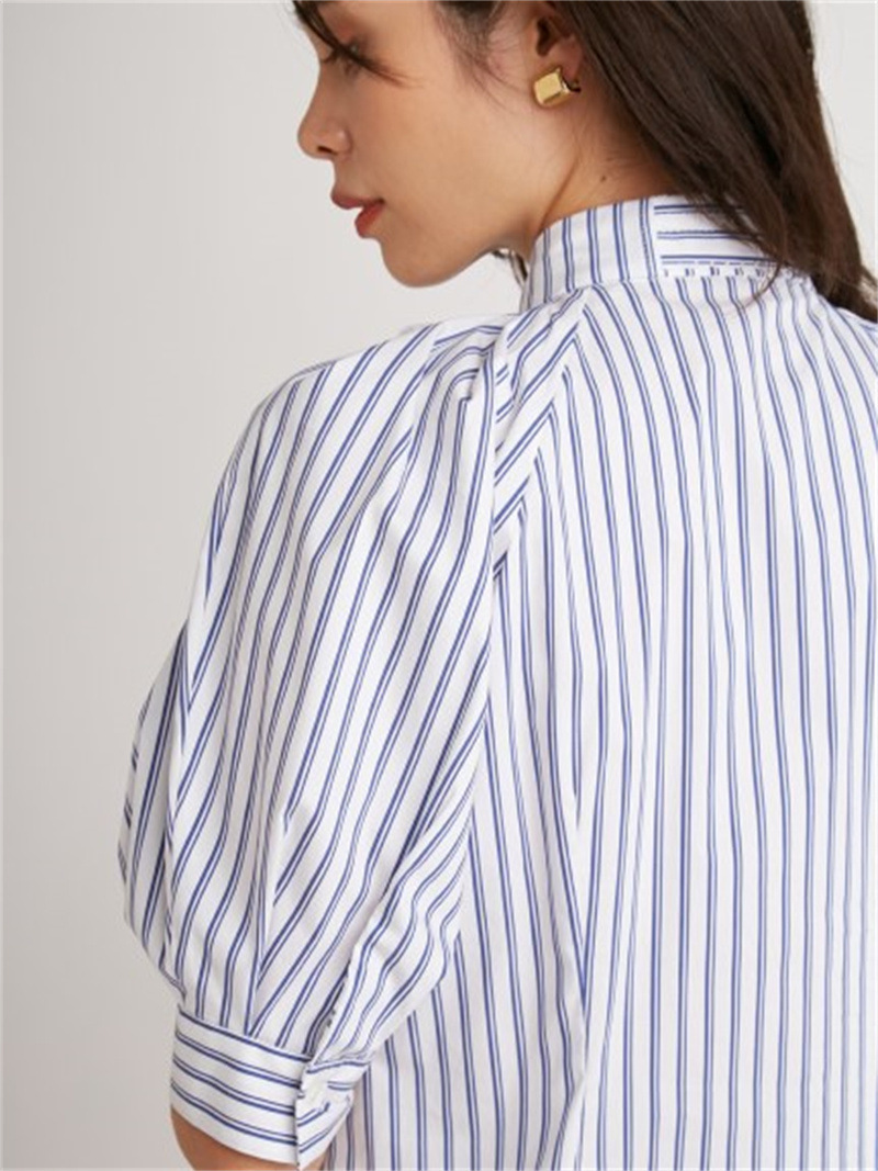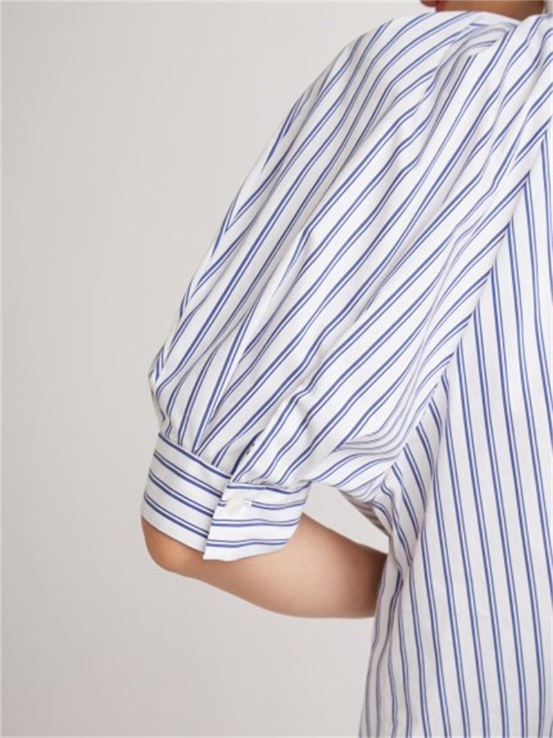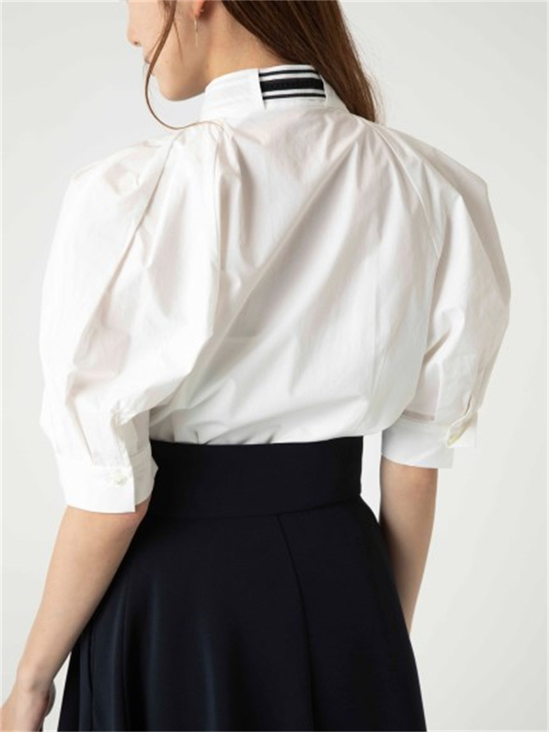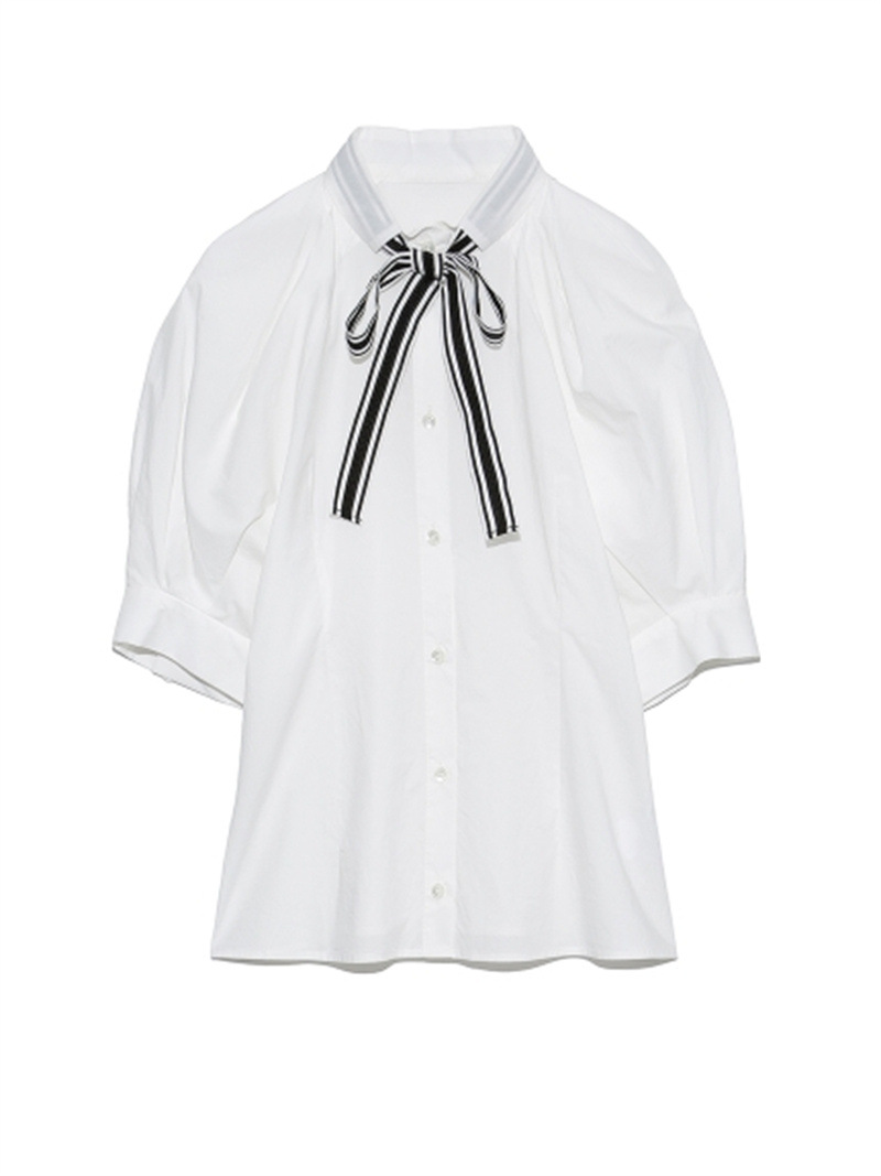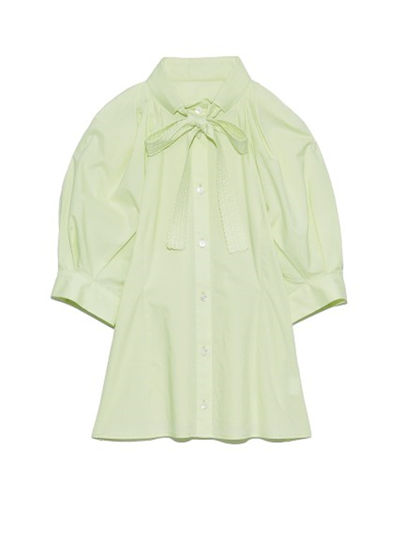 薄過ぎず厚過ぎないさらりと着られるシャツ地を使用。ライムとストライプは共生地、ホワイトのみテープでリボンを作成しています。