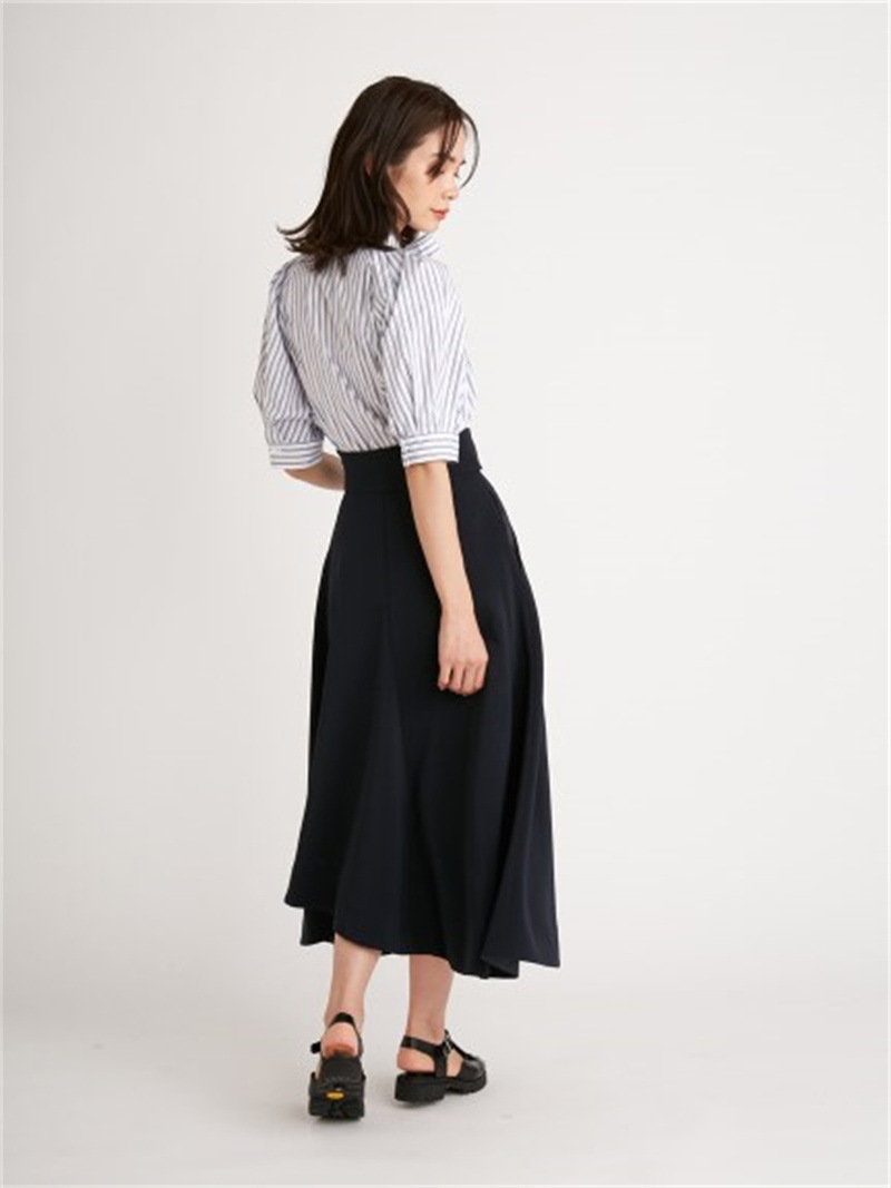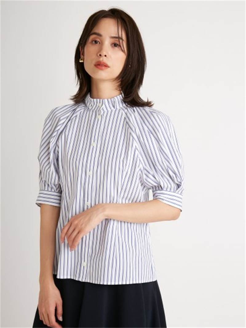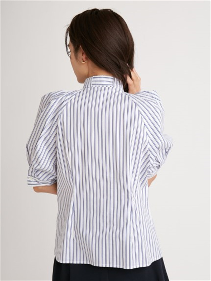 襟からふんだんにタックを入れ丸みを帯びたボリュームスリーブが特徴。女性らしさとモード感のあるルックスで、スタイリングの鮮度を高めるボウタイブラウス。ボリュームがありながらもスマートに着られるのは、身頃部分を細身に仕立てているおかげ。ボウタイは取り外しできるので、その日の気分やスタイリングに合わせて自由にアレンジが楽しめます。トレンドライクなハイウエストボトムにINしてすっきりとまとめるのがオススメ。